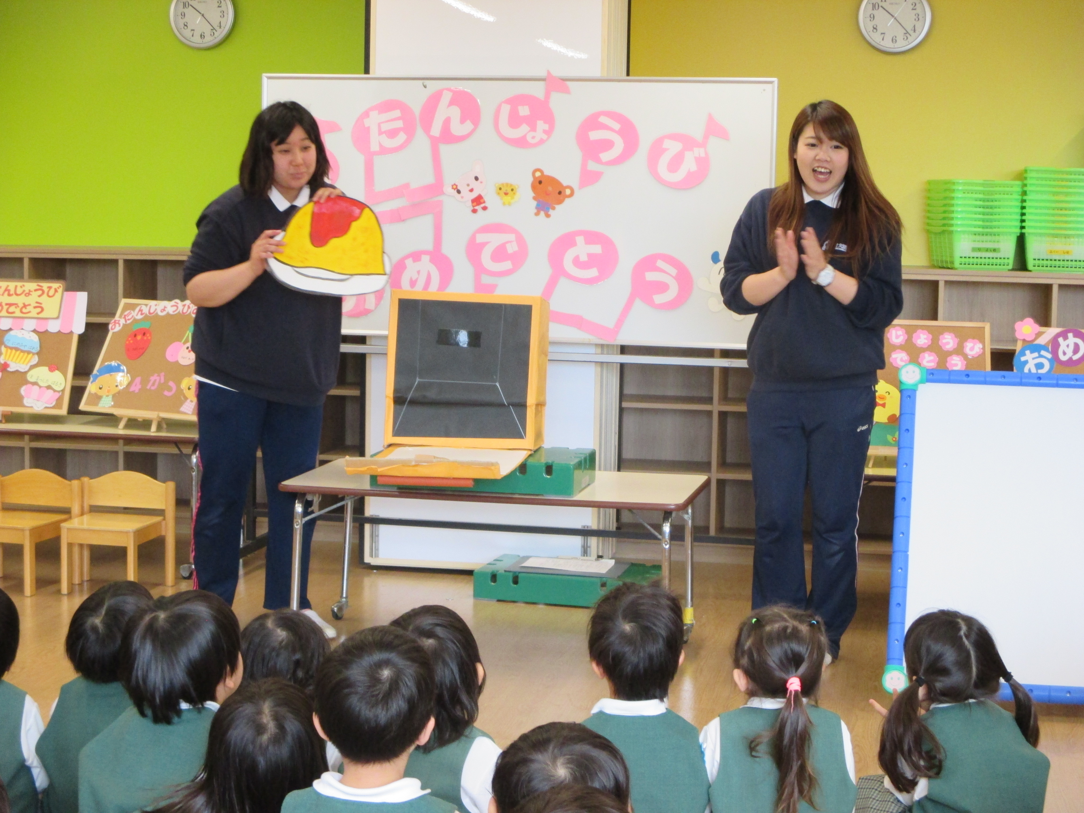 みんなで「おたんじょうびおめでとう~!」とお祝いの気持ちを伝えました♪