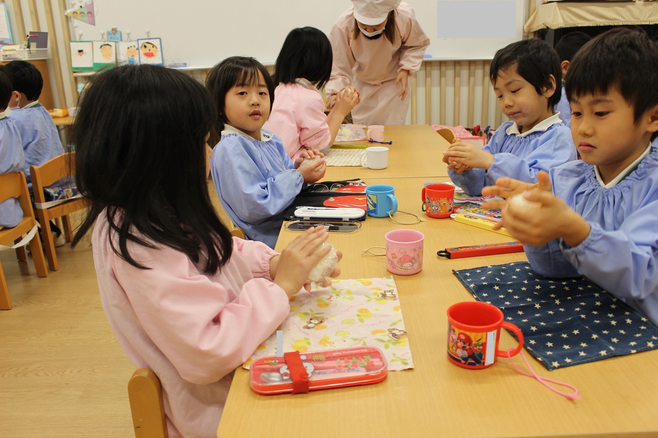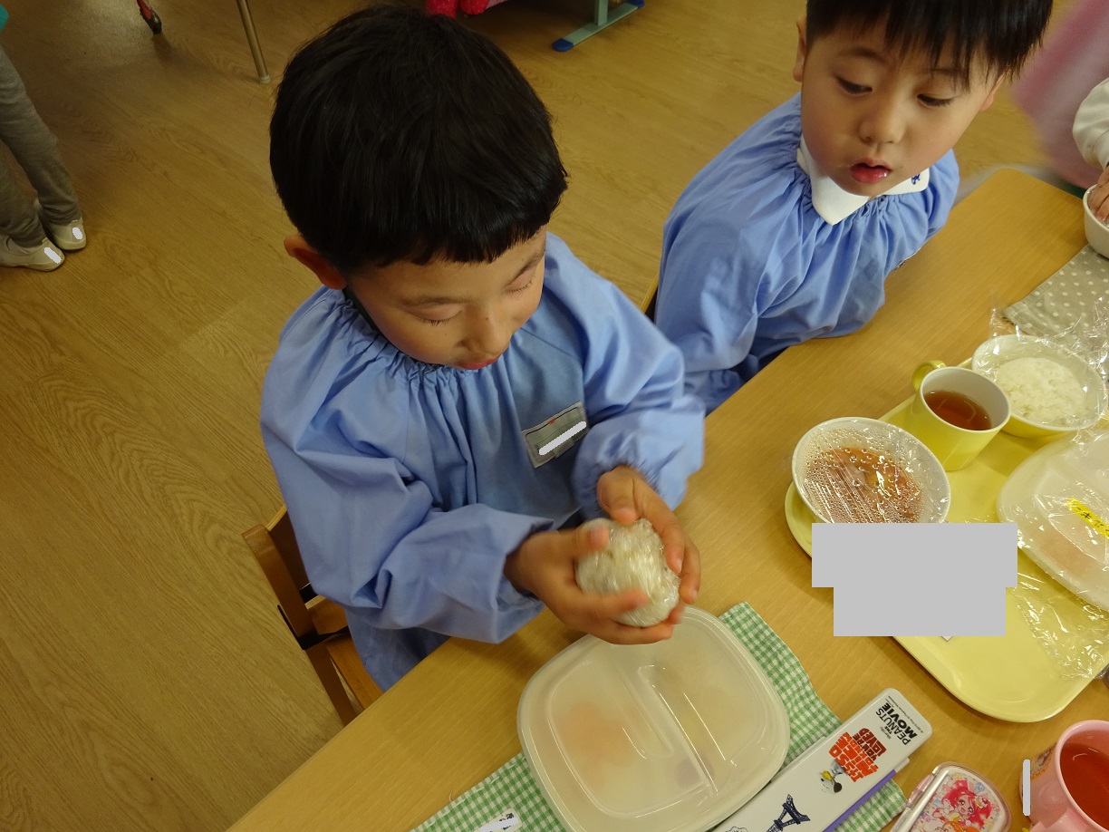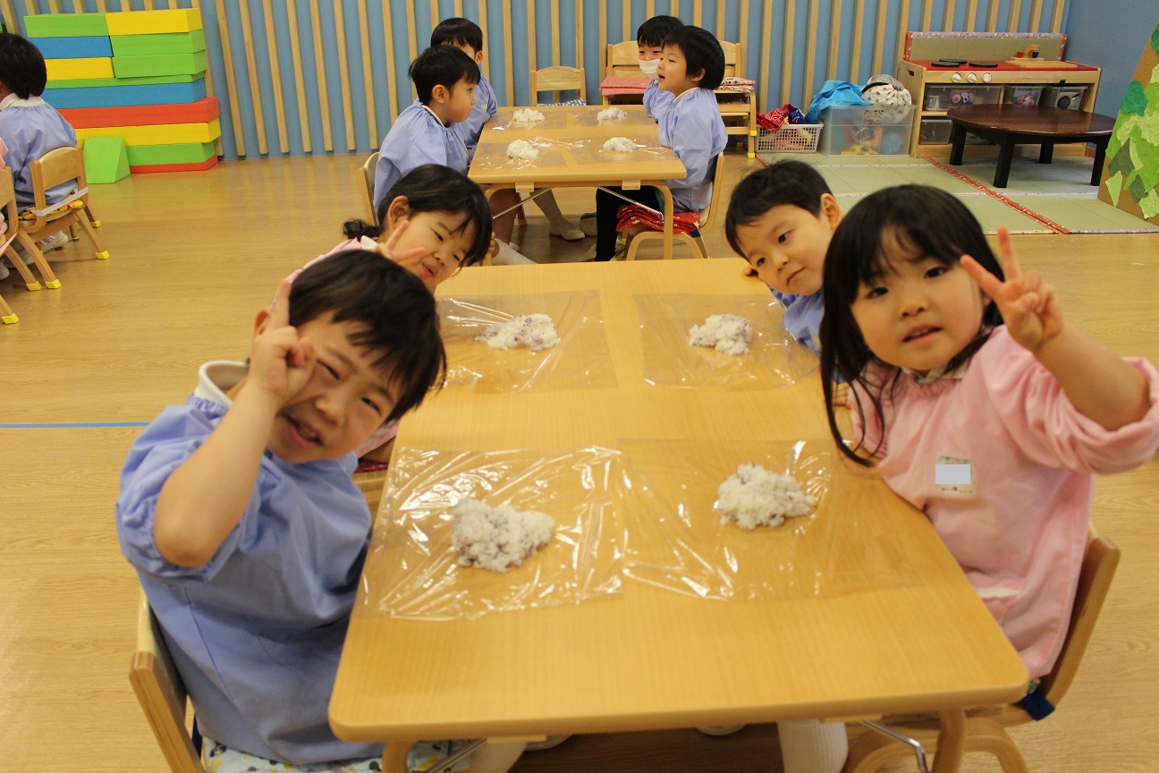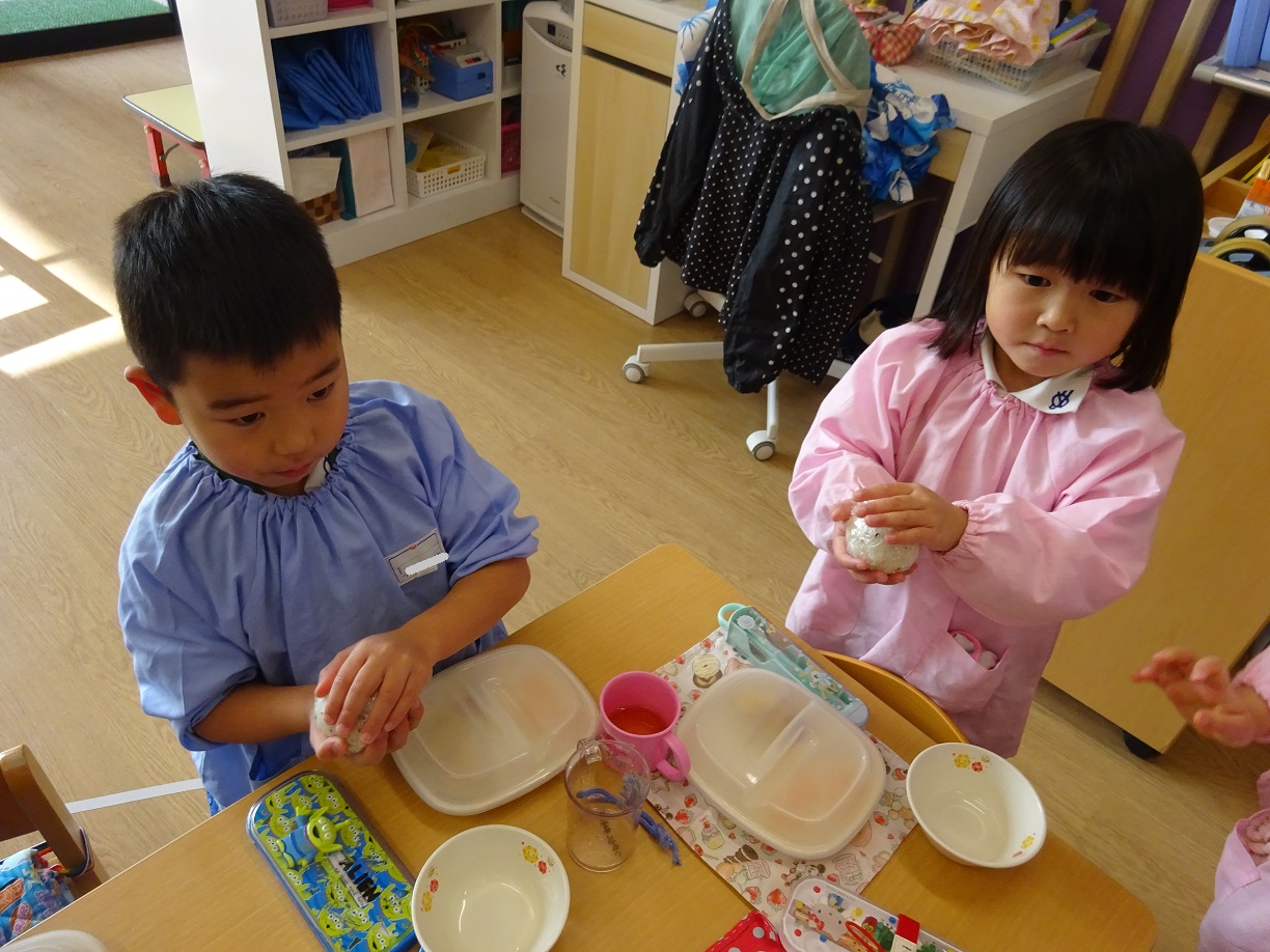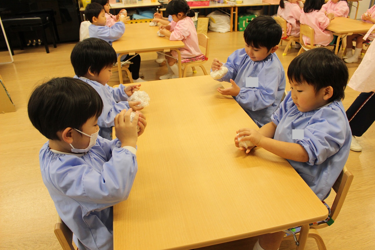 先週、すずらん組が"おむすび"を作りました。