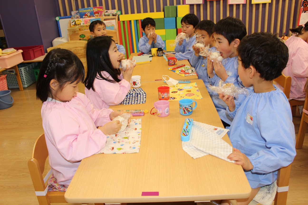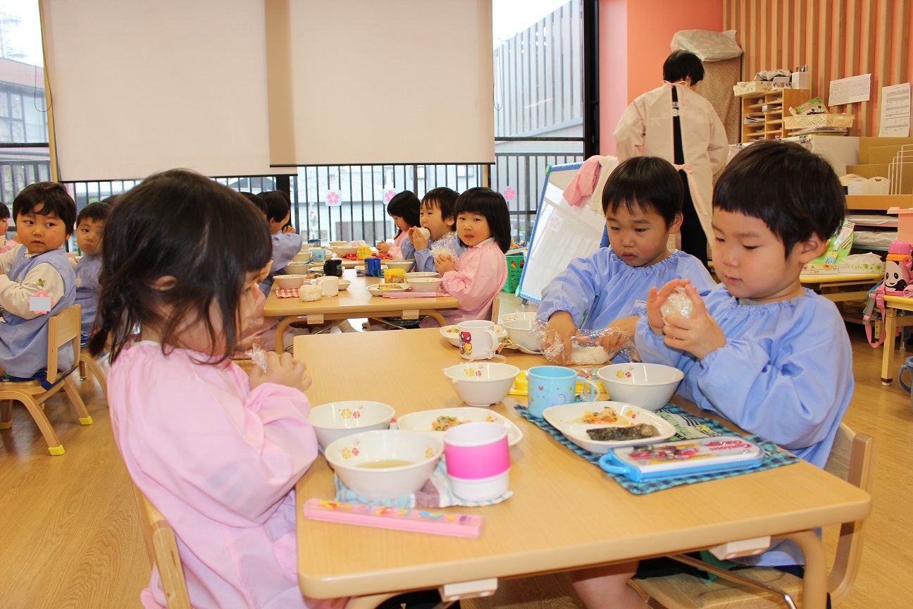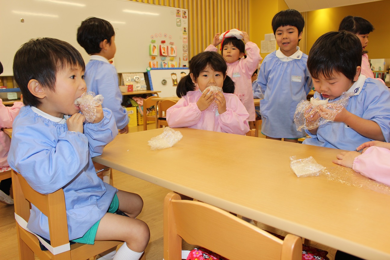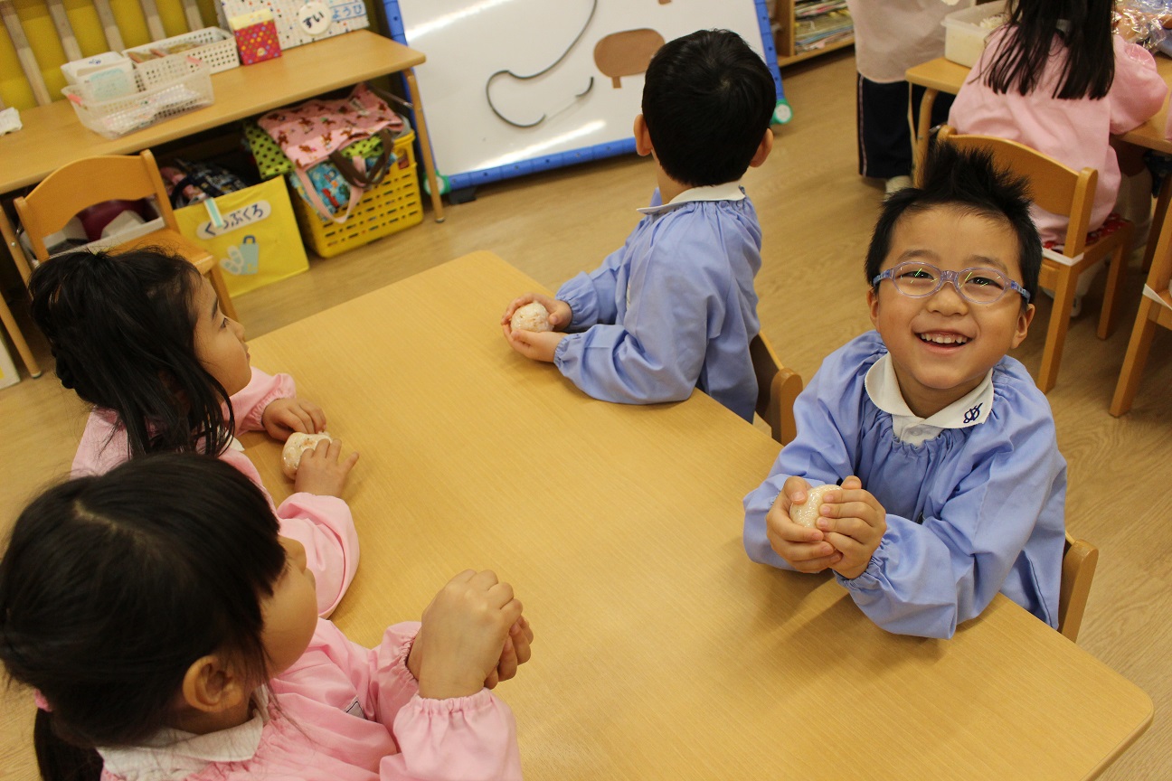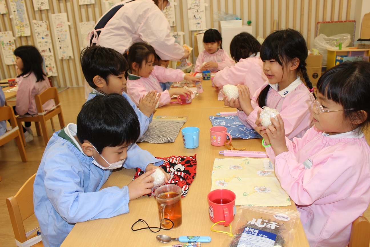 先週、すずらん組が"おむすび"を作りました。