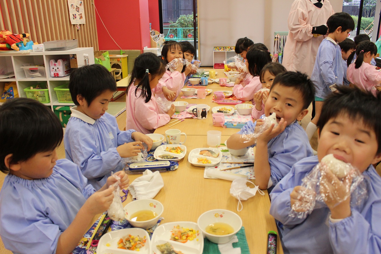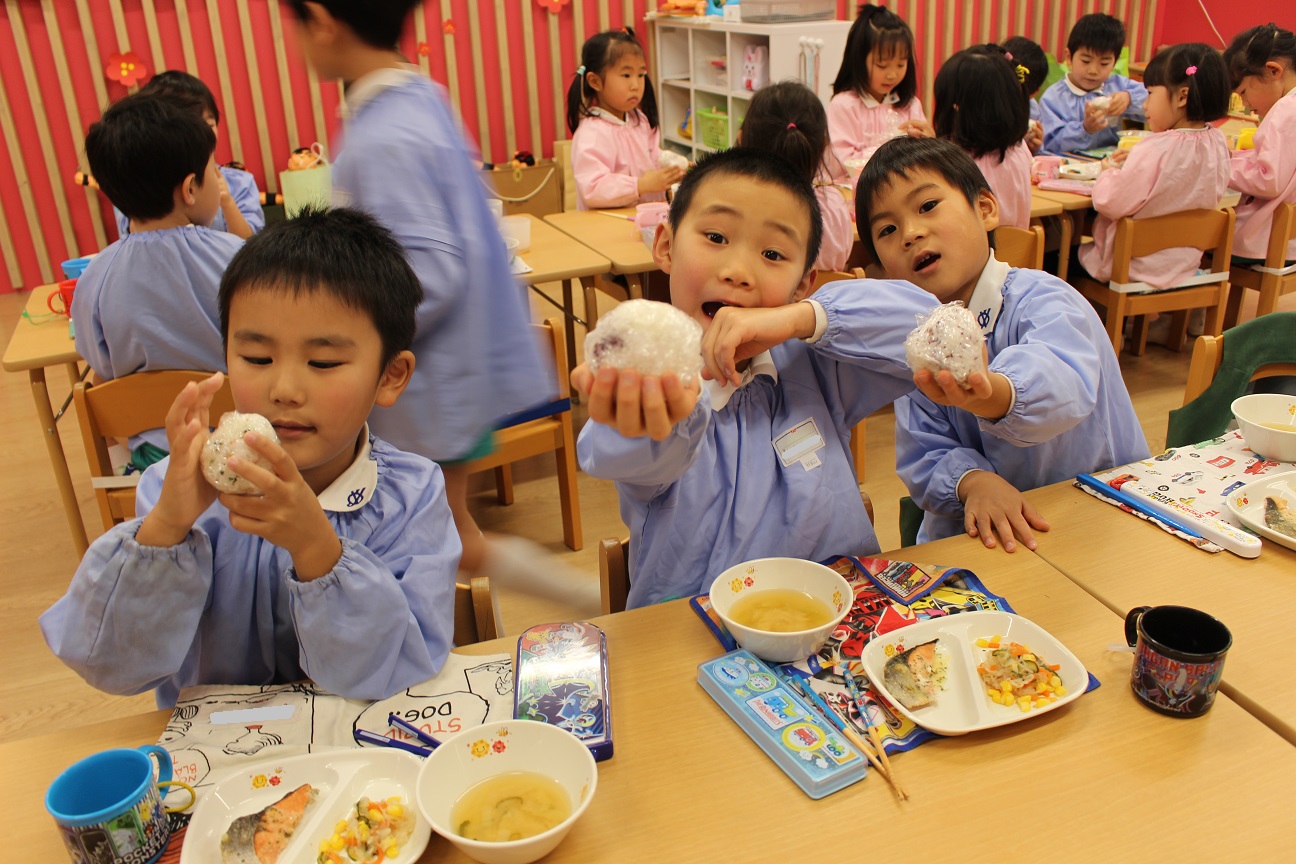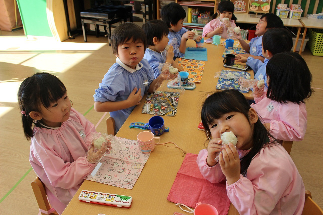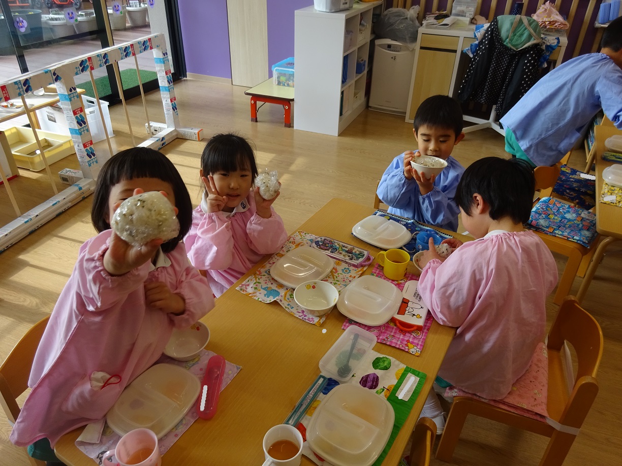 子どもたちにとっては少し難しいお話となりましたが、今日はおむすびを作っておいしくいただきました!