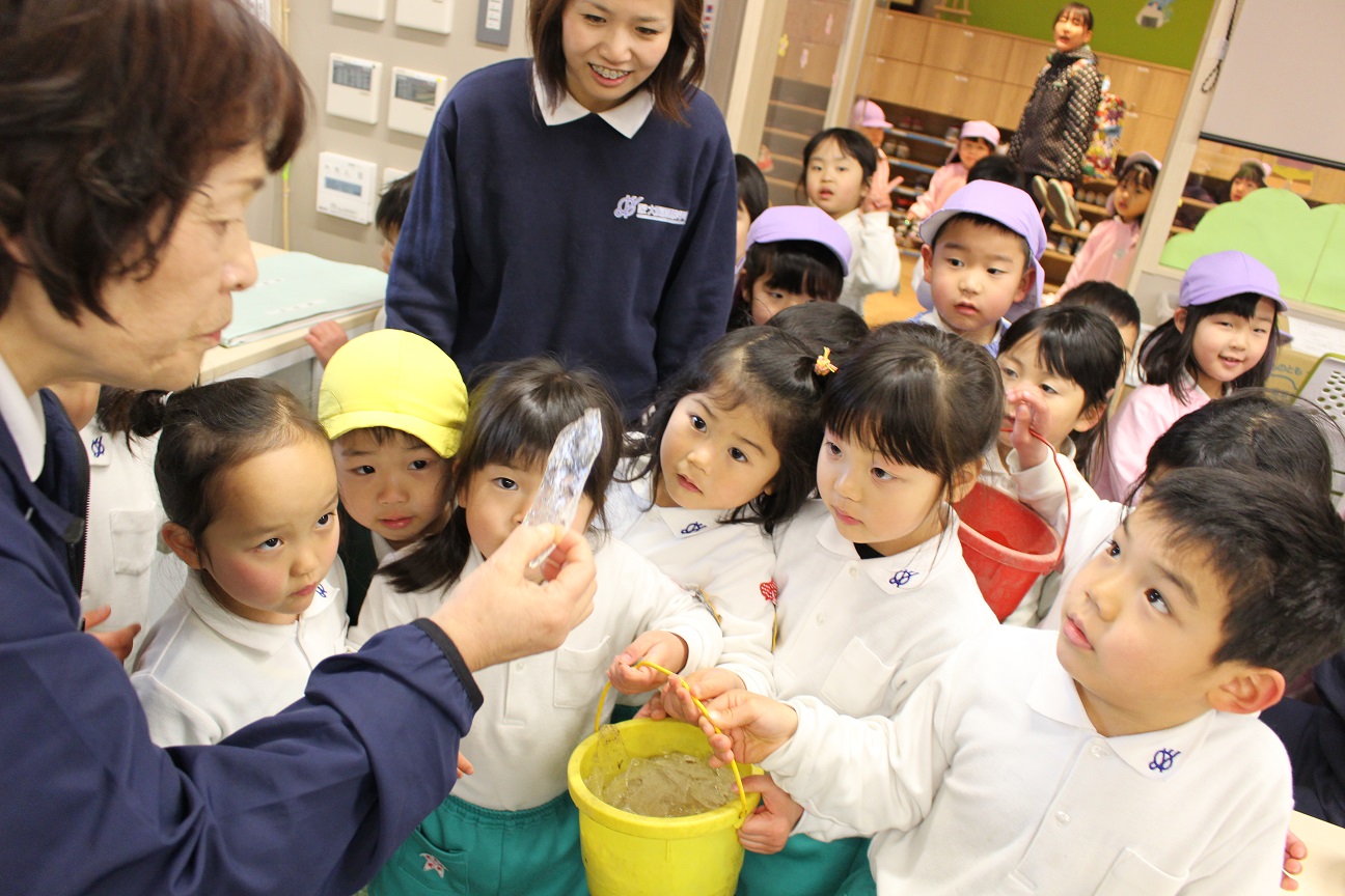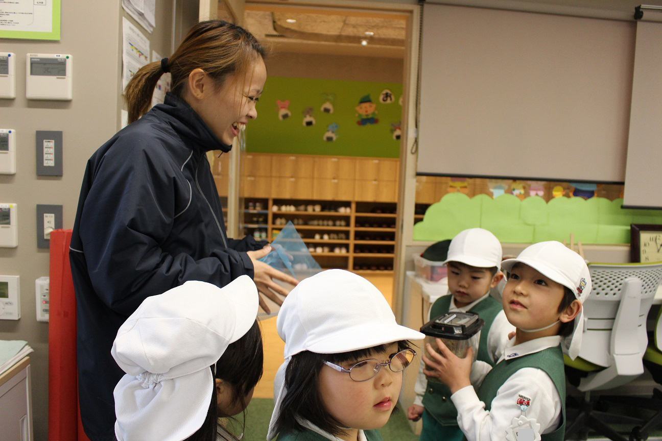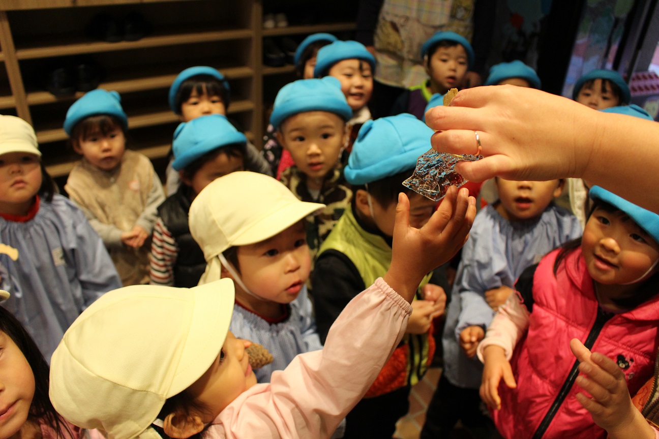 すると、ぱんだ組の子どもたちも外から帰ってきたので、一緒に楽しく見たり触ったりしていましたよ!今の時期しか味わえない楽しさですね♪