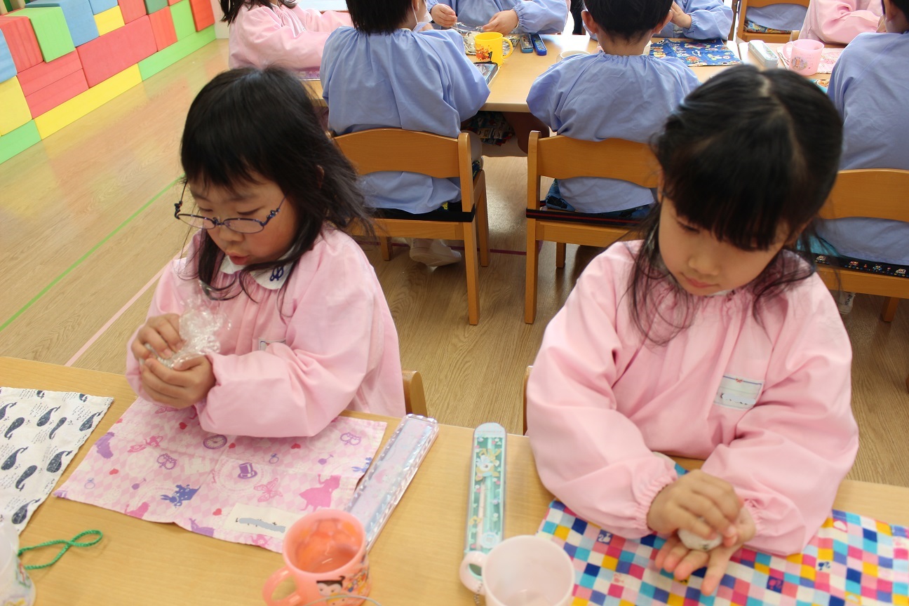 自分で包んで、ぎゅっぎゅっと握ると・・・「みてみて!でき