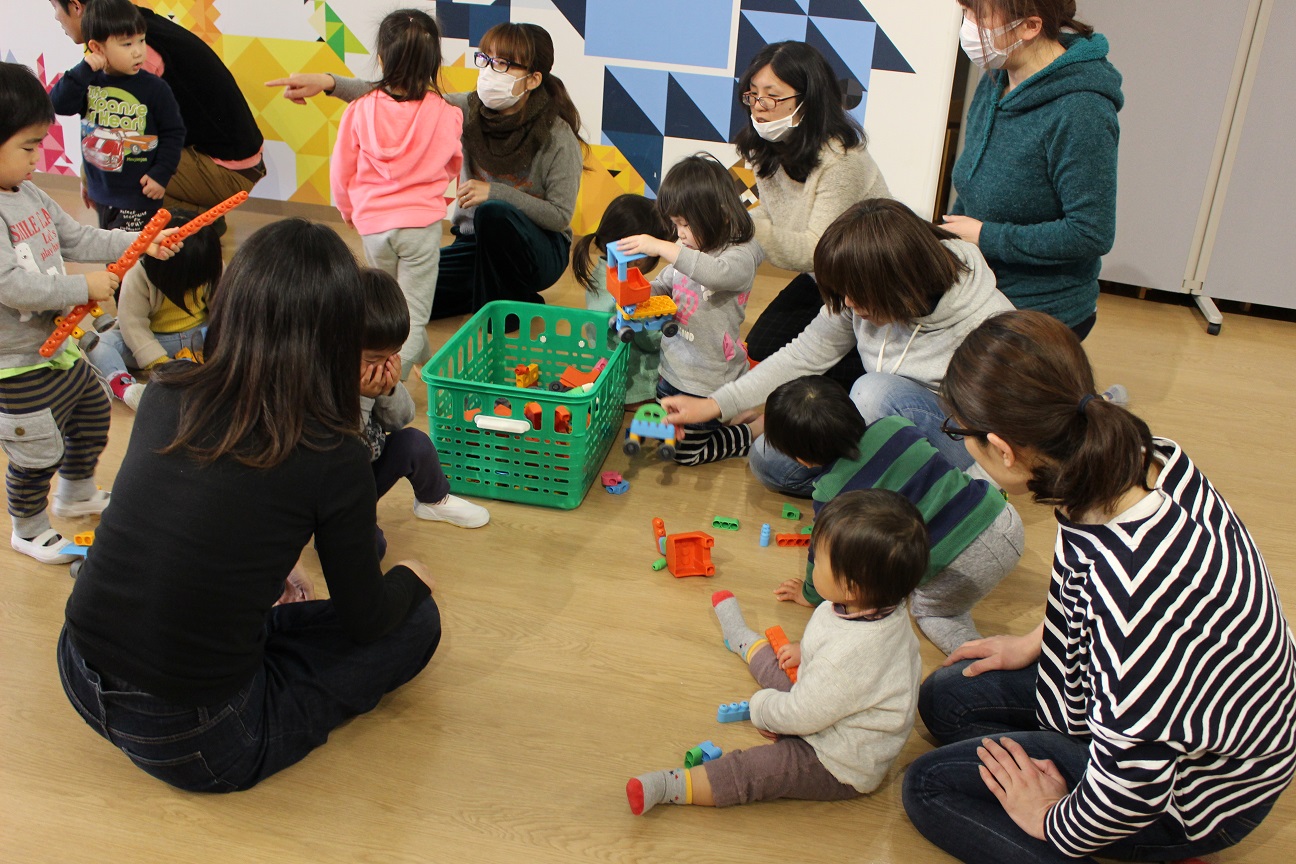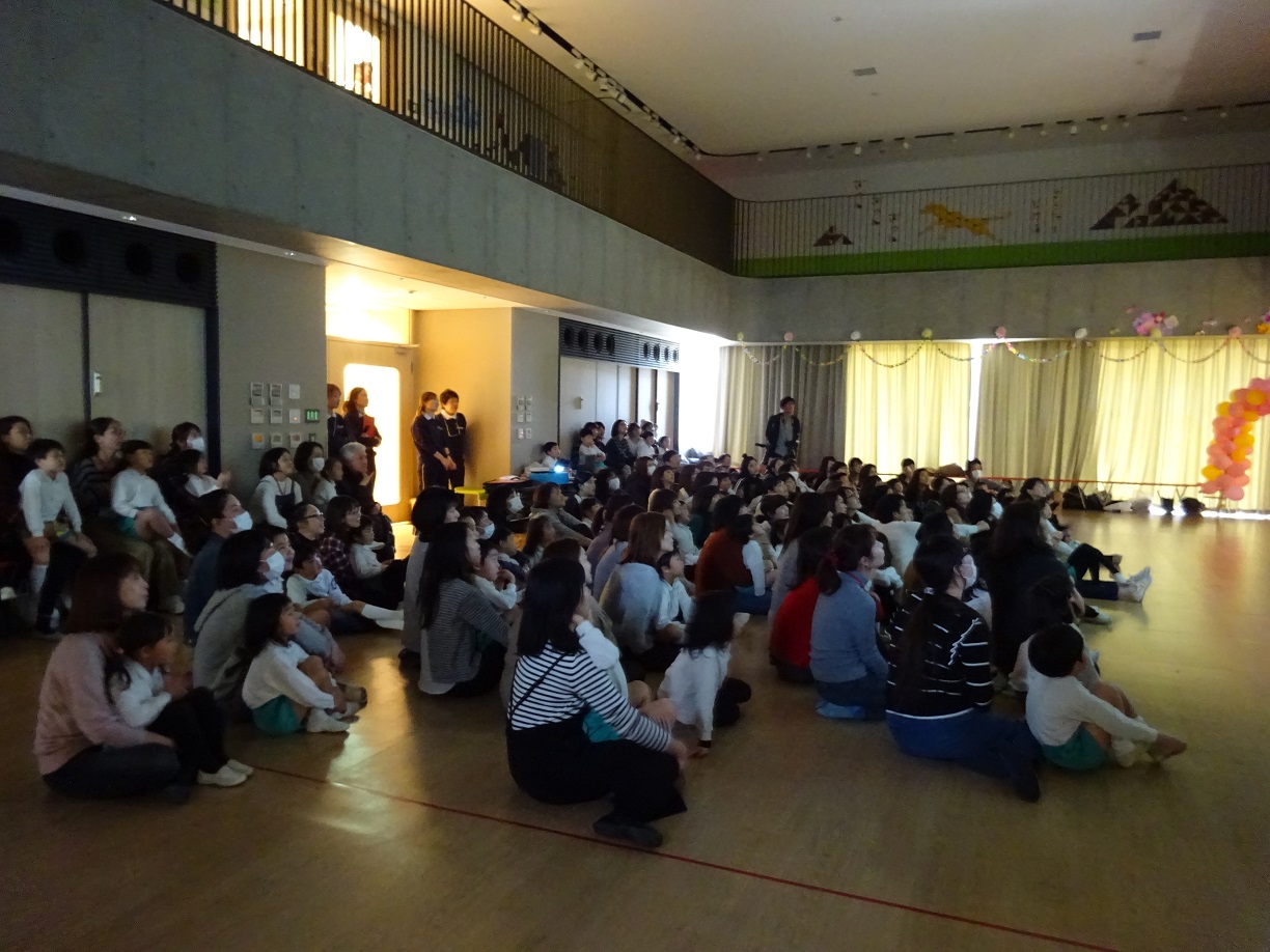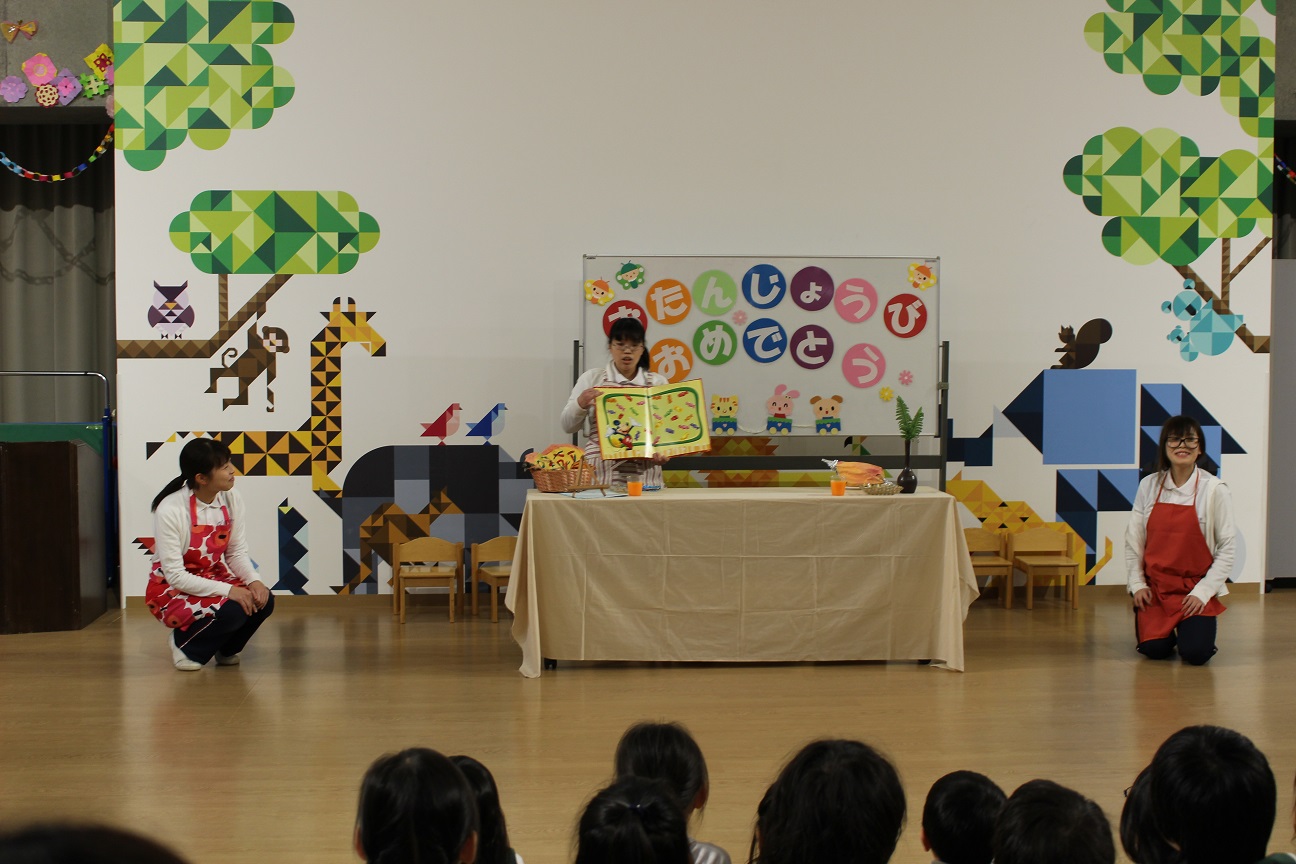 ホールでパネルシアターを見たり、おもちゃで遊んだりしました!