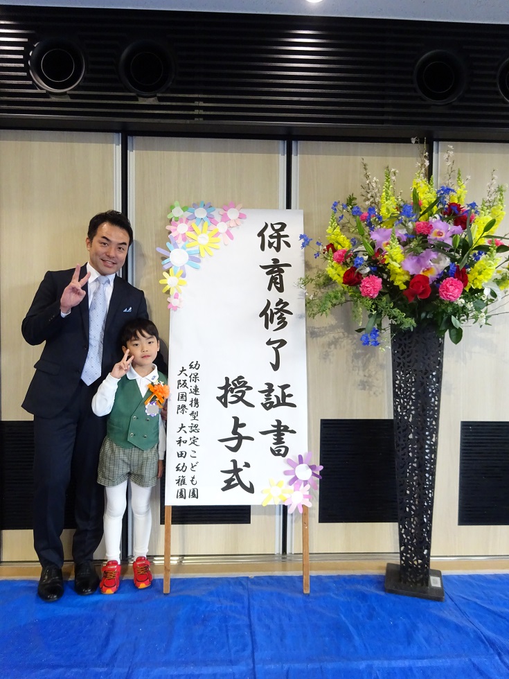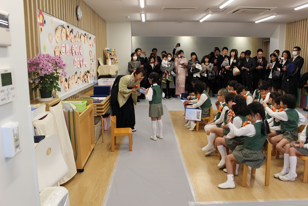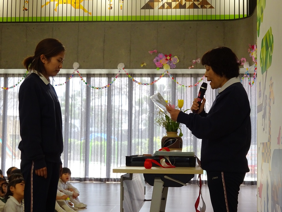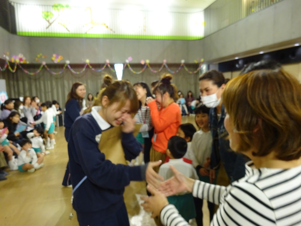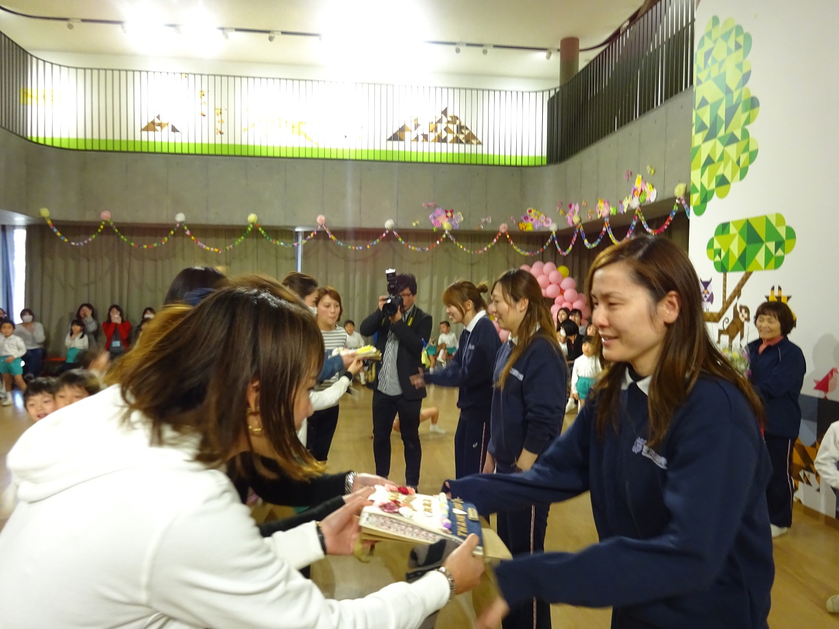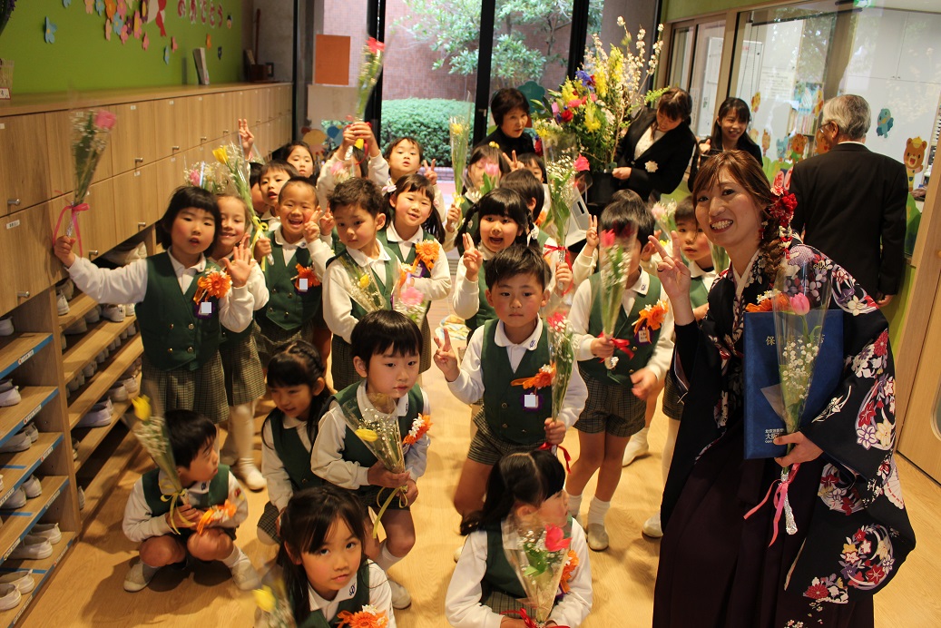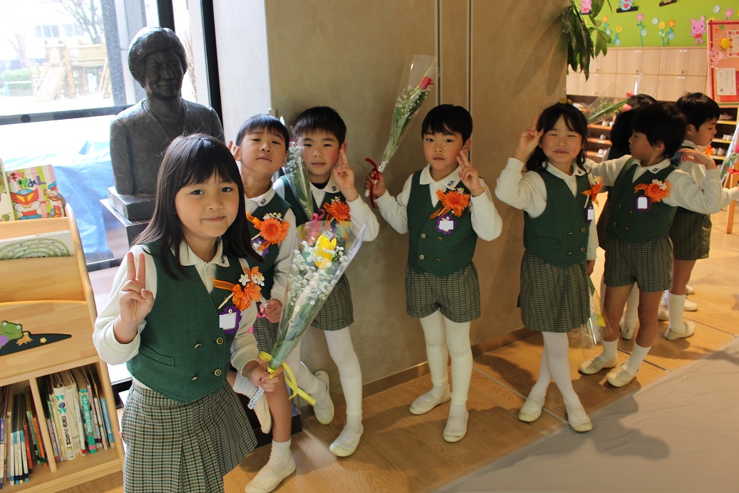 子どもたちの成長が感じられるスライドショー、子どもたちが一生懸命描いたおうちの方へのメッセージカードをプレゼント・・・そして保護者の方々からは園長先生、担任の先生たちに思いのこもった花束とプレゼントをいただきました。