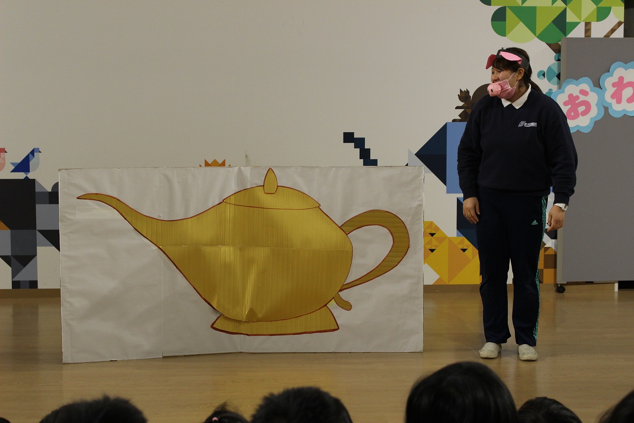 「おなかが空いたな~ あ!カレーを入れるポットと思ったら!魔法のランプだ!」