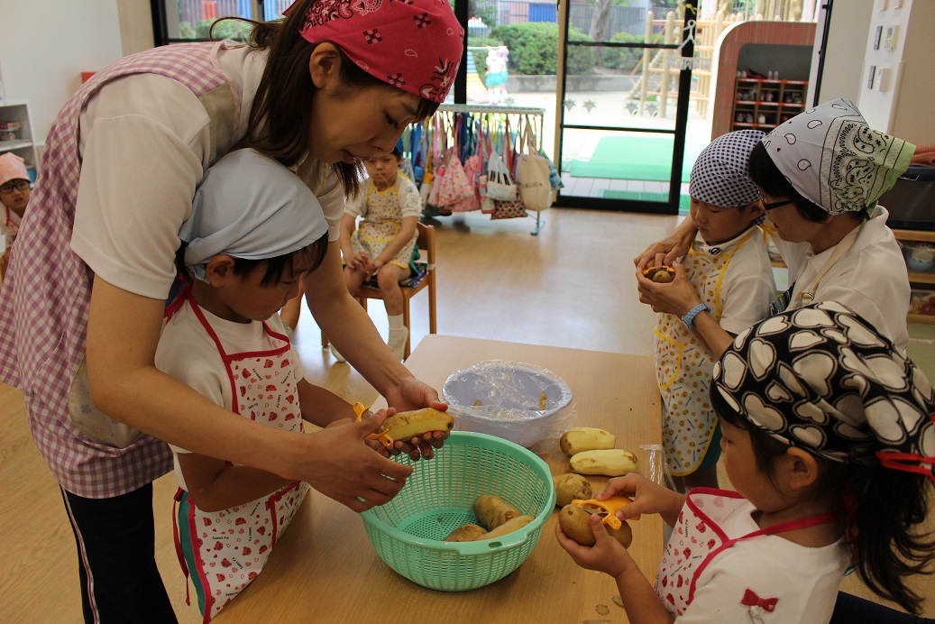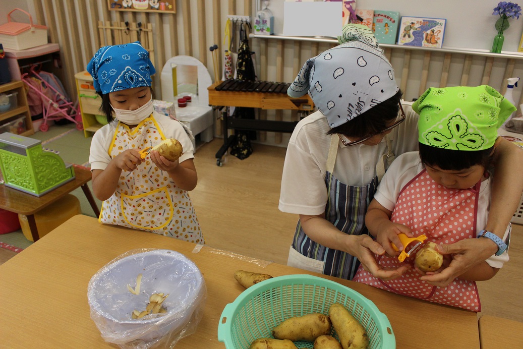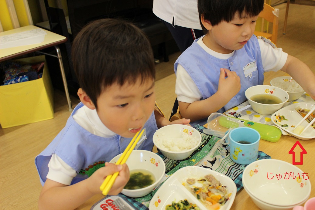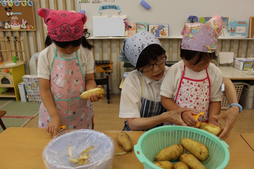 昨日、年長組の子ども達が収穫したじゃがいもを年中組・年少組・ひよこ組も