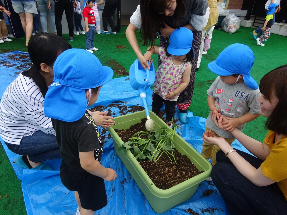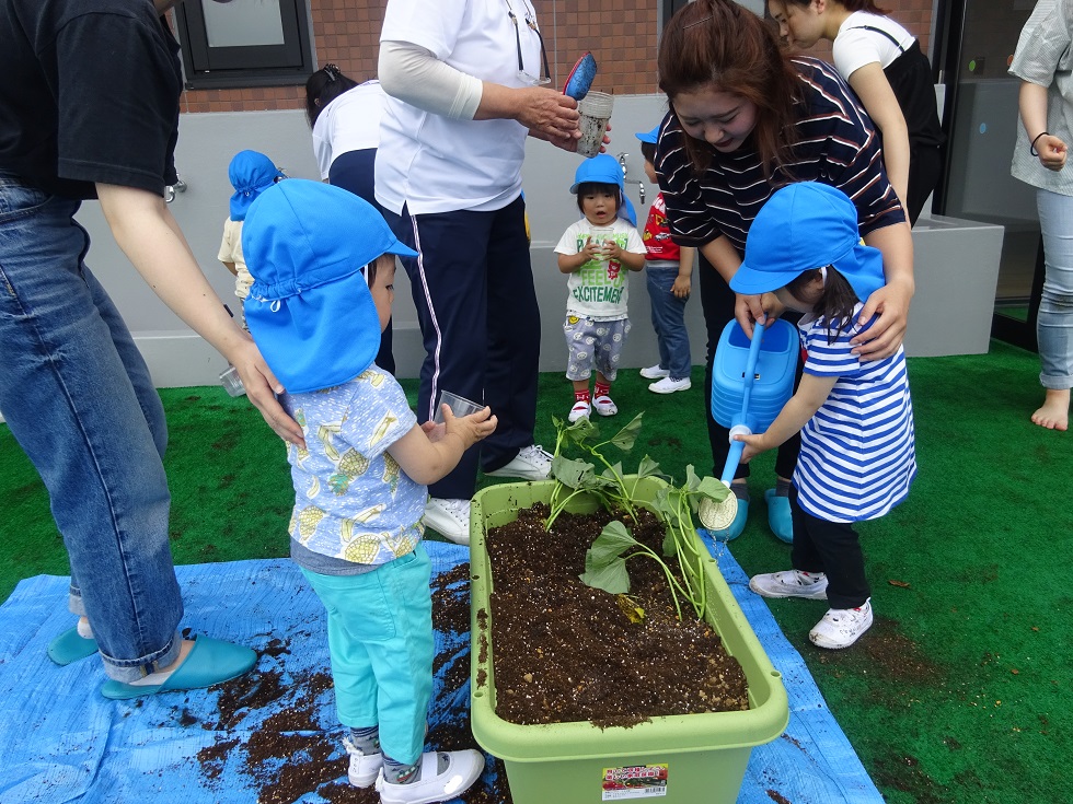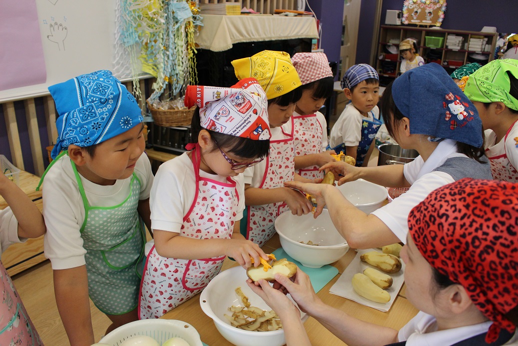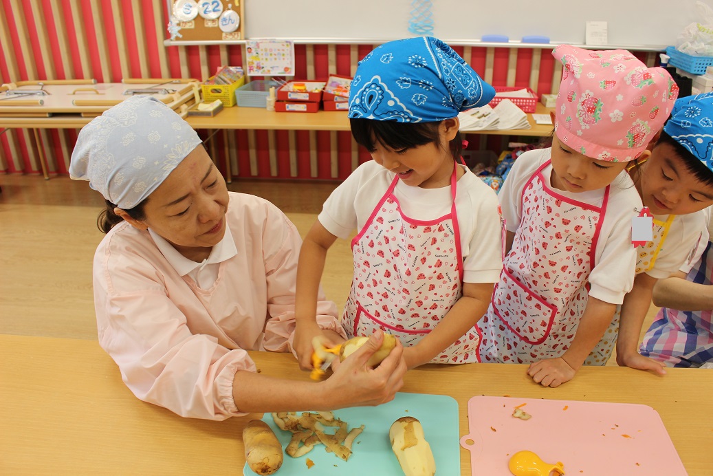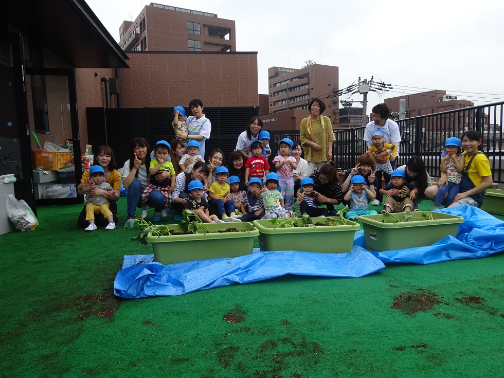 昨日、年長組の子ども達が収穫したじゃがいもを年中組・年少組・ひよこ組も