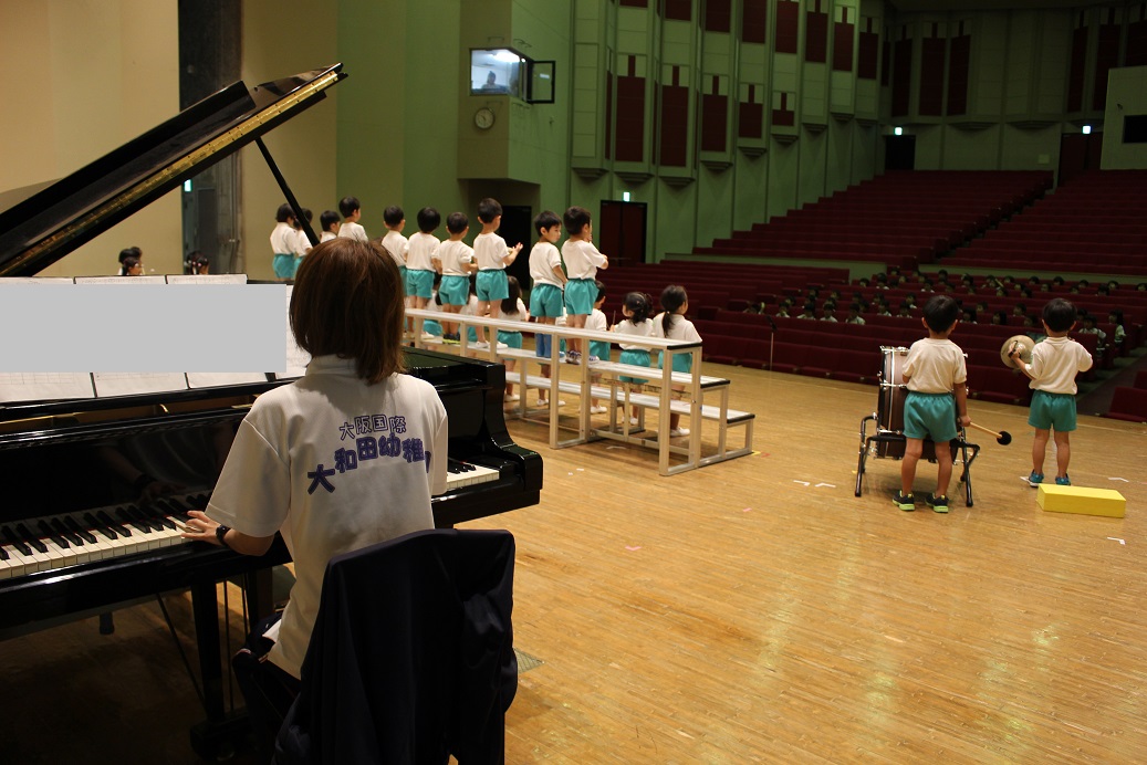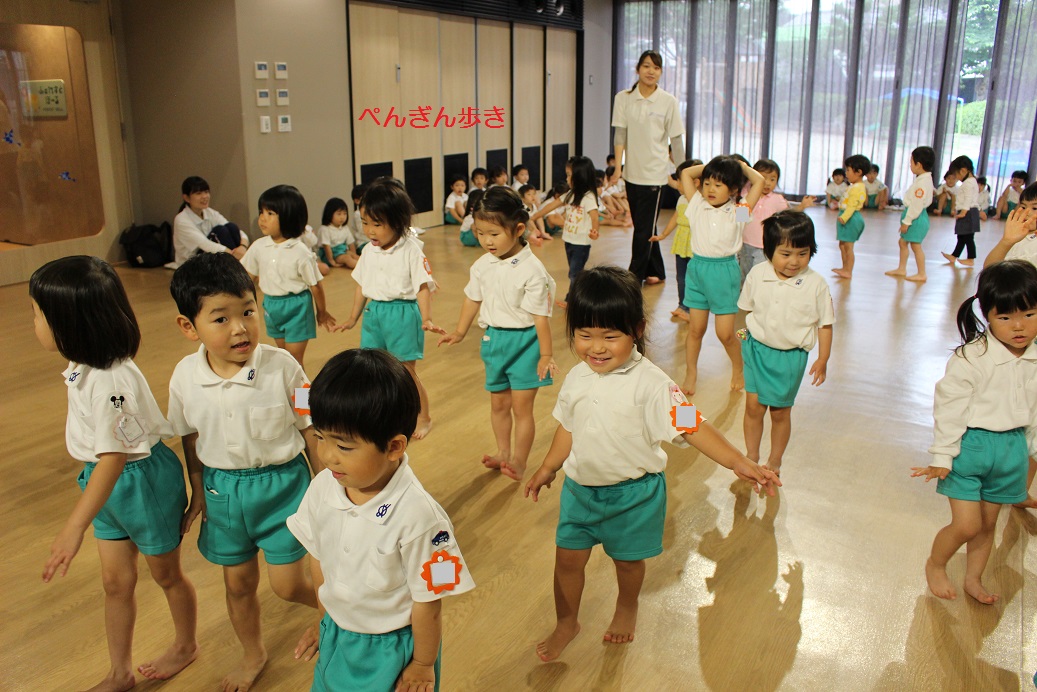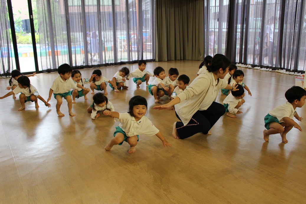 年少組とひよこ組 幼稚園のホールでピアノに合わせてリトミックをしました!