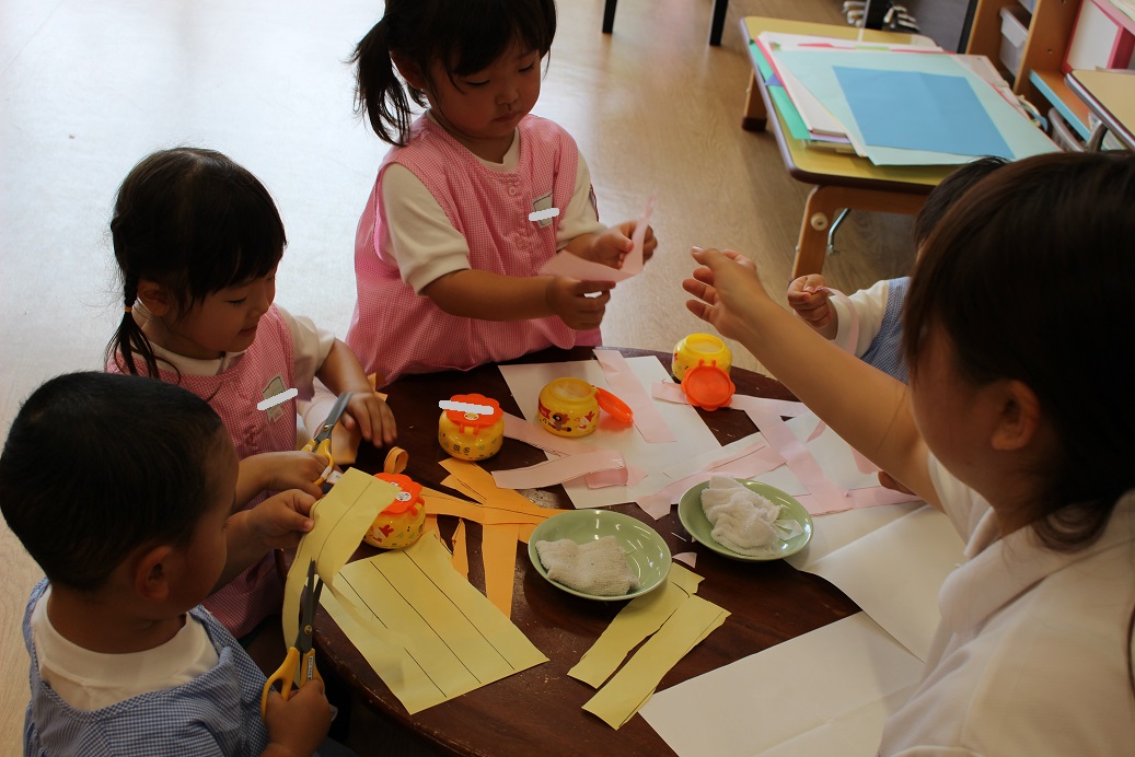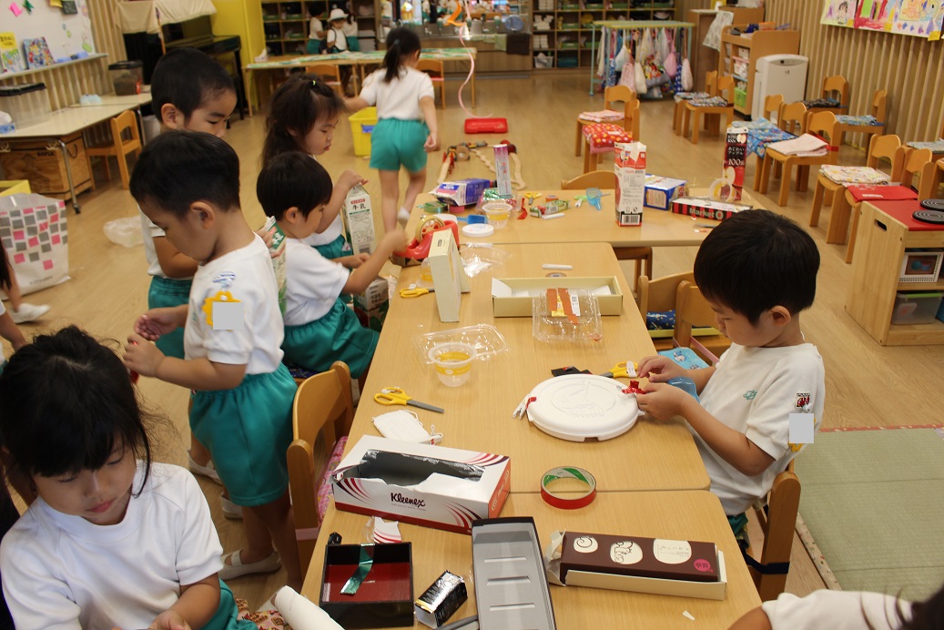 ひまわりぐみさんは、それぞれ思い思いのものを作っていました!