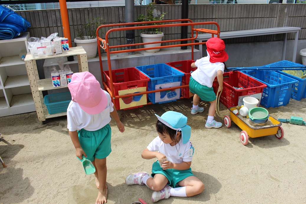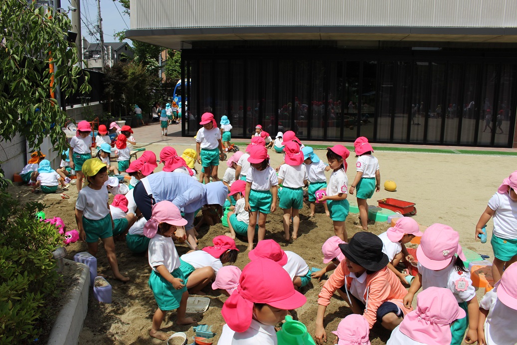 今日の戸外遊びは汗をかくほど暑かったです!