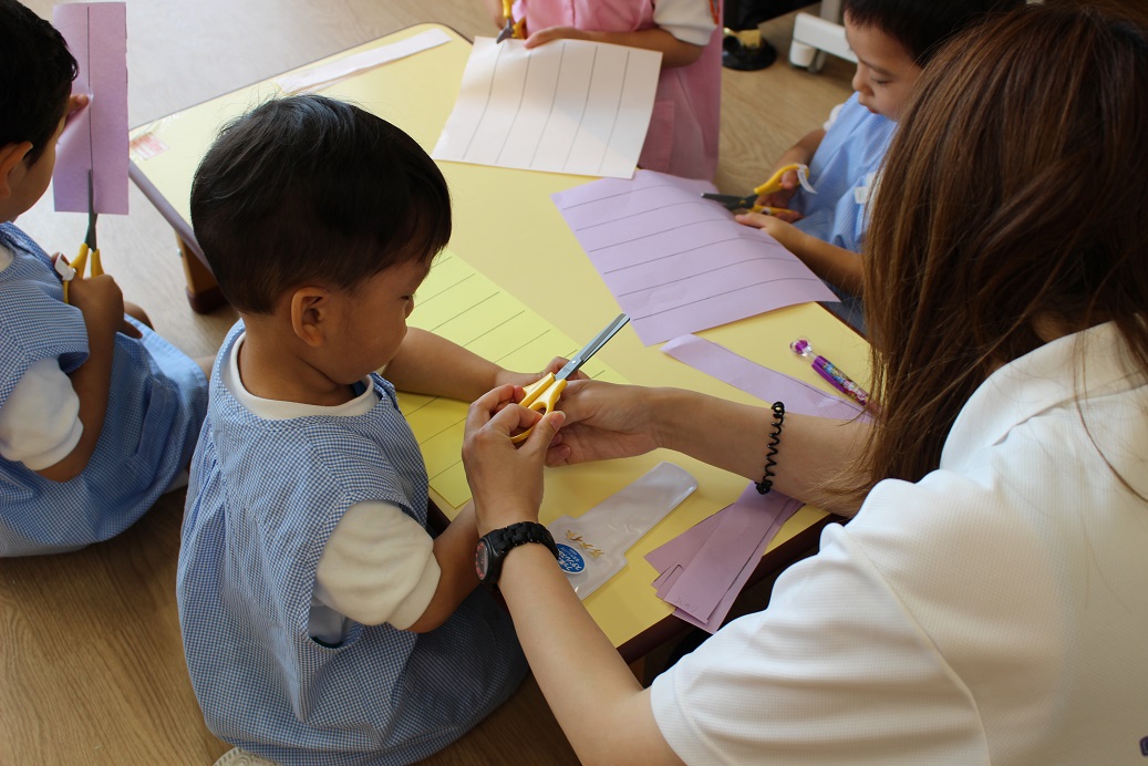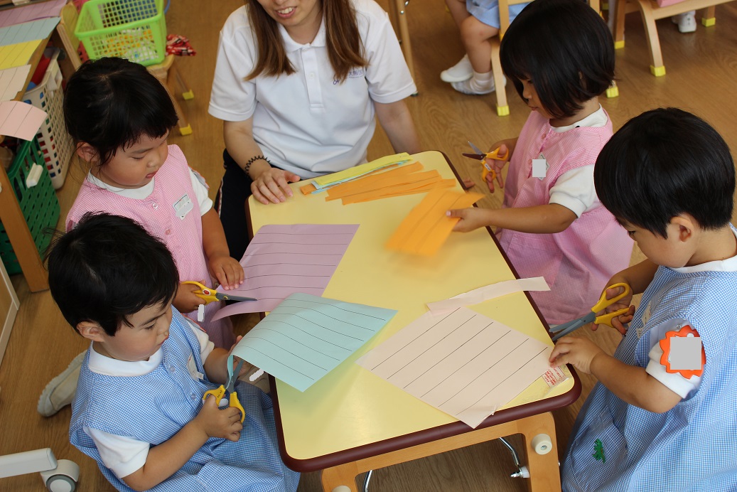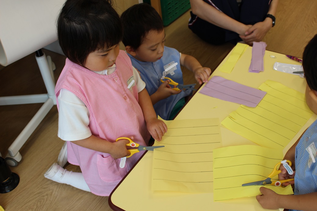 先生の話をしっかり聞き、上手に切ることができましたよ♪