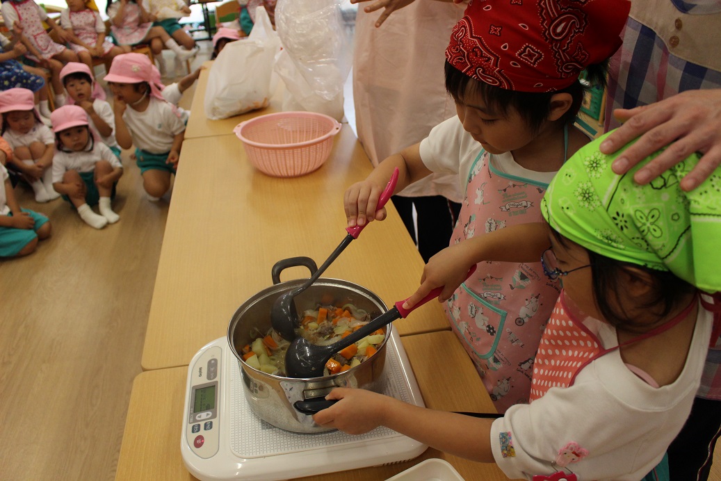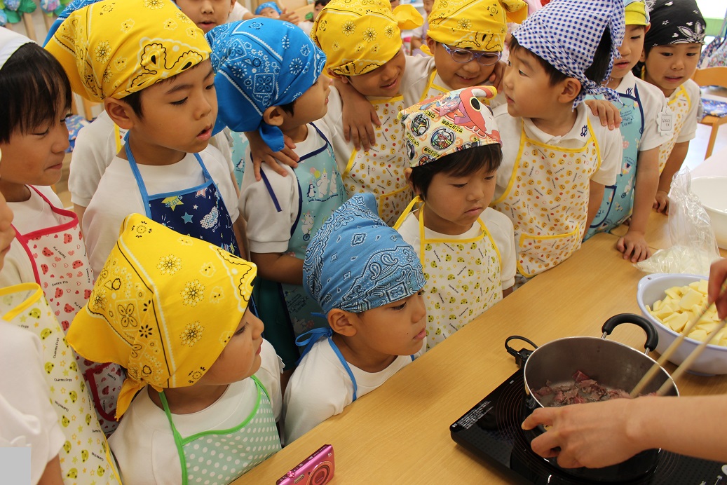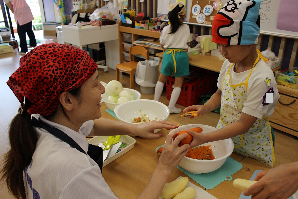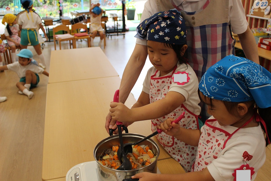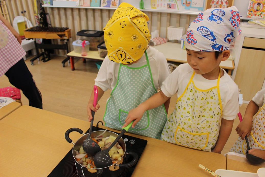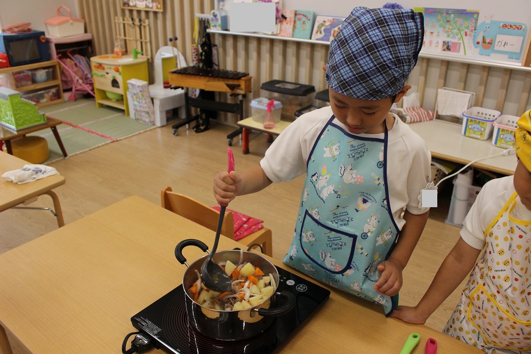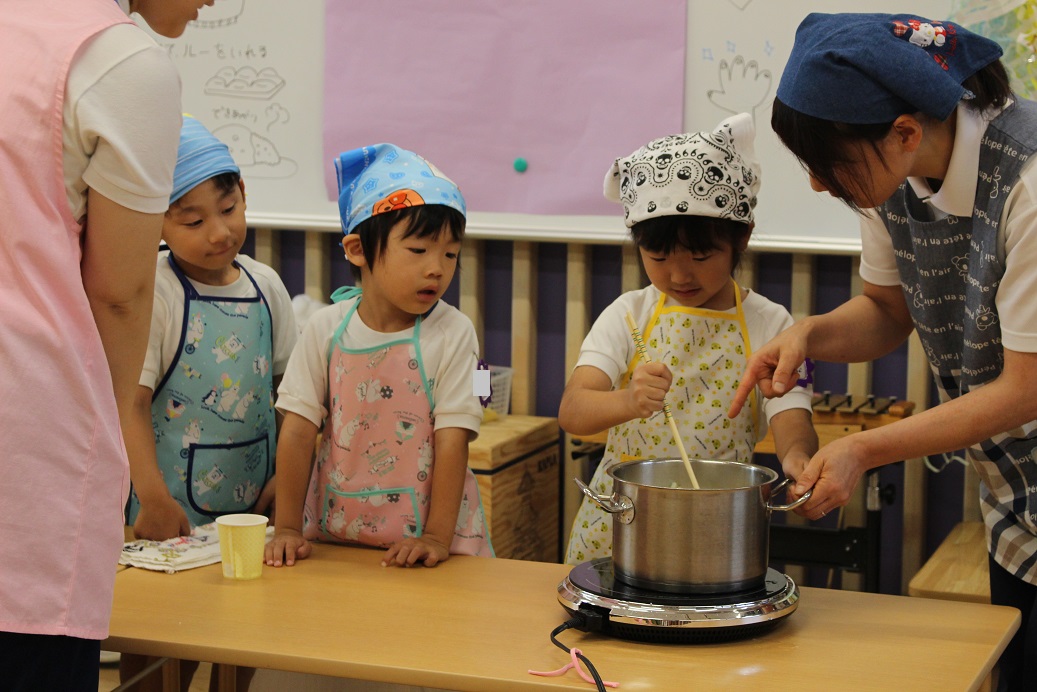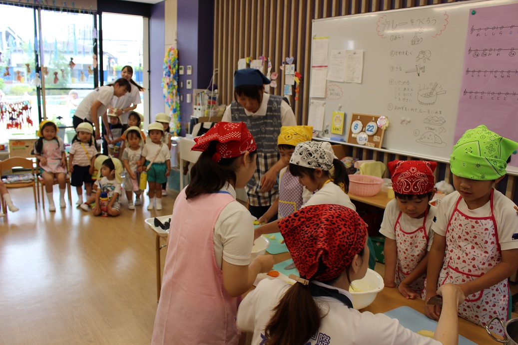 今日は年長組の子どもたちが楽しみにしていた"カレークッキング"の日です!