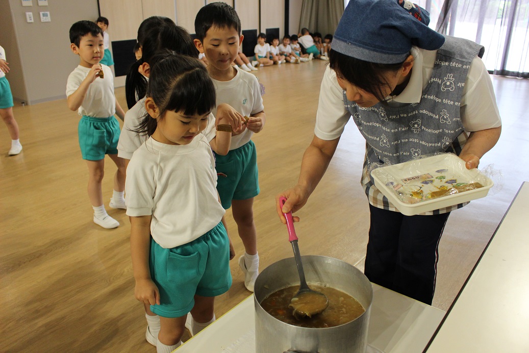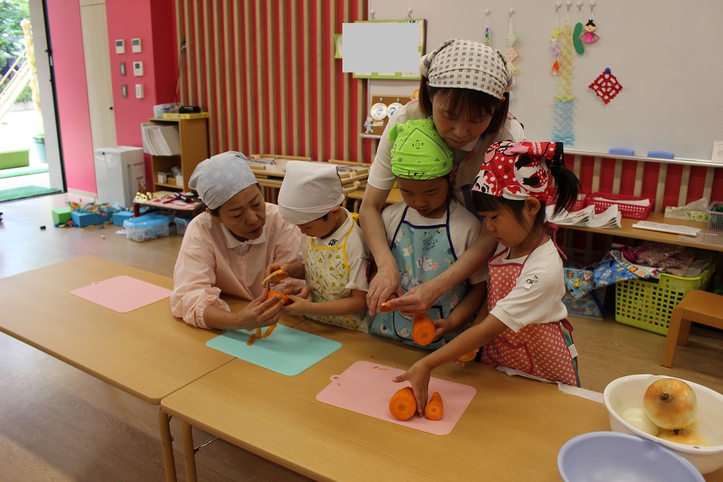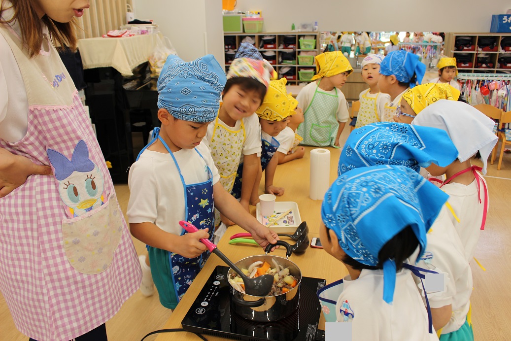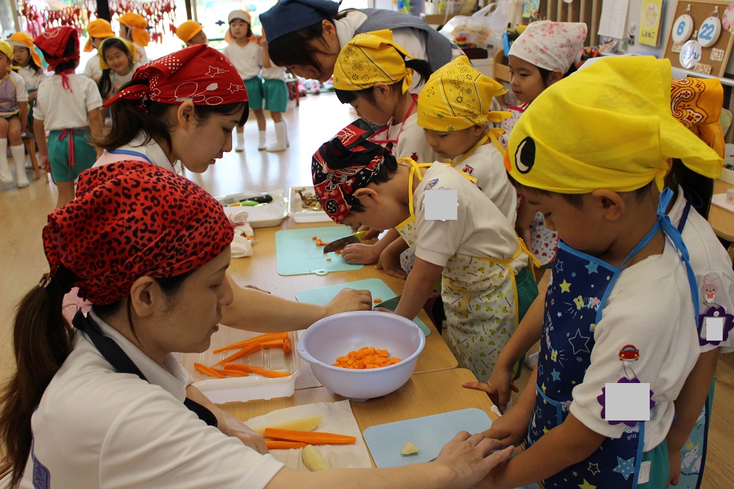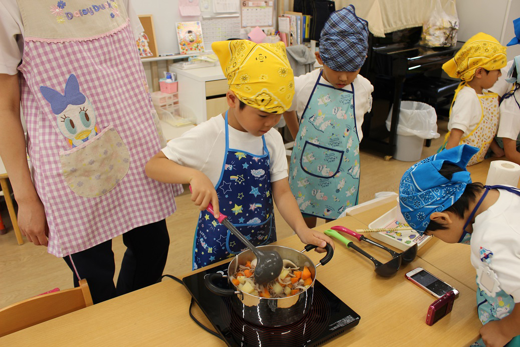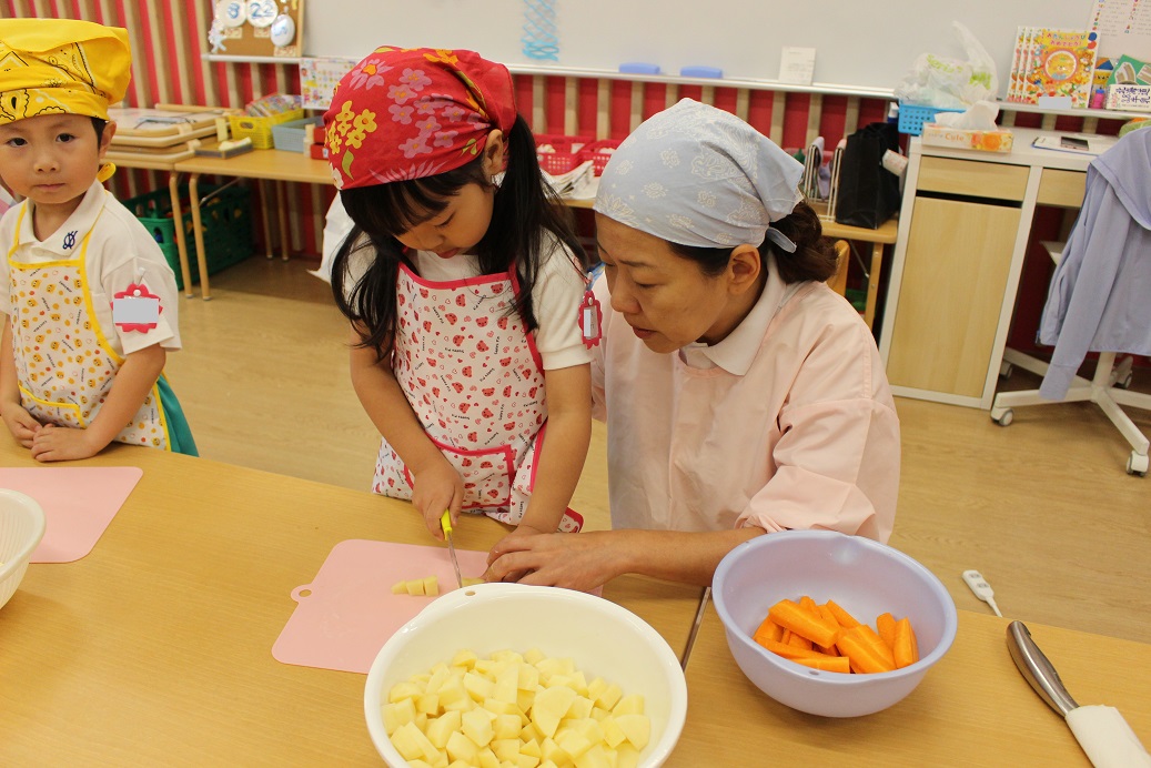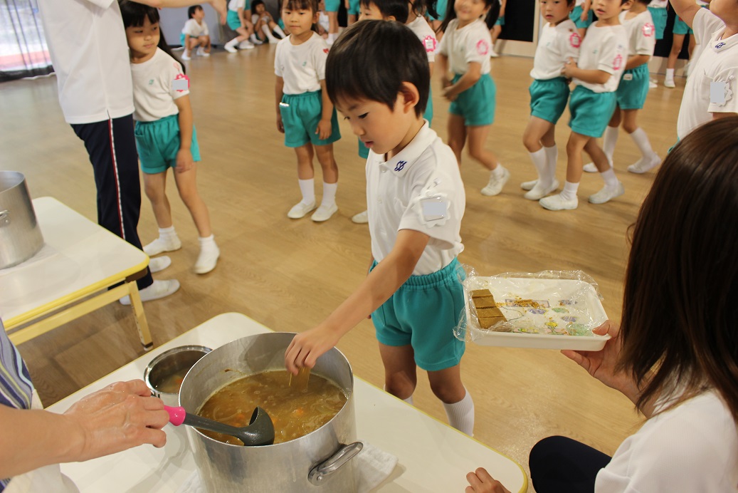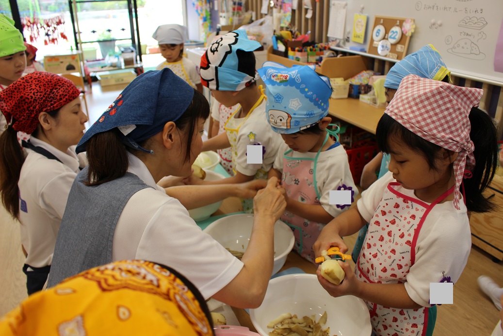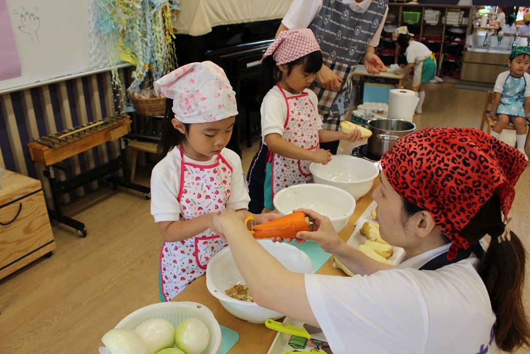 今日は年長組の子どもたちが楽しみにしていた"カレークッキング"の日です!