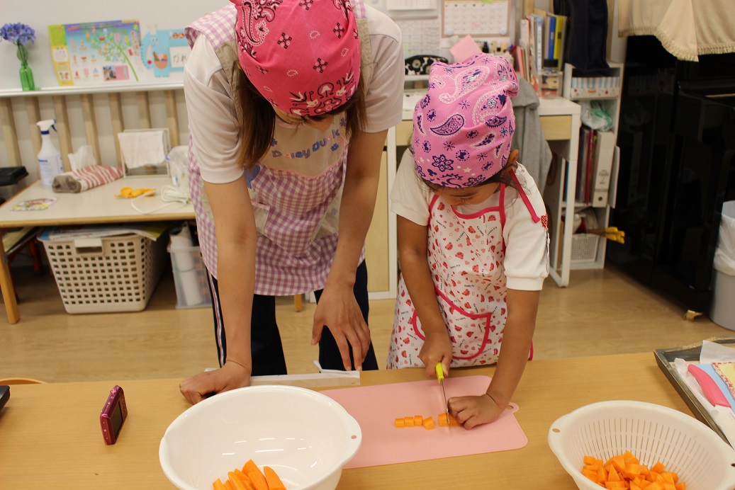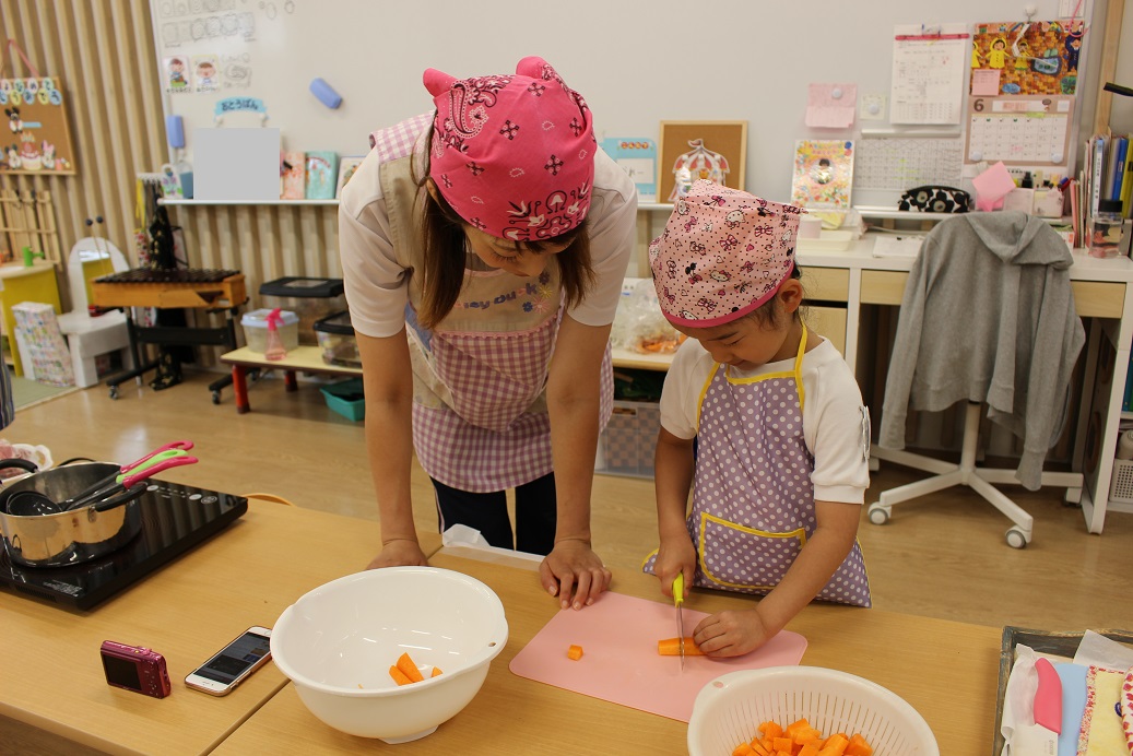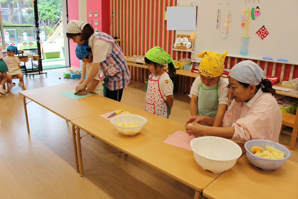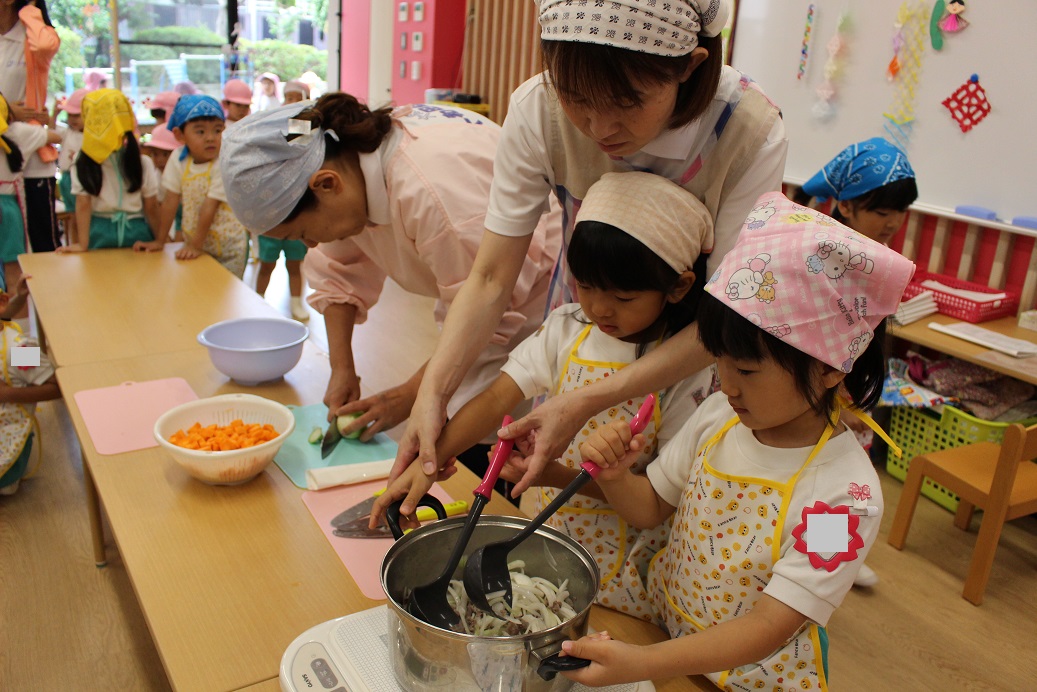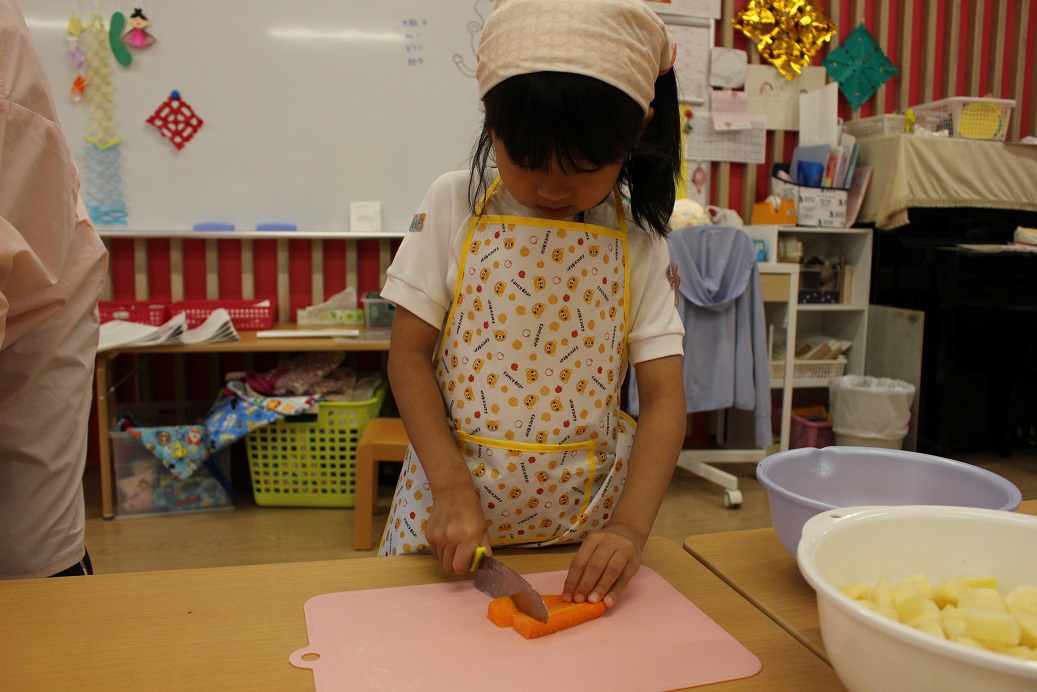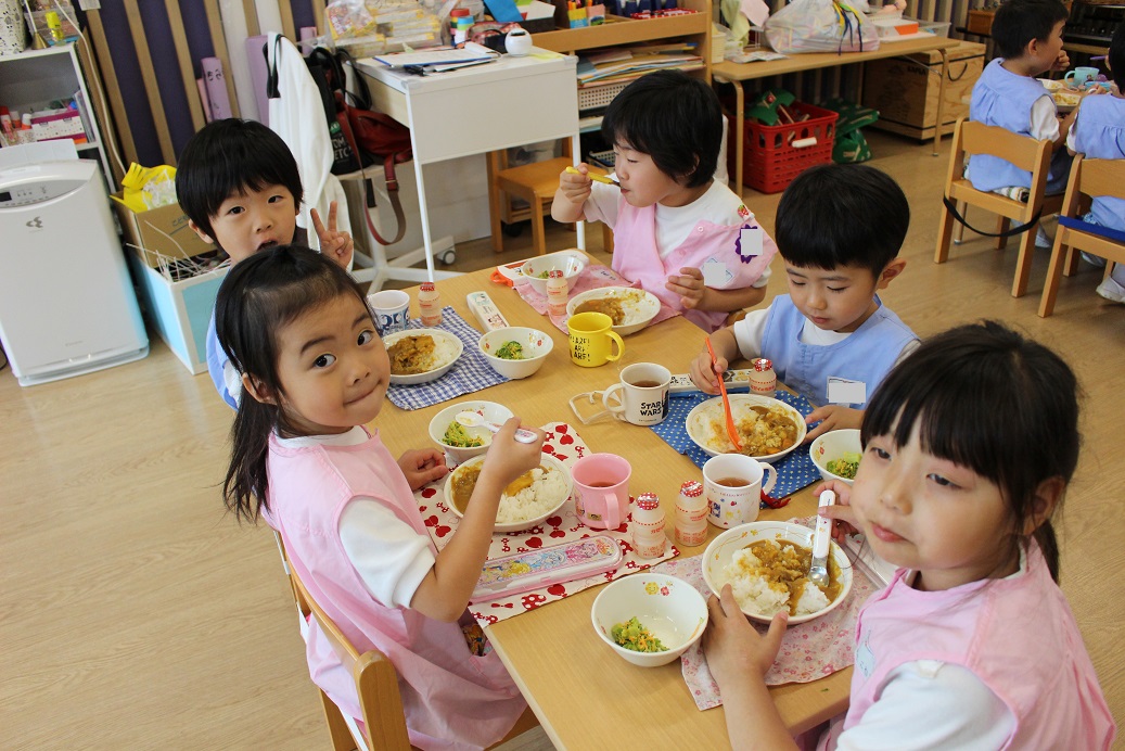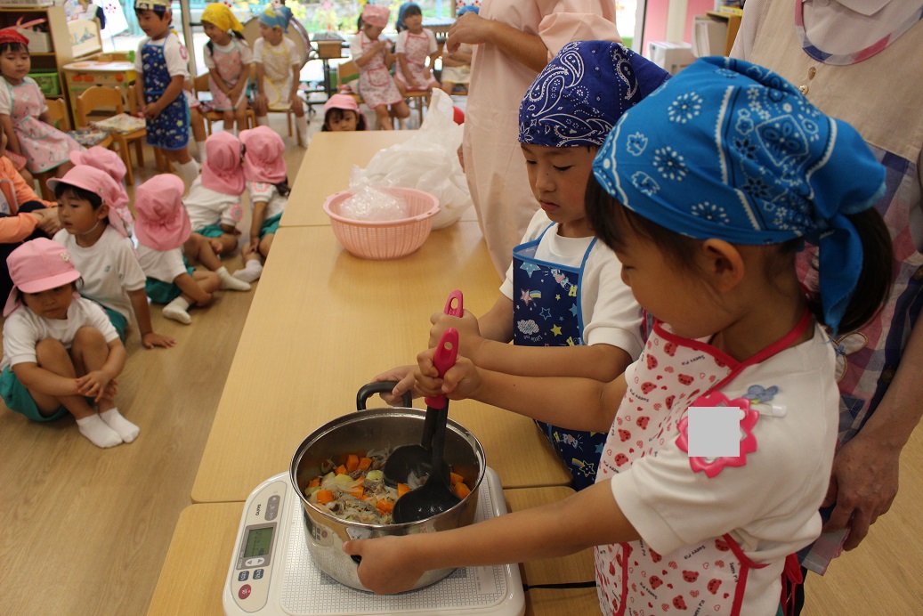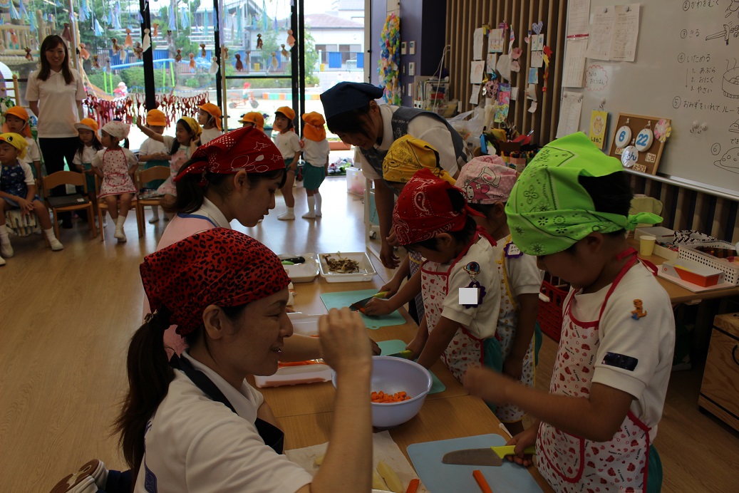 今日は年長組の子どもたちが楽しみにしていた"カレークッキング"の日です!