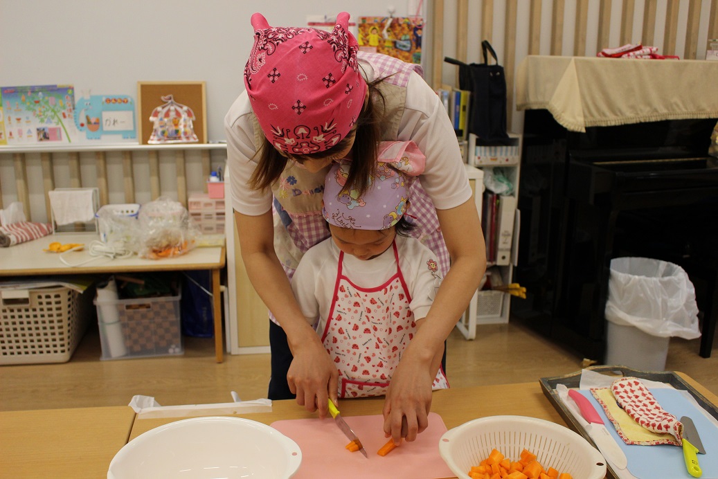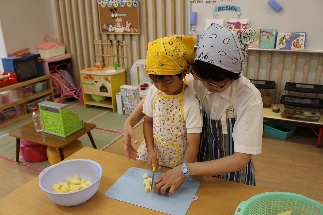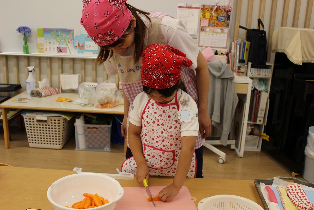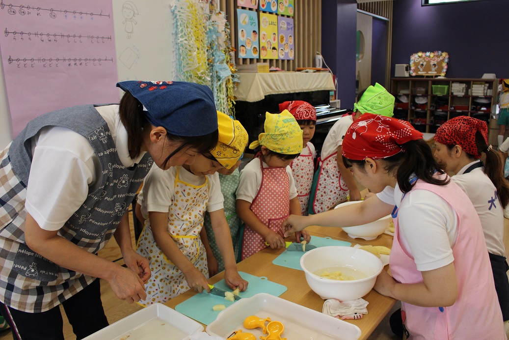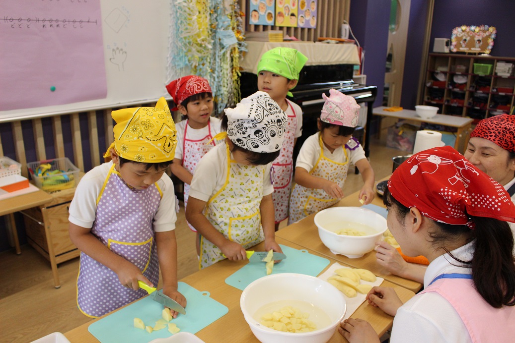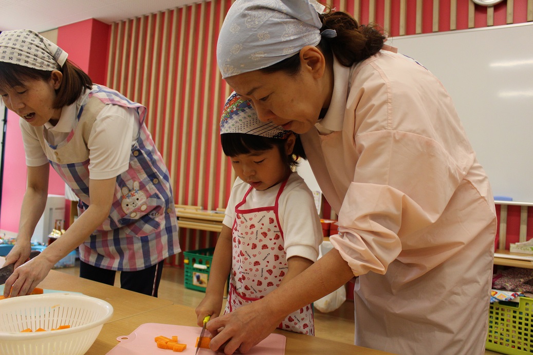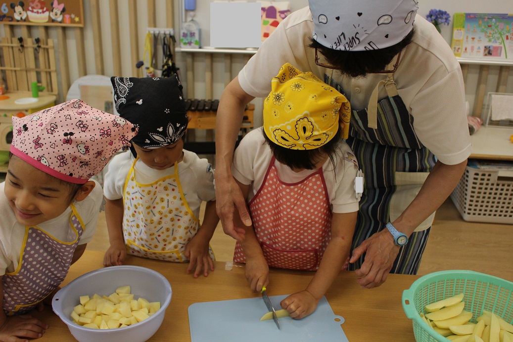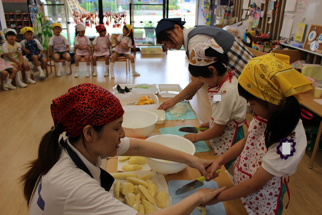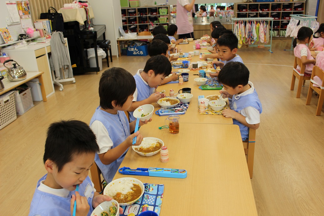 今日は年長組の子どもたちが楽しみにしていた"カレークッキング"の日です!