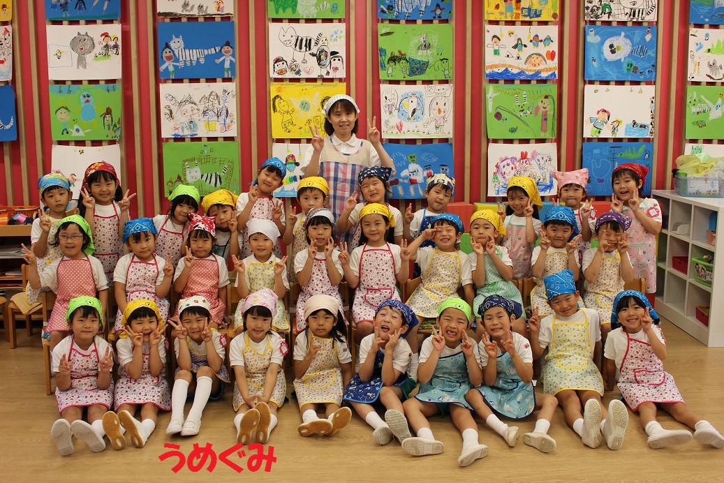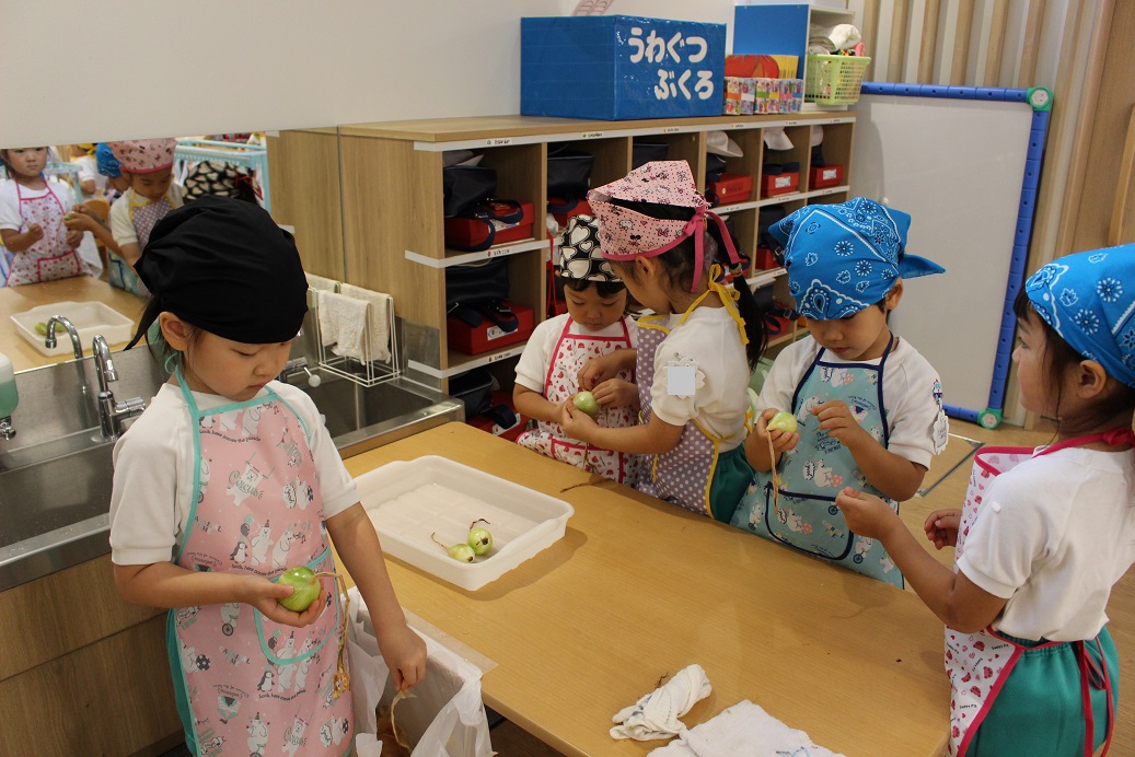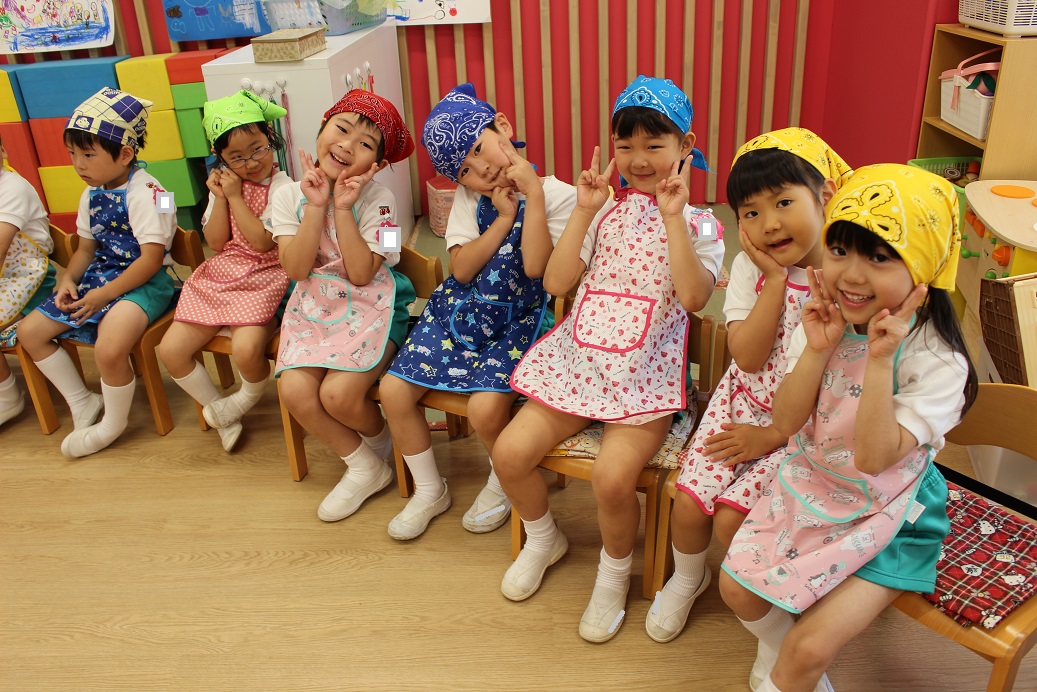 朝からエプロンと三角巾をつけ、しっかり手洗い・うがいをしたら準備万端です!