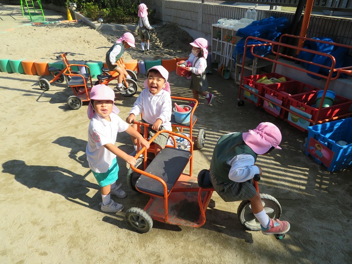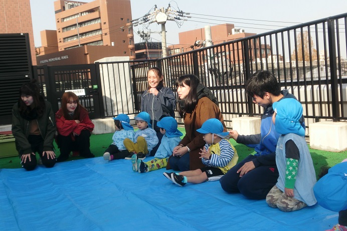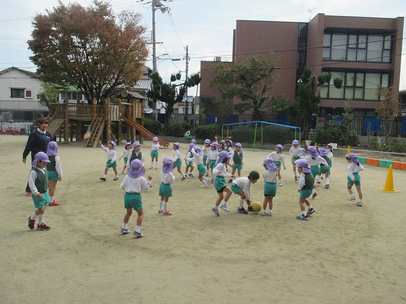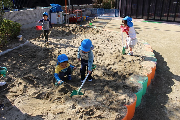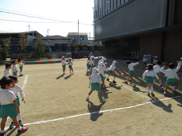 日陰に入ると少し肌寒く感じますが・・・子どもたちはそんな寒さを吹き飛ばして、元気いっぱい戸外で遊んでいました!