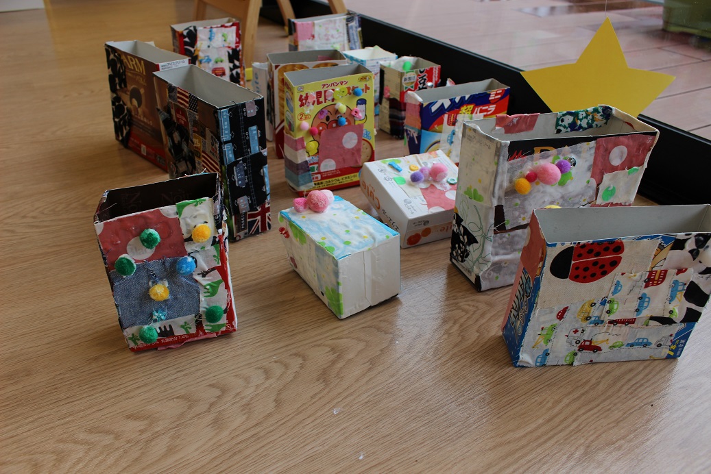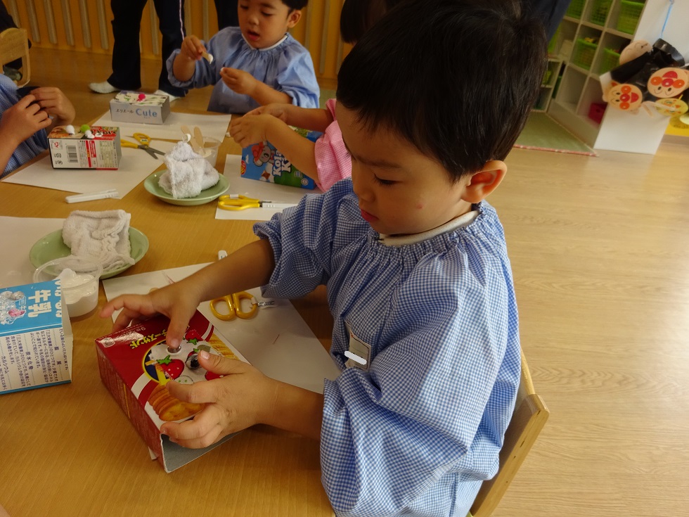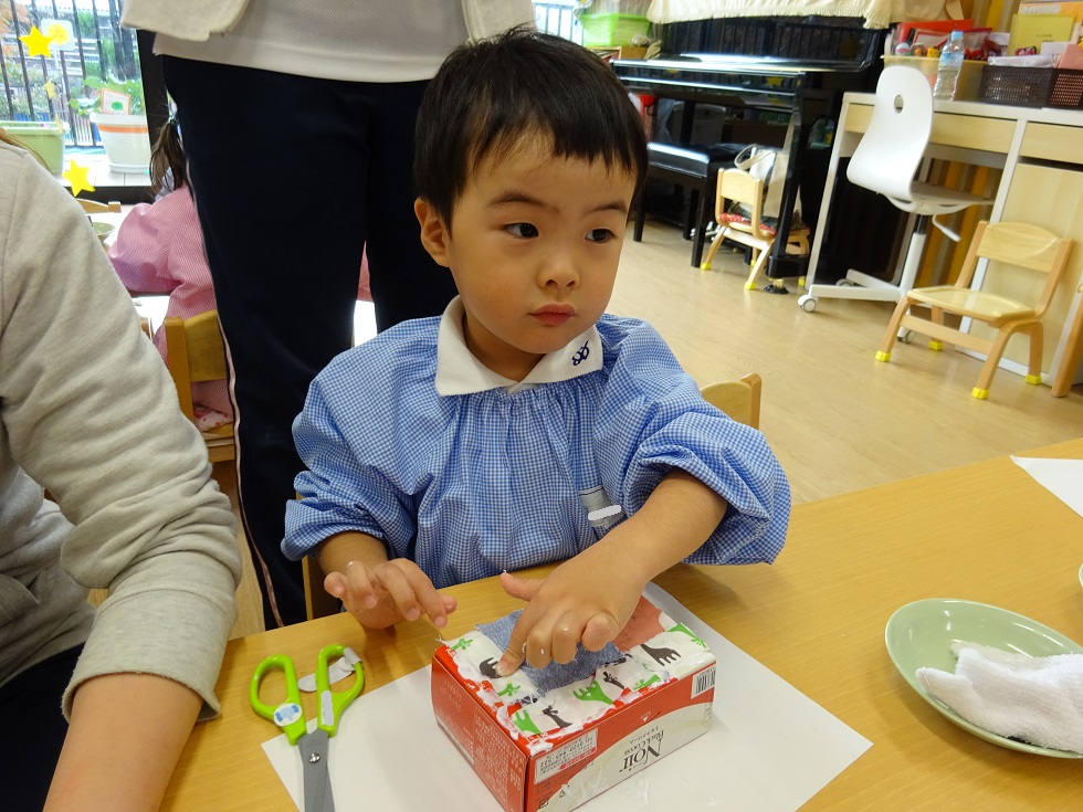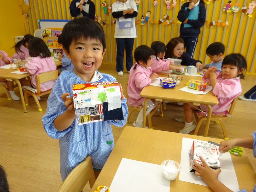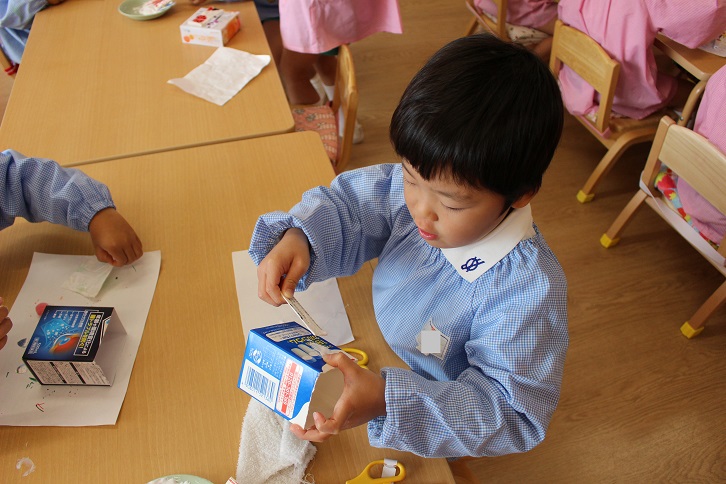 最初はしずか~に製作をしていましたが、次第にニコニコと楽しく、自分で選んだ箱に、