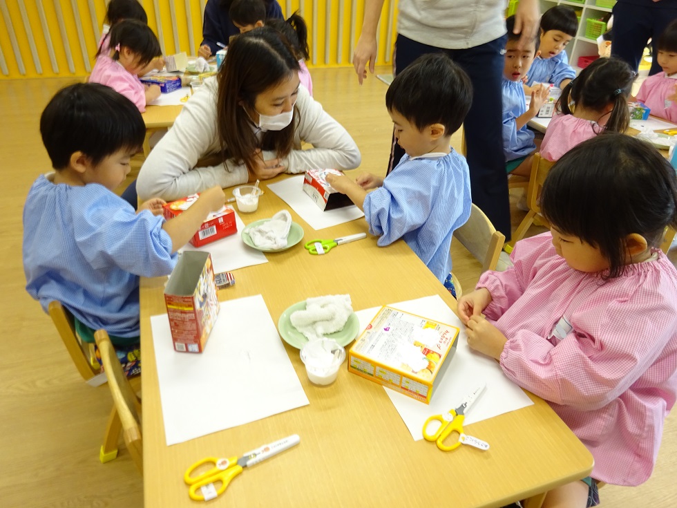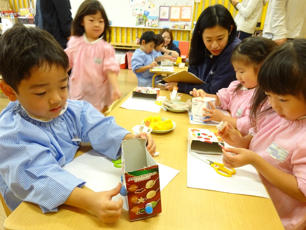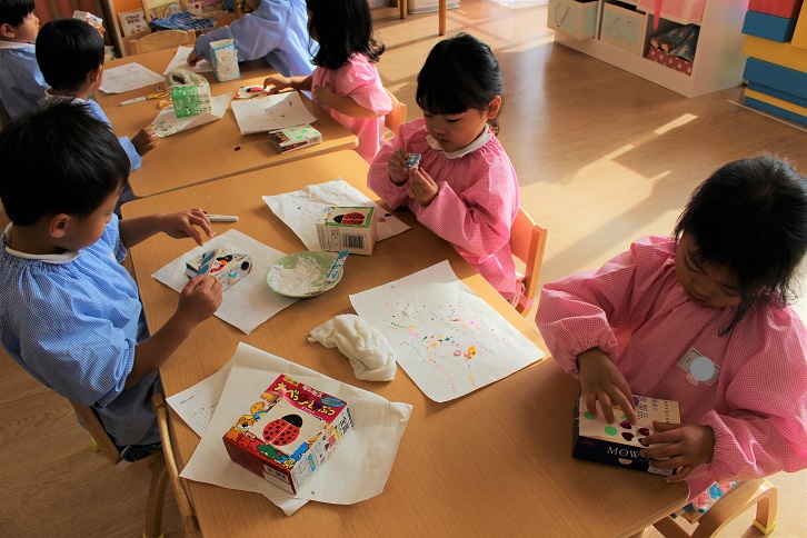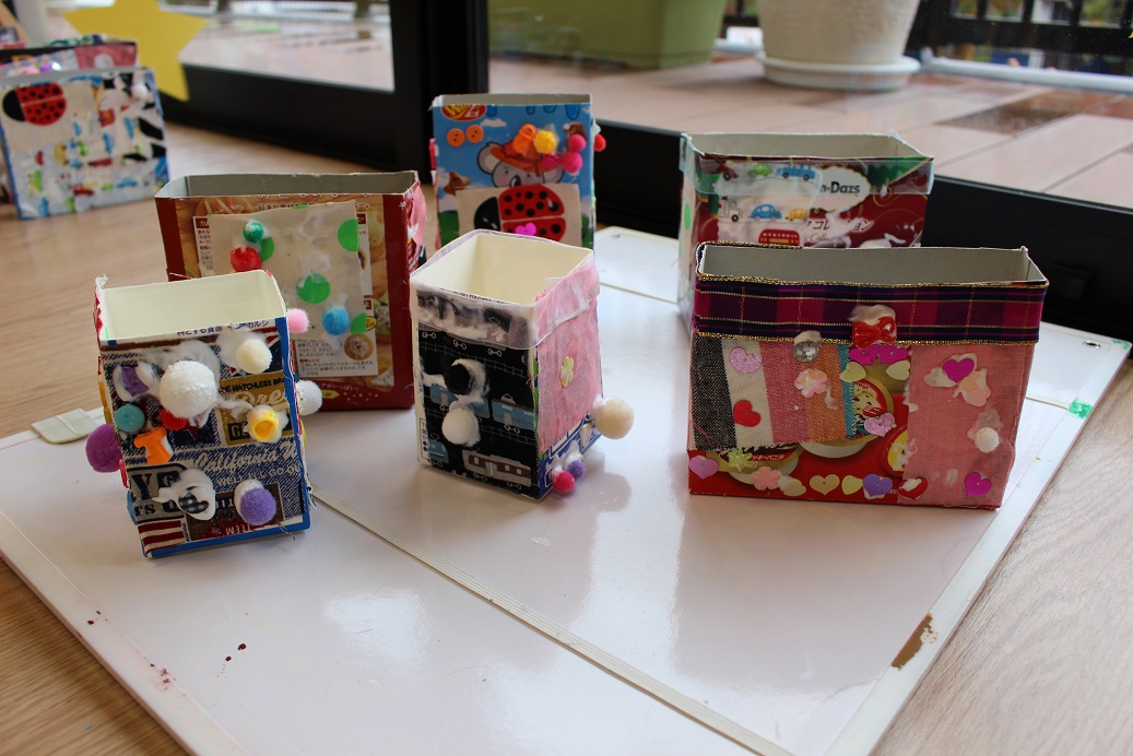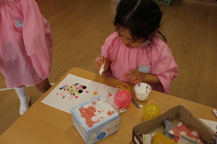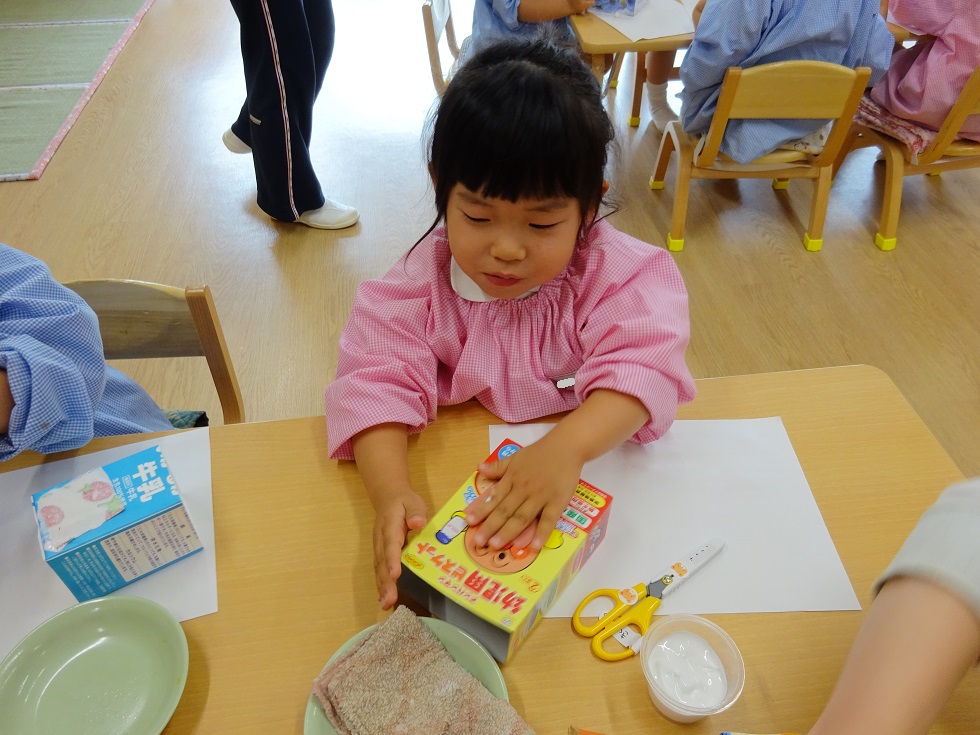 最初はしずか~に製作をしていましたが、次第にニコニコと楽しく、自分で選んだ箱に、