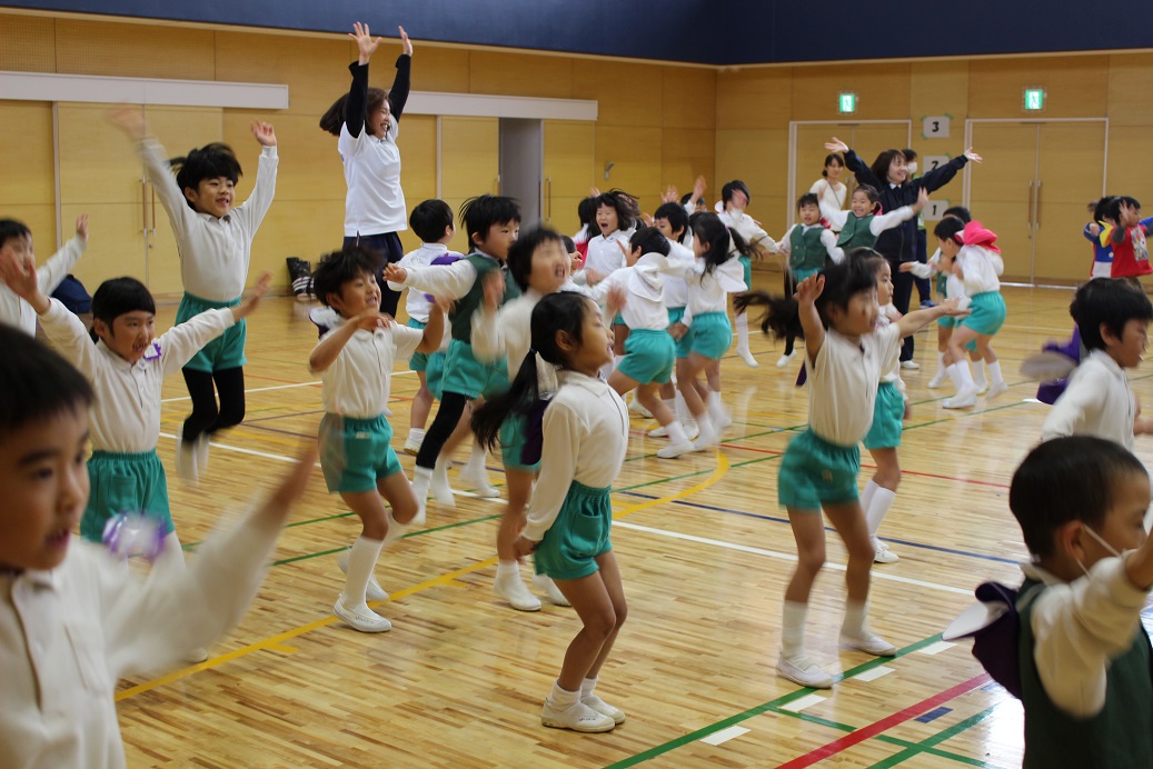 小学校の体育館で1年生のダンスを見たり、一緒に踊ったりしましたよ~