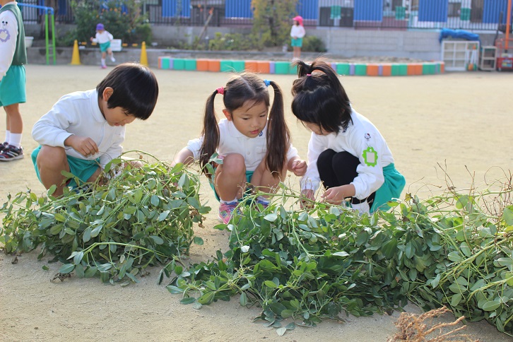 収穫した落花生を枝から取るのを、子どもたちが手伝ってくれました♪
