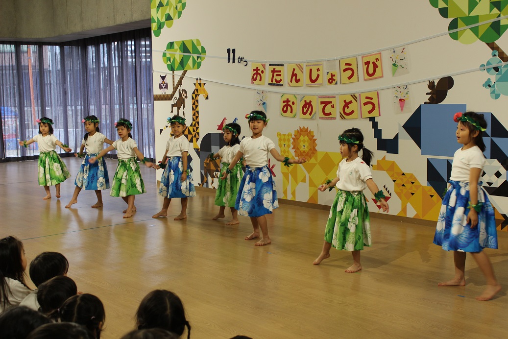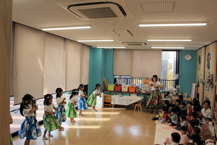 今日のプレゼントは、年長組のアロハチームによる