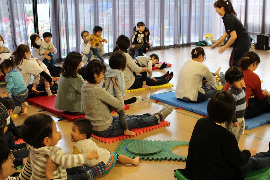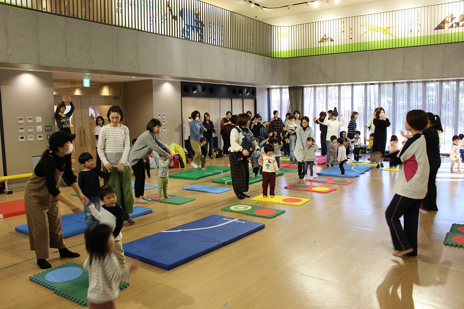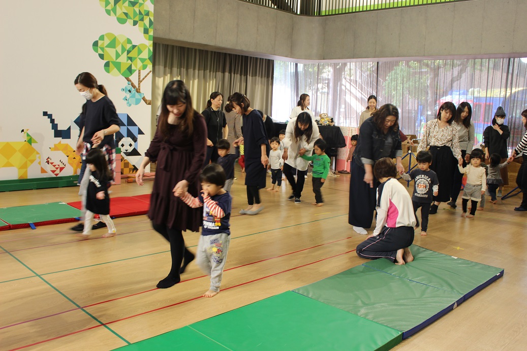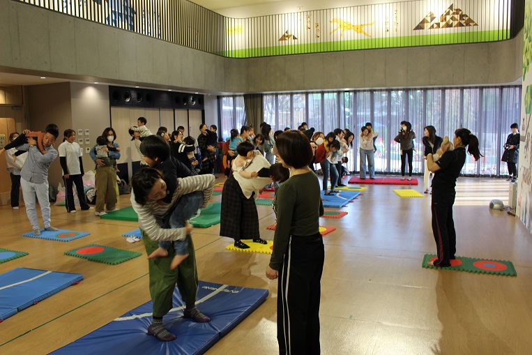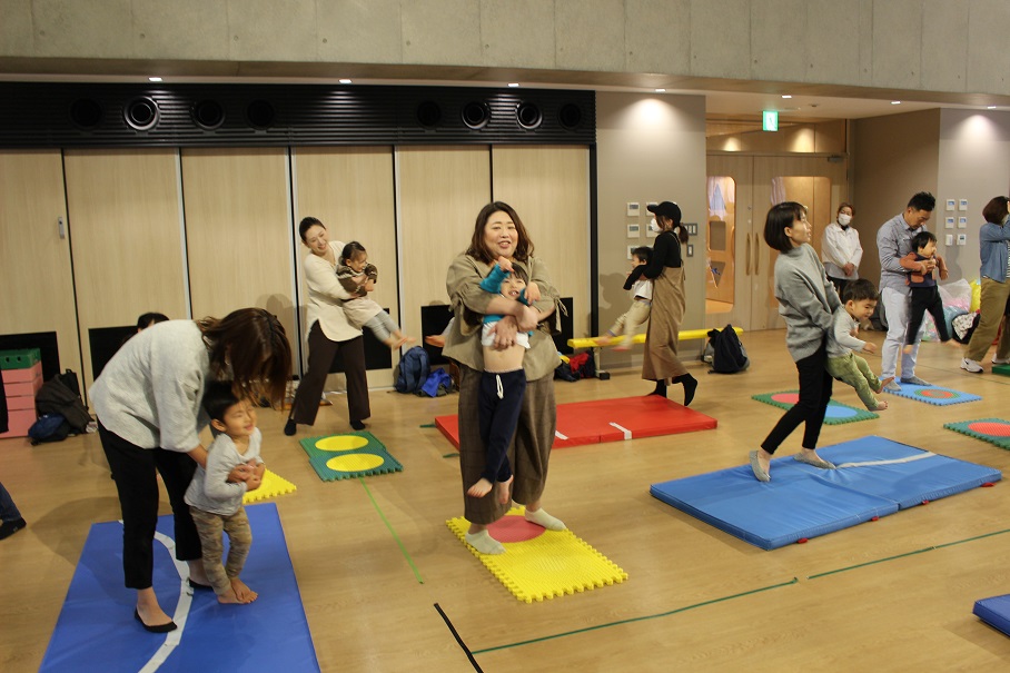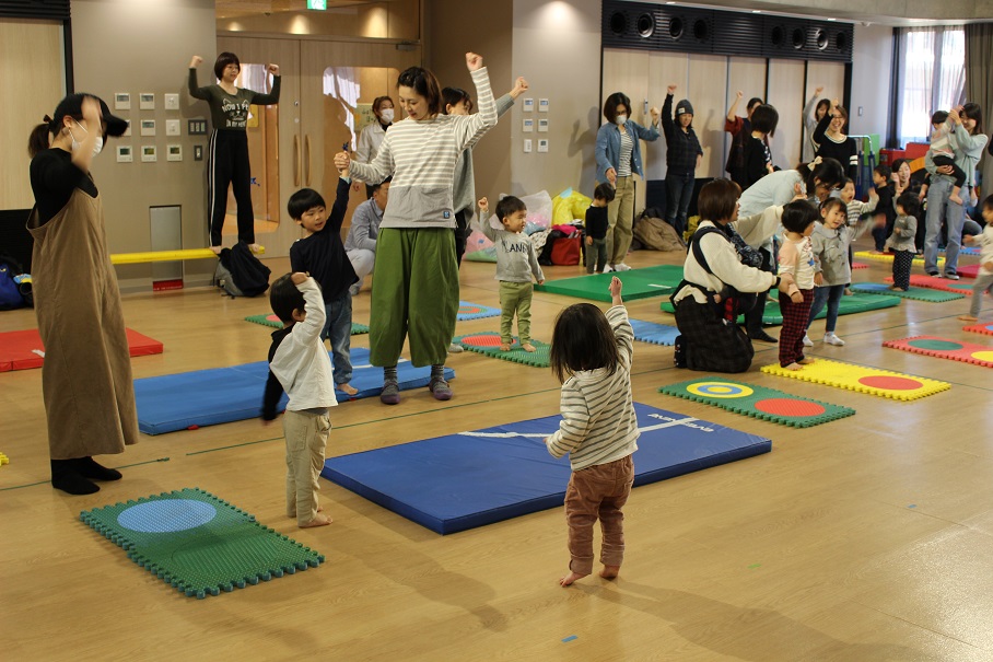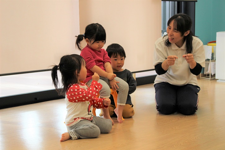 音楽に合わせて踊るお姉さんたちを3号の子どもたちは