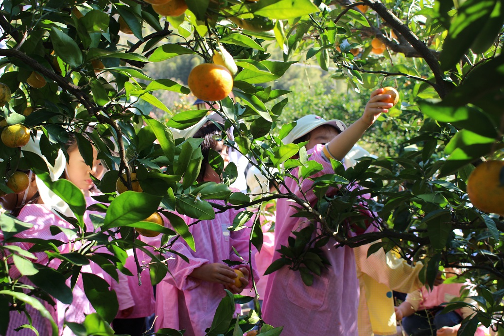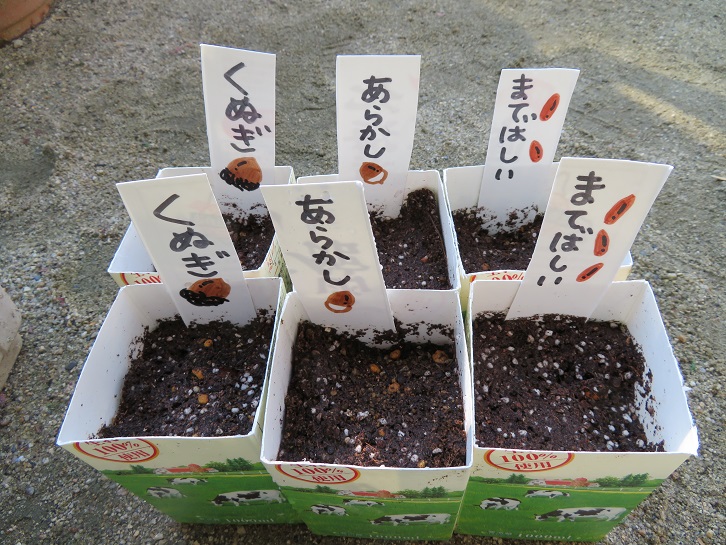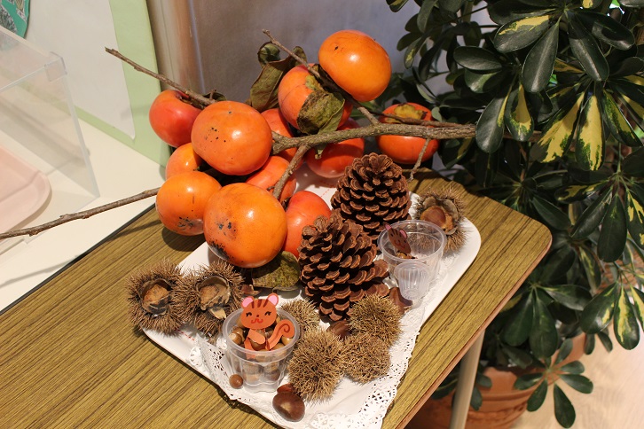 幼稚園の玄関を入ったところに、柿や栗、松ぼっくり