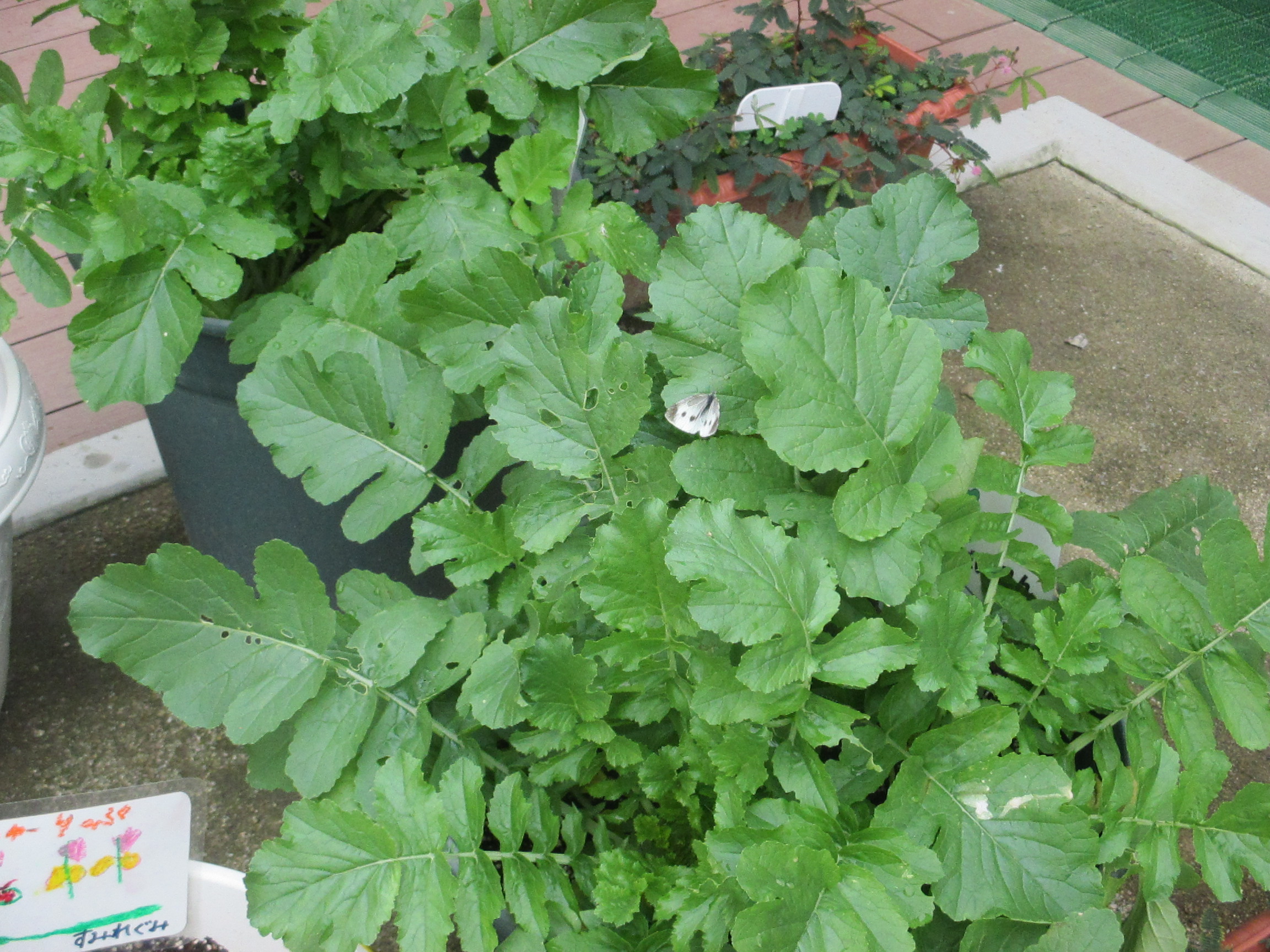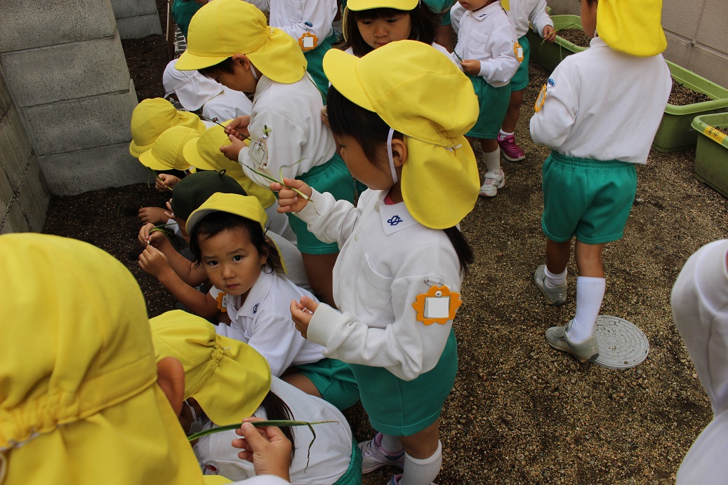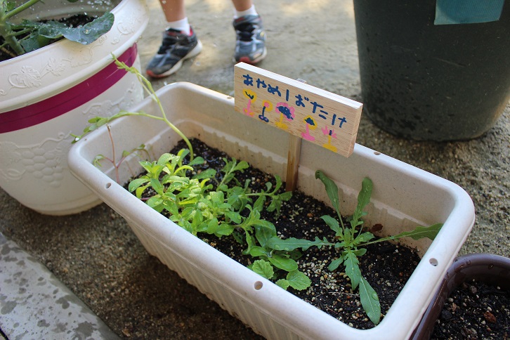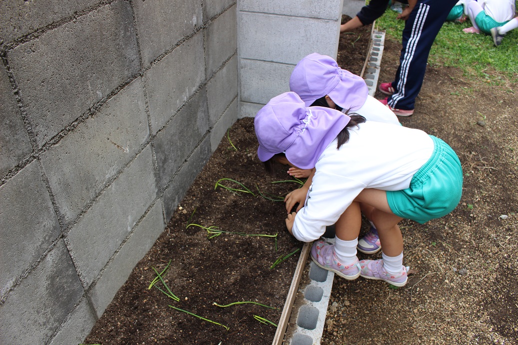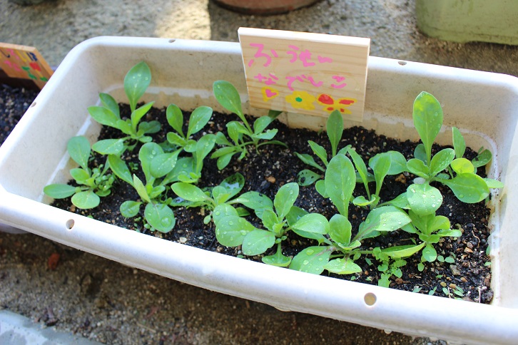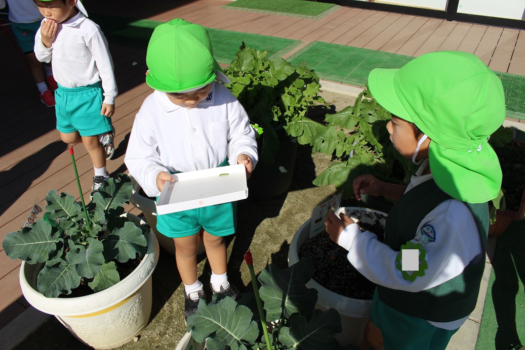 野菜の葉っぱに「あおむしがいてる!」と、虫探しをしていたり、