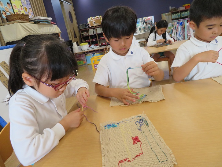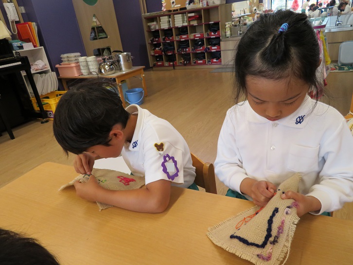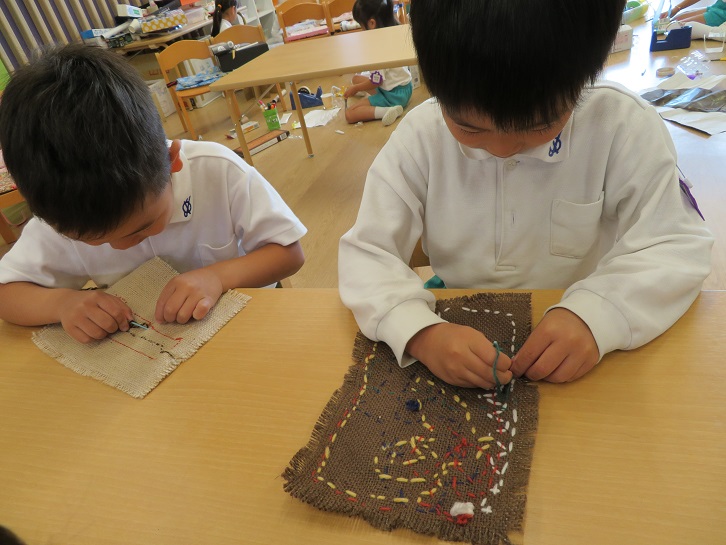 「たんぽぽ組かばん作り・年長組小学校交流会」
