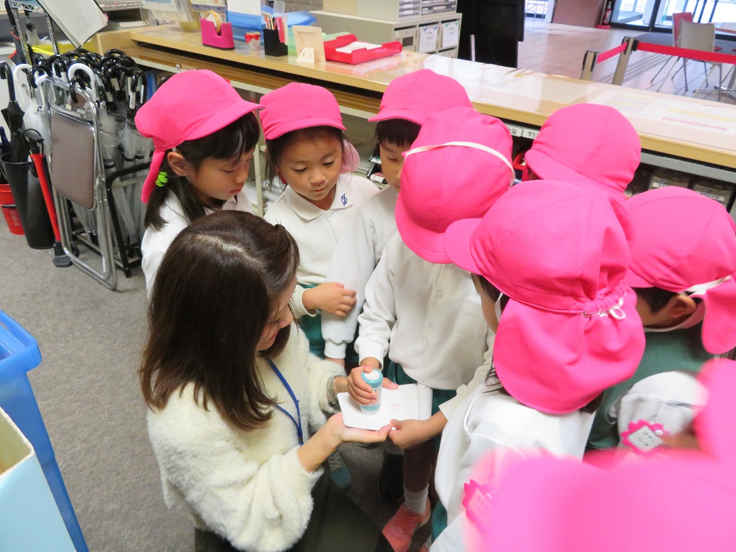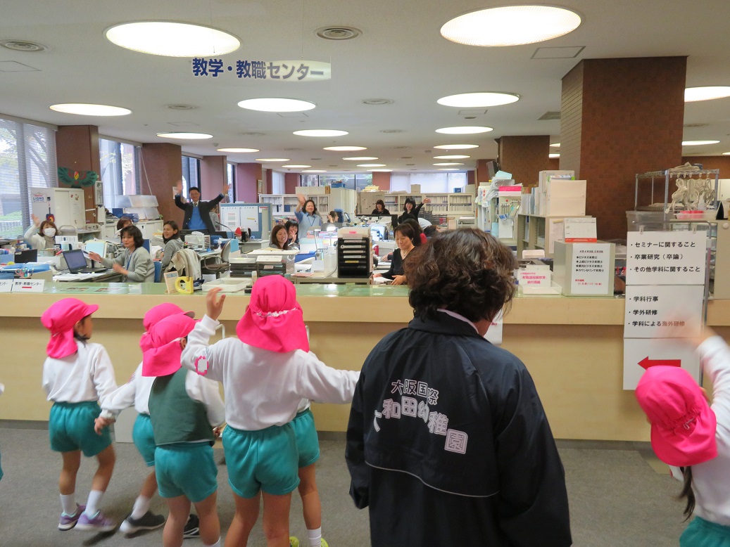 うめ組の子どもたちは、6号館(図書館などがある建物)の1階と、図書館に行ってきました!