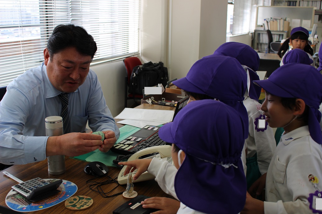 「このハンコは大学のグラウンドを借りるときに押す大切なハンコです。このハンコがないと、みんなはあそこ(グラウンド)で運動会ができないんだよ~」 と教えてくださいました!