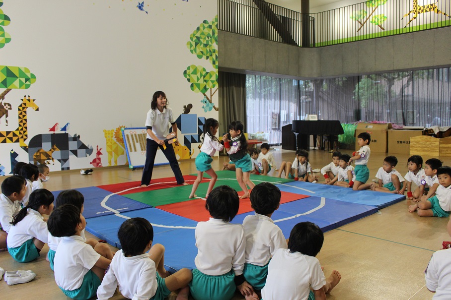ひまわり組は、大縄跳びに挑戦しました。