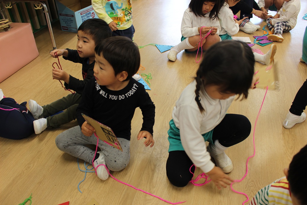 ↓少し前に「先生!あやとび教えて!!」とやってきた年長組さん。