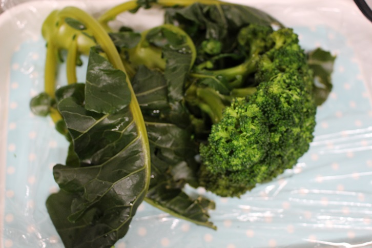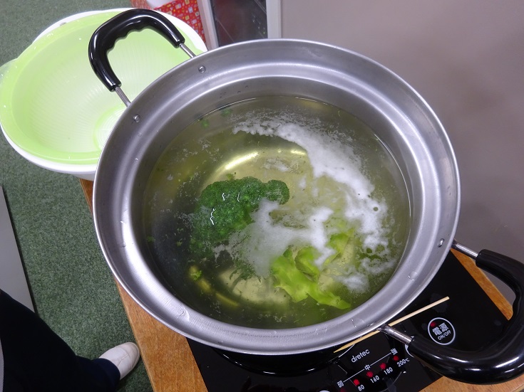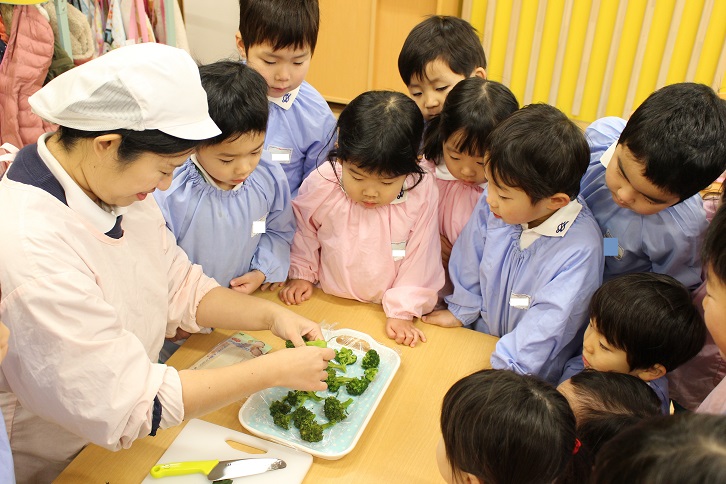 そして茹でたブロッコリーを先生に小さく切ってもらい、茎も葉っぱも