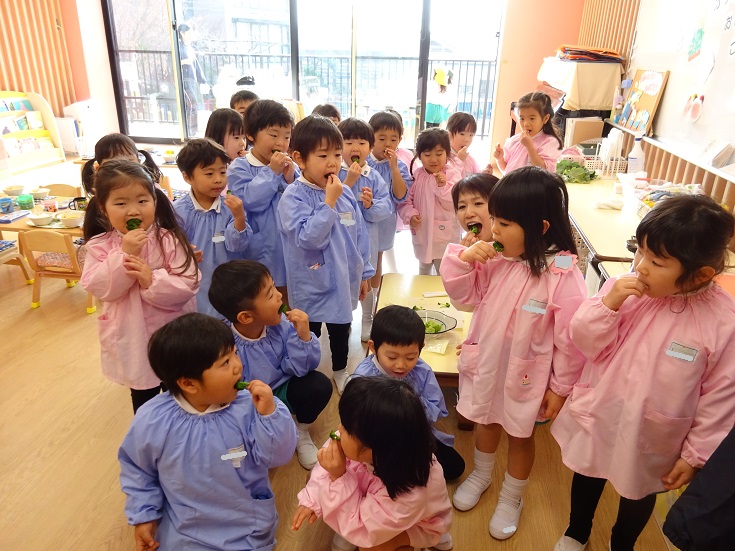 「おいしい~」「葉っぱは少し苦~い」いろんな声が聞こえてきました(^^)