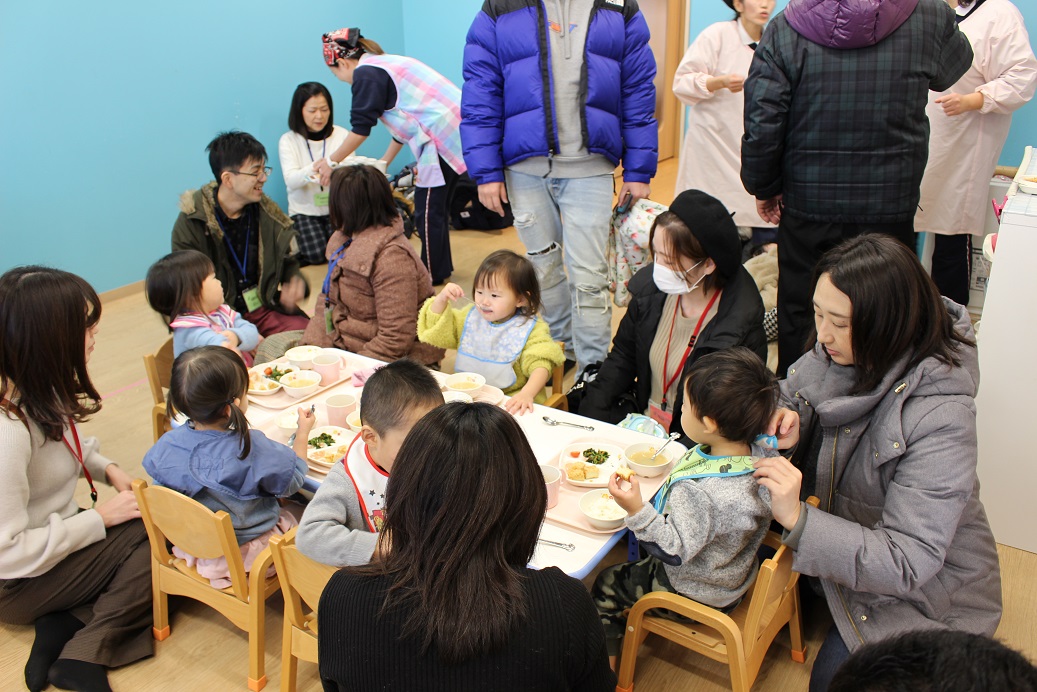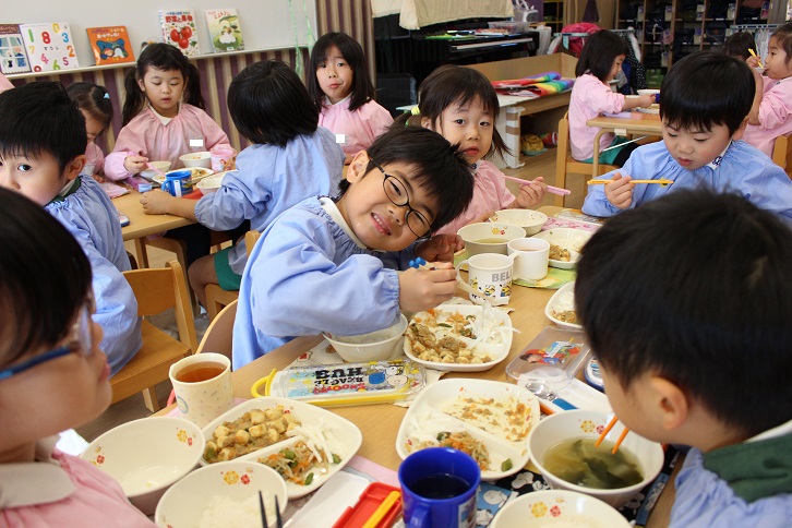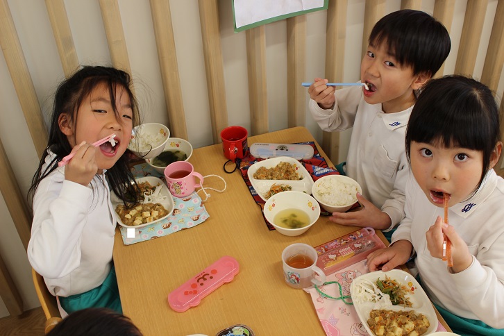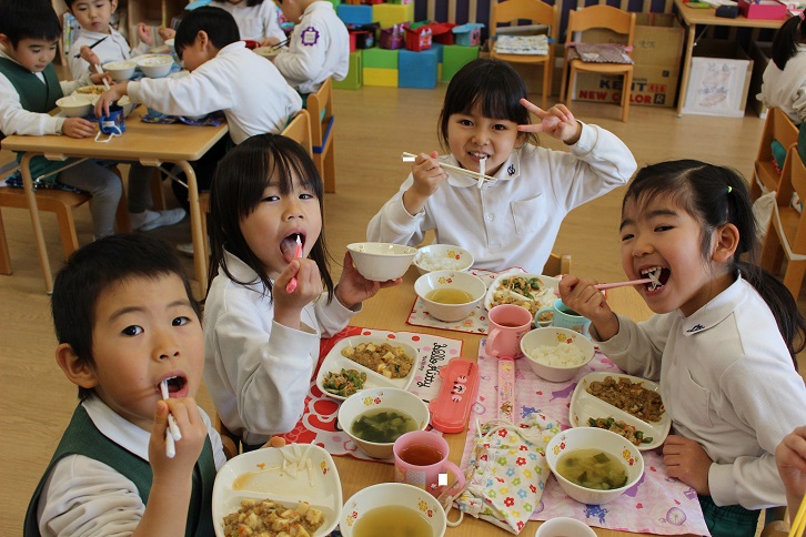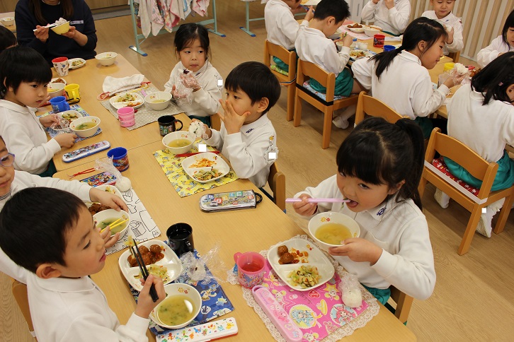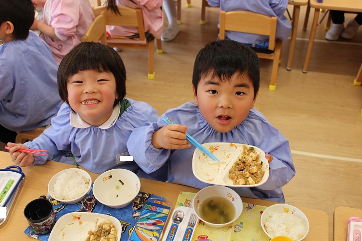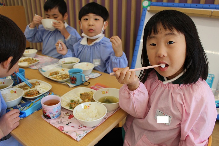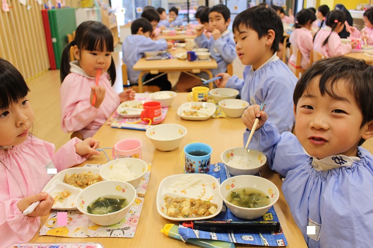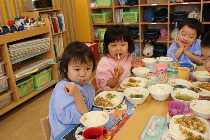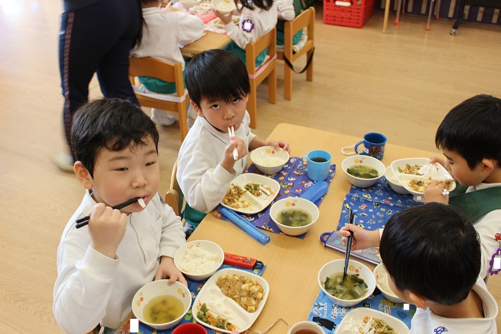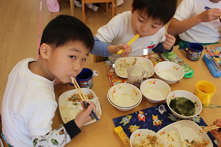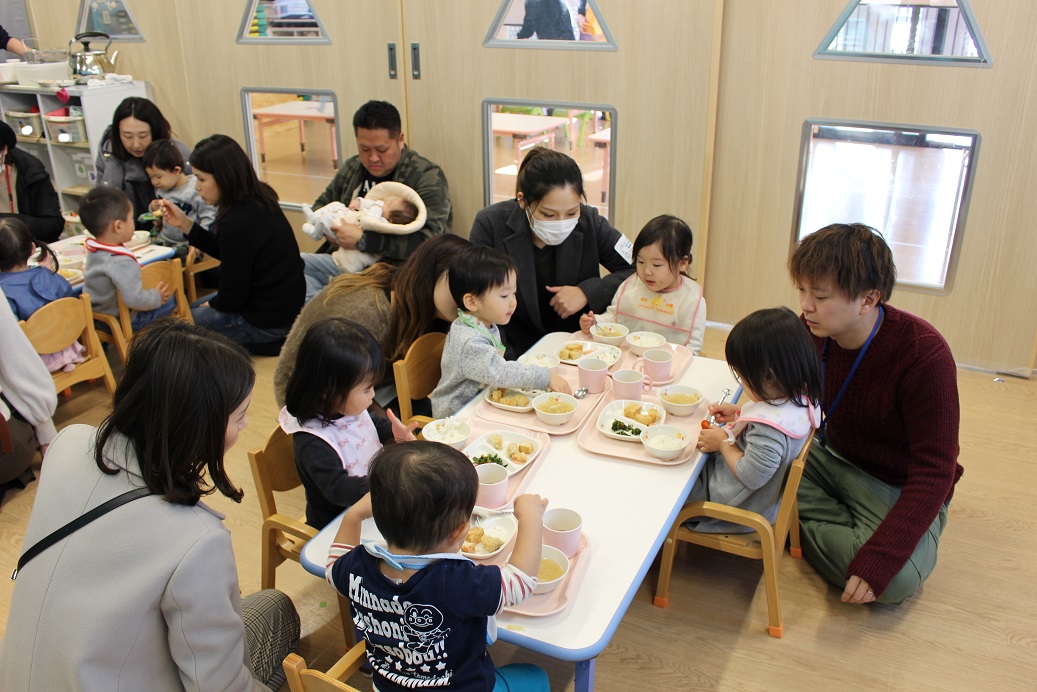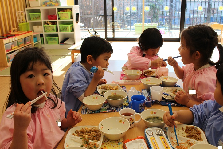 給食もお父さんやお母さんに食べさせてもらい嬉しそうな