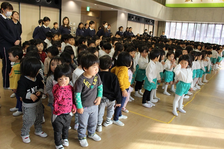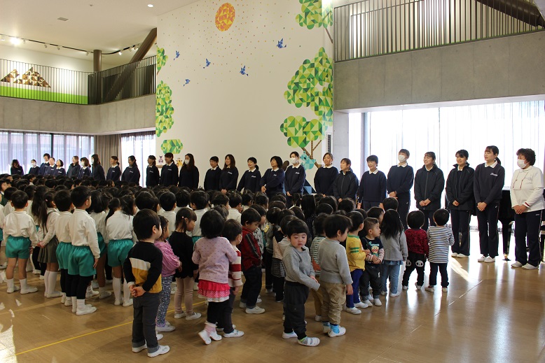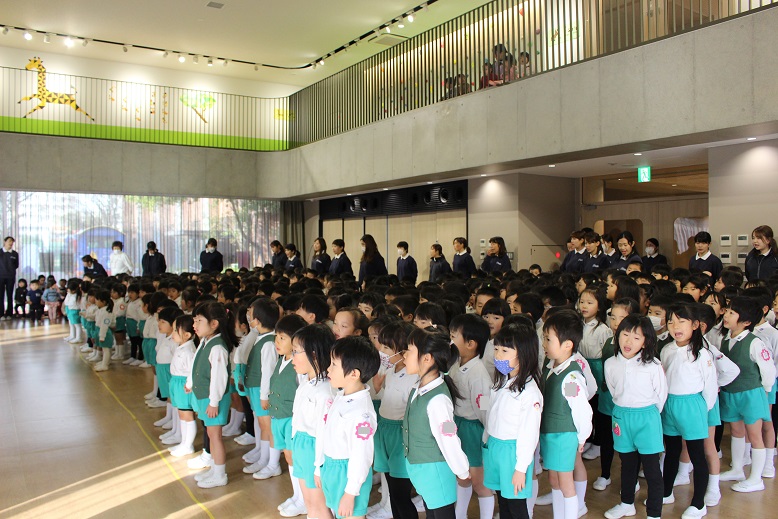 ↓始業式では先生たちが前に並び、子ども達と一緒に新年の挨拶をしました。