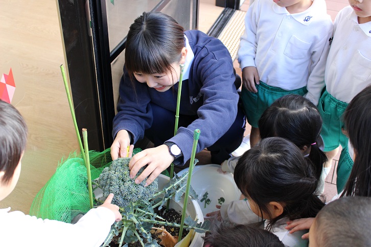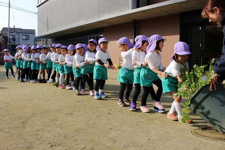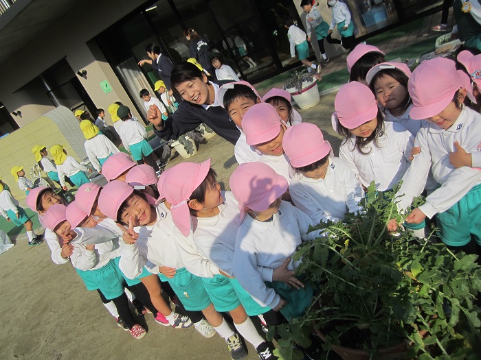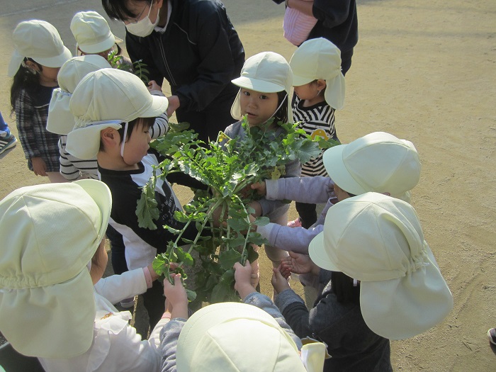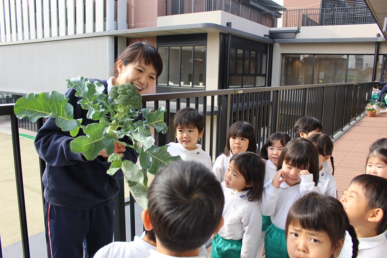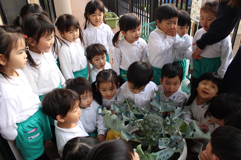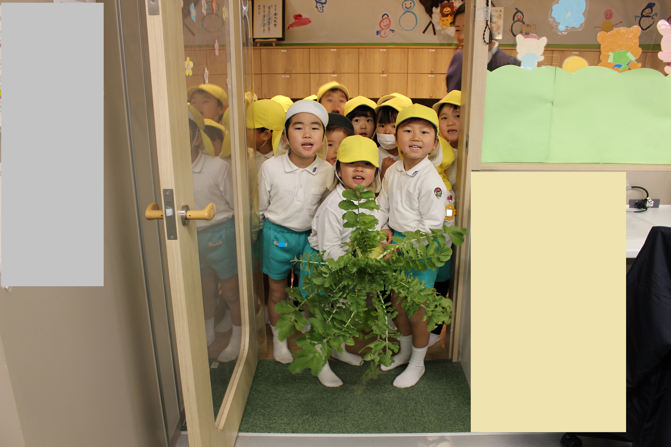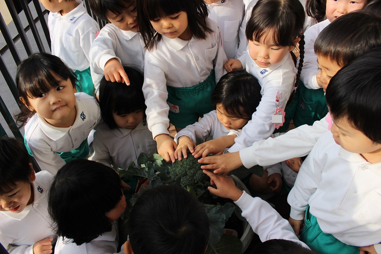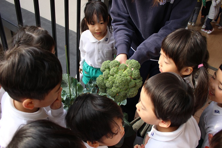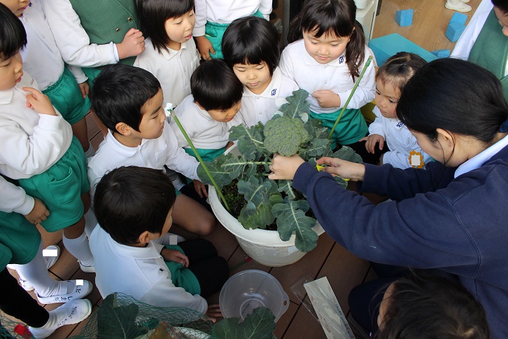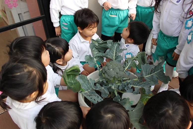 さくら・たんぽぽ・あじさい・ひよこ組さんが各クラスで育てたブロッコリーを収穫しました!