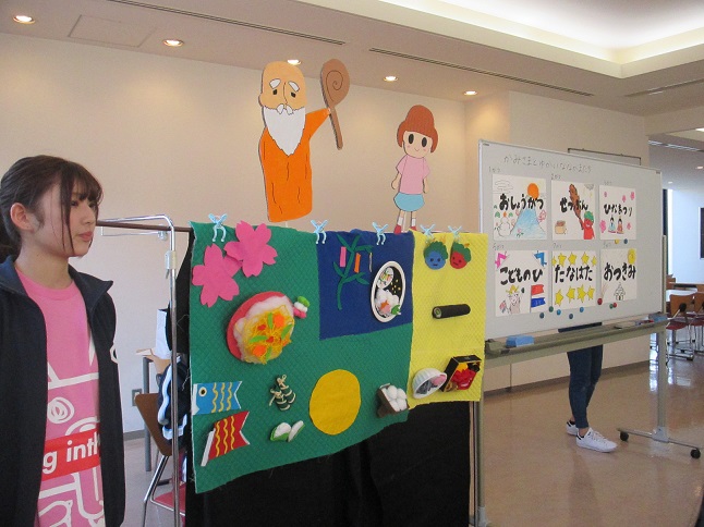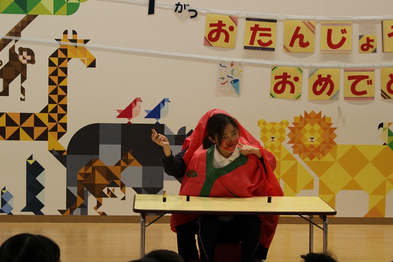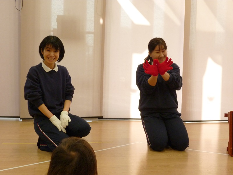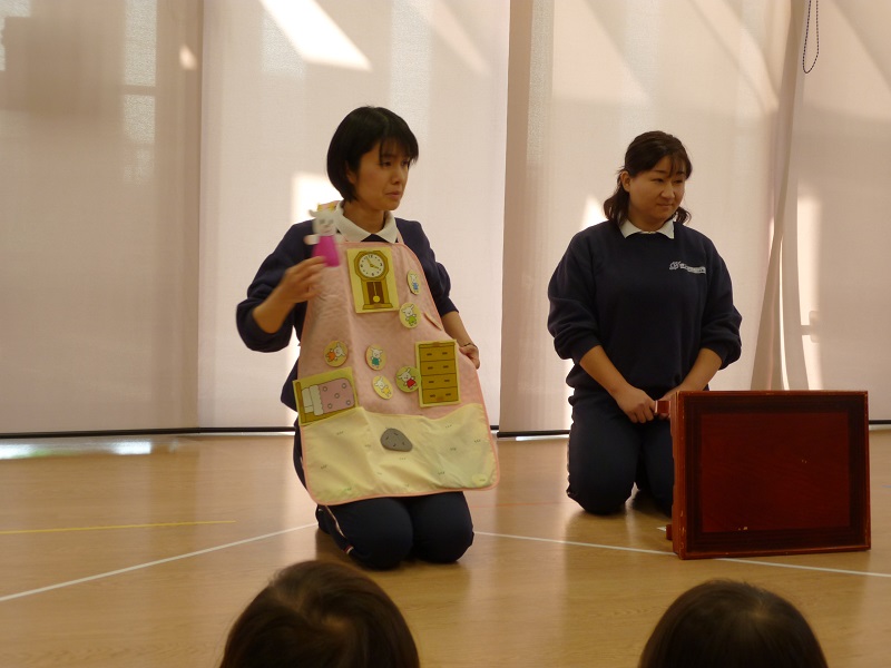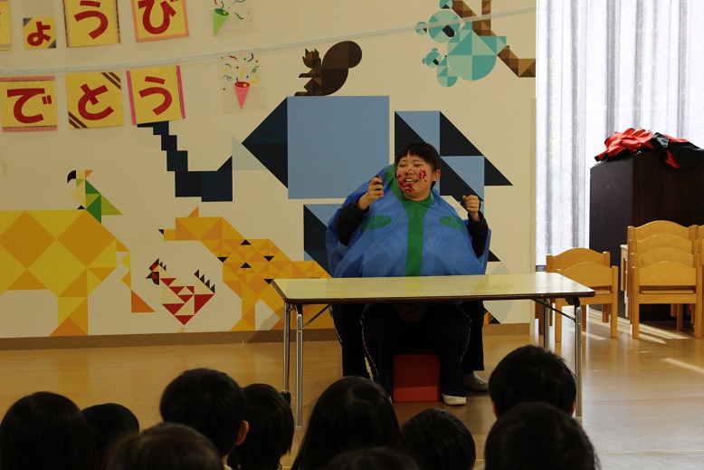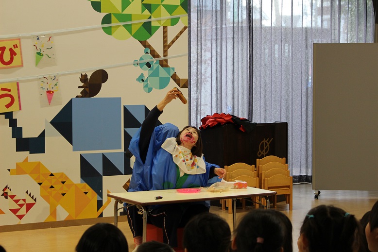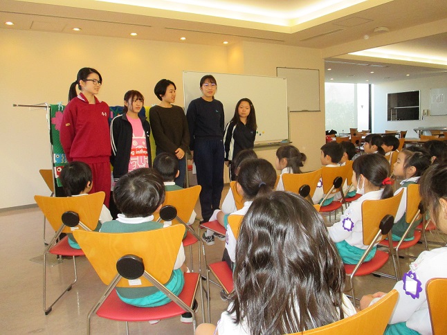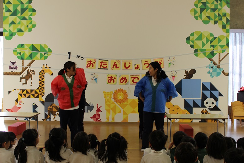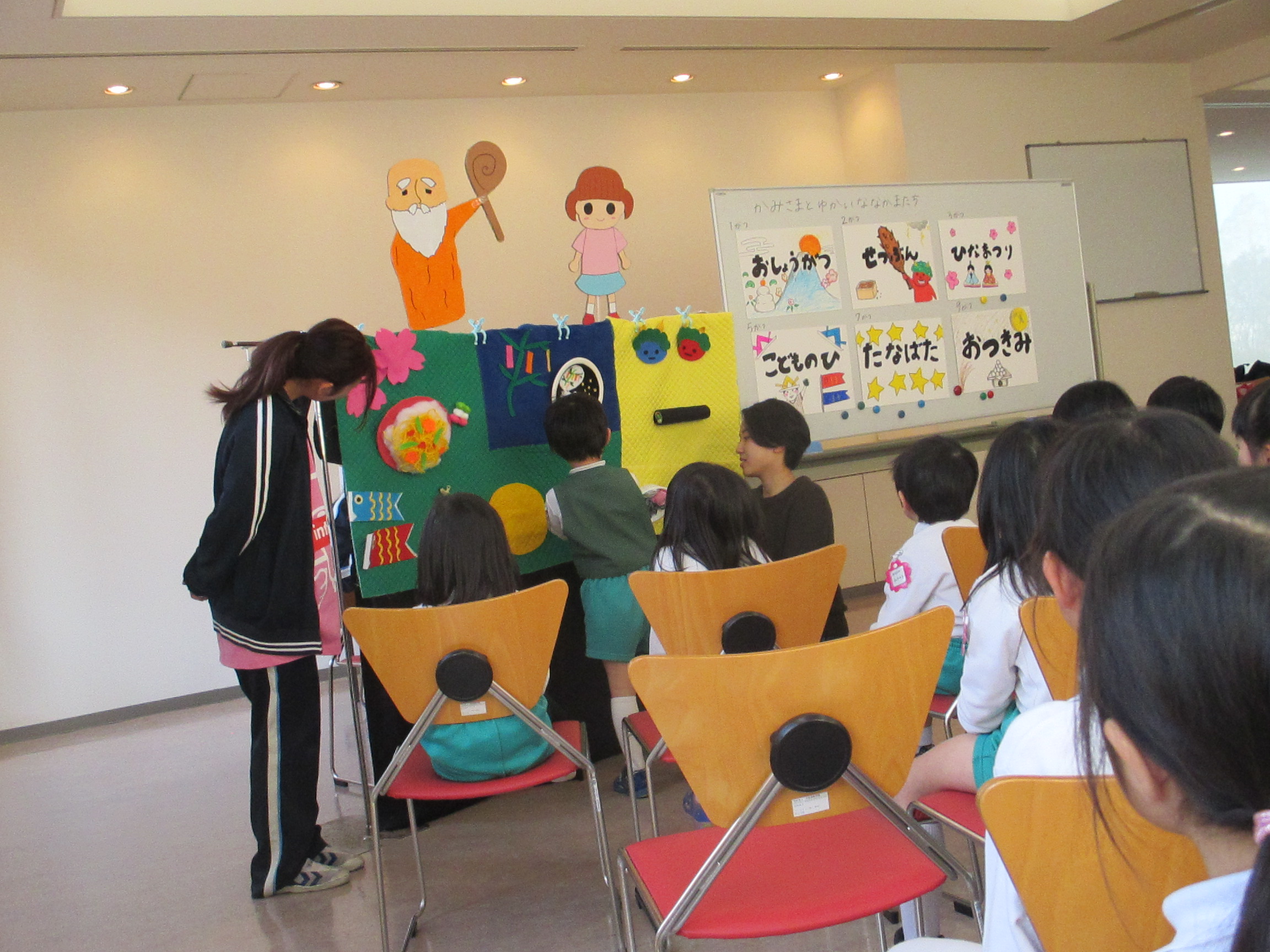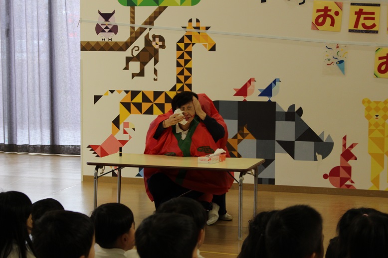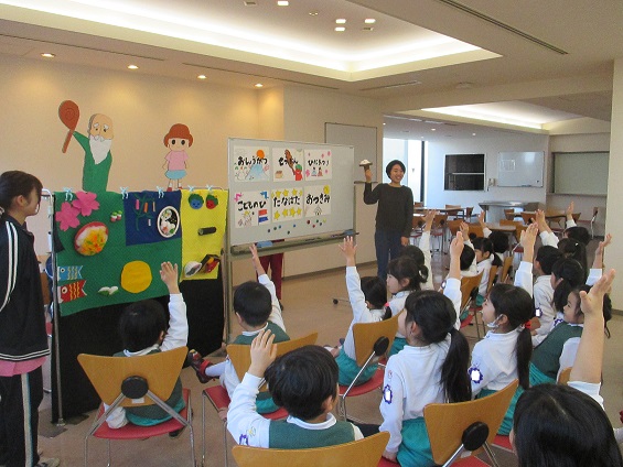 この日は、ひよこ組さんとぱんだ組さんと一緒に大型絵本の読み聞かせや