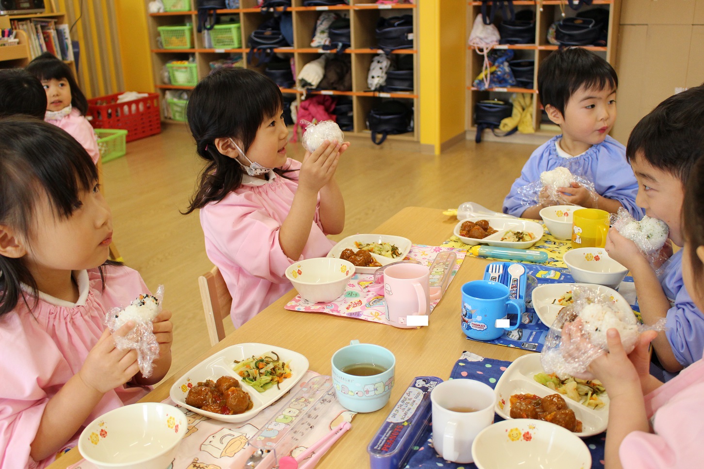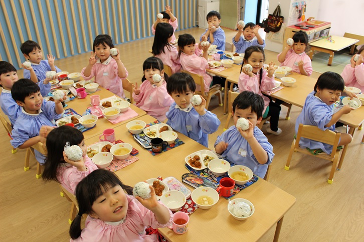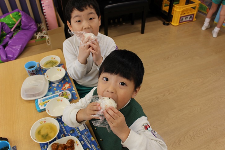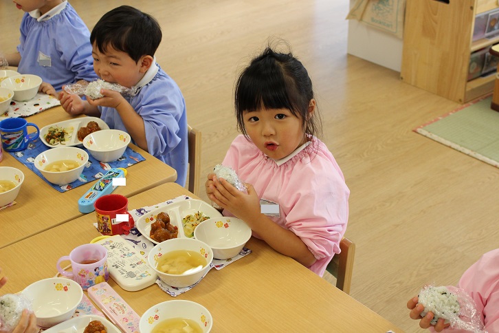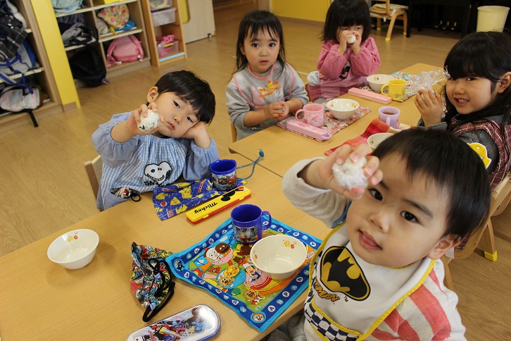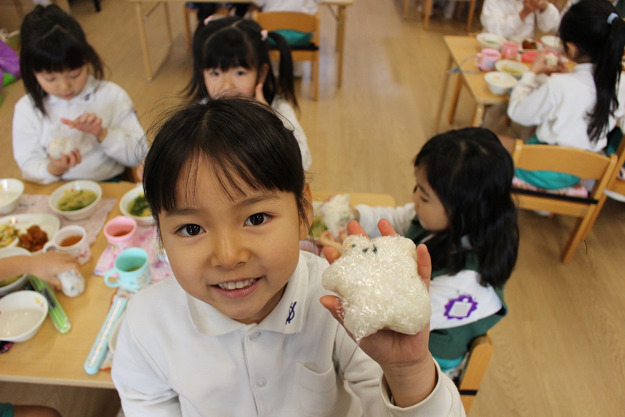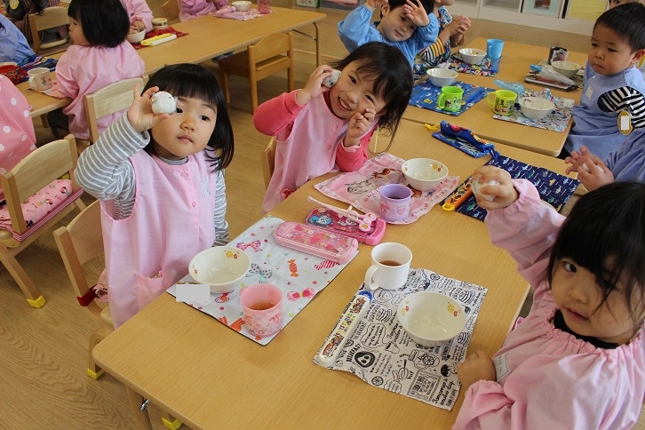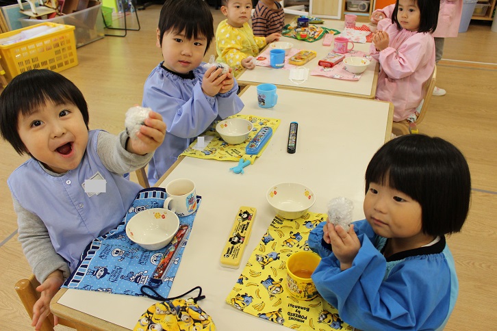 ちゅうりっぷ、さくら組さんは、おむすびを作っておいしくいただきました!