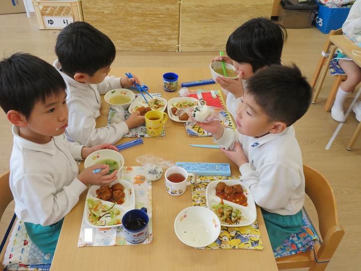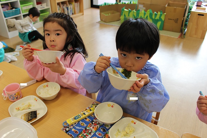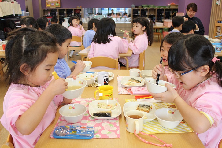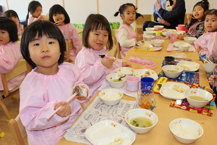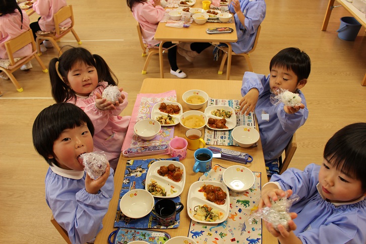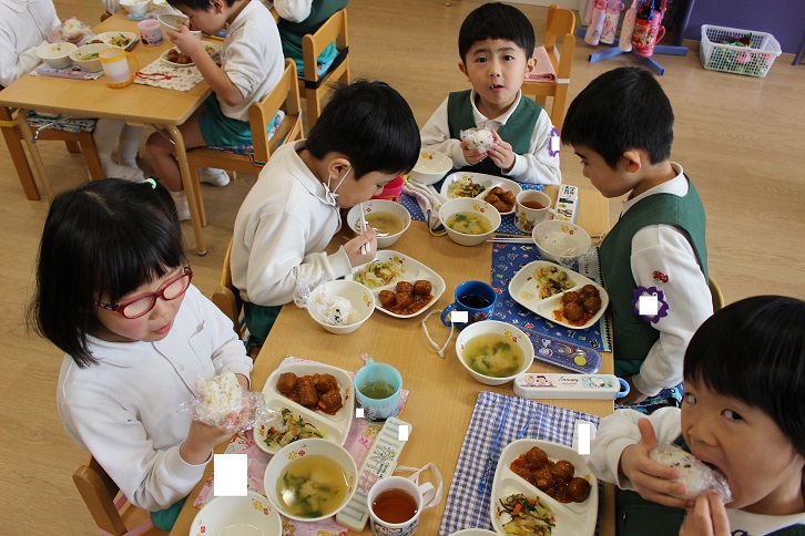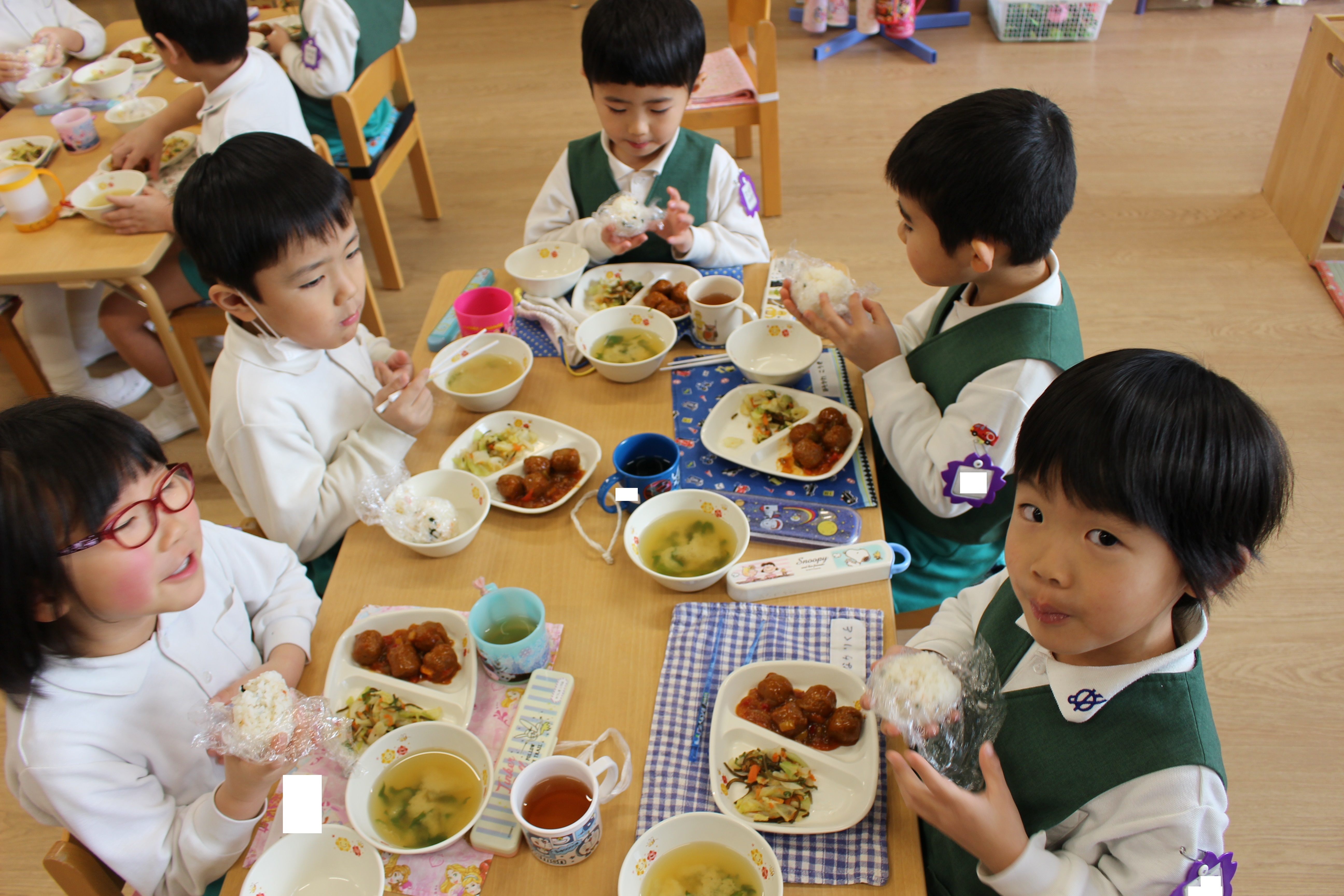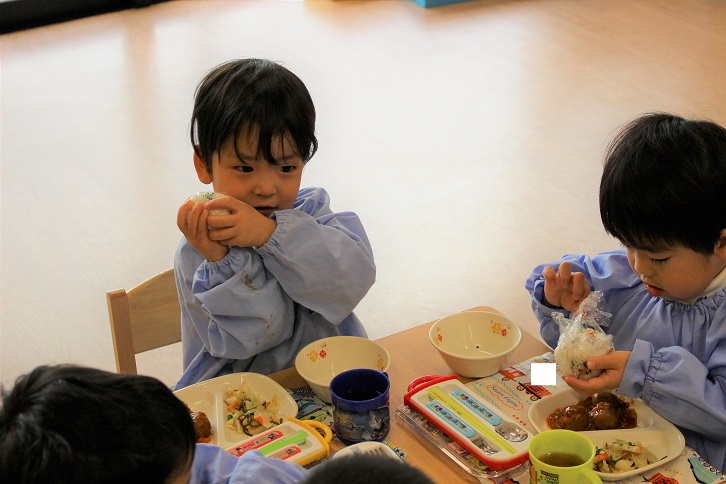 ちゅうりっぷ、さくら組さんは、おむすびを作っておいしくいただきました!