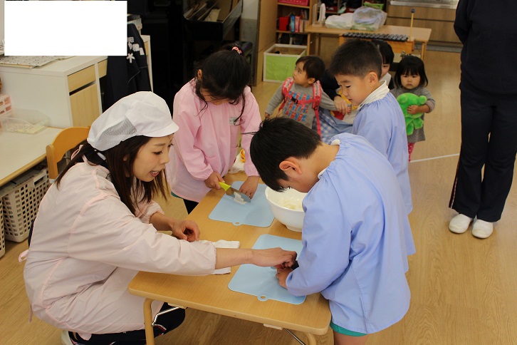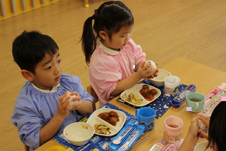 【年少組、ひよこ組、ぱんだ組 おむすび作り】