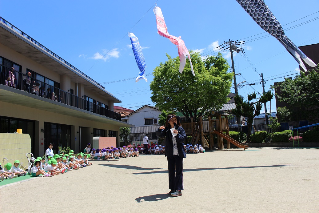 5月5日はゴールデンウィークでお休みだったため、今日こどもの日の集会をしました。