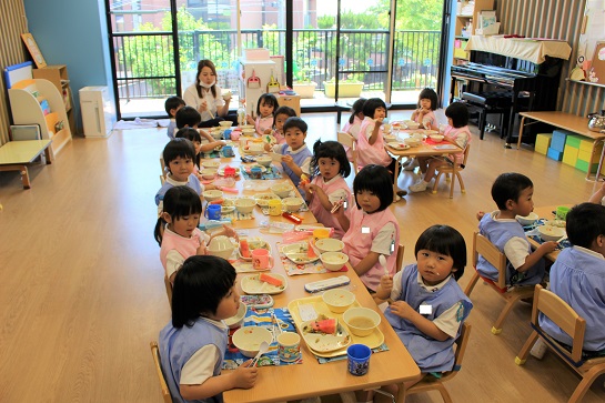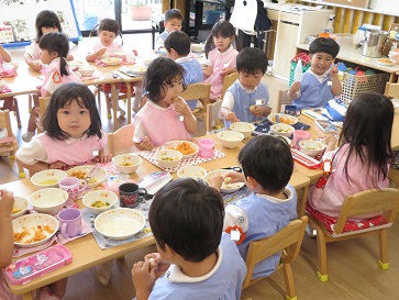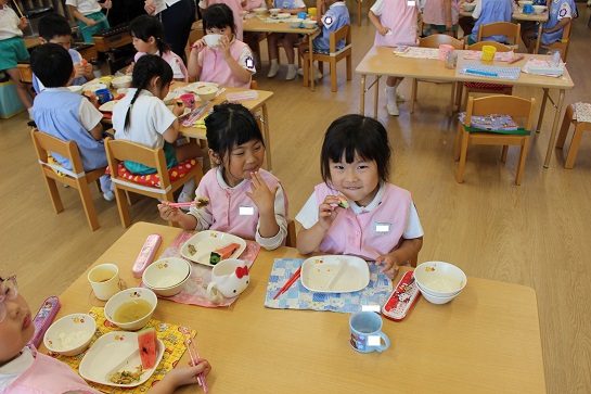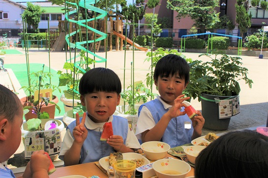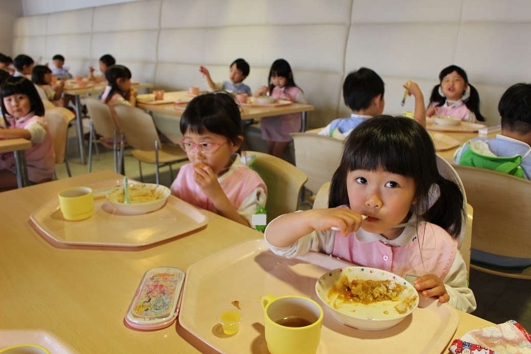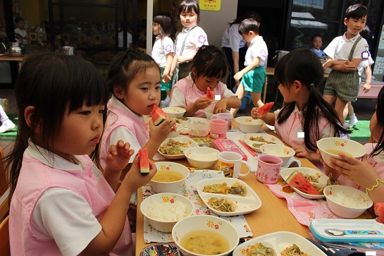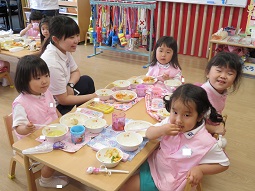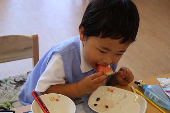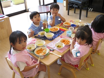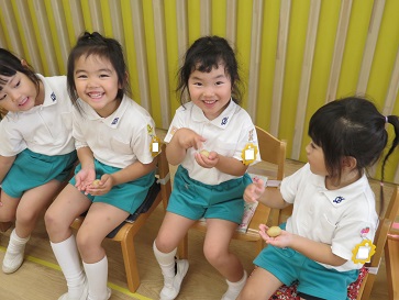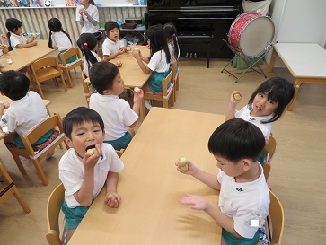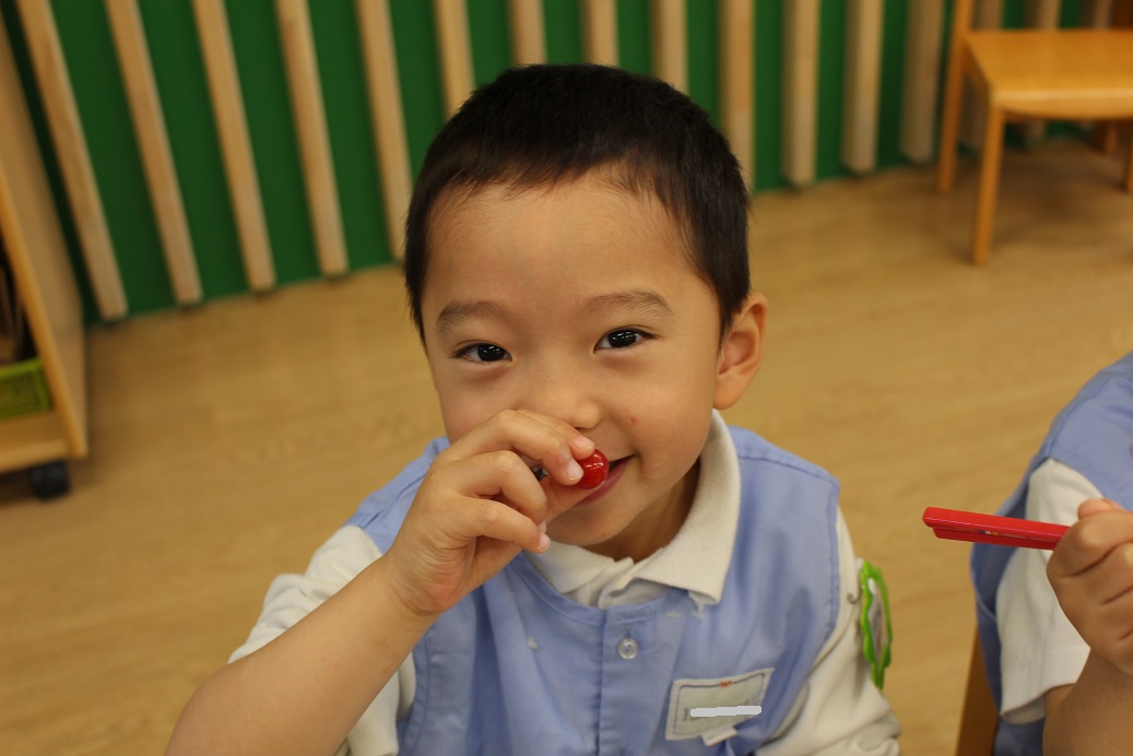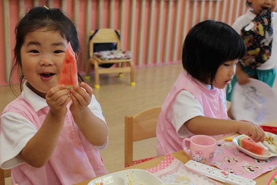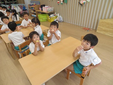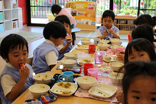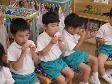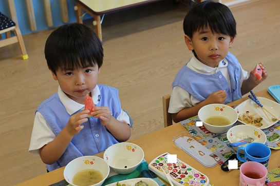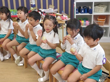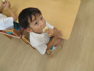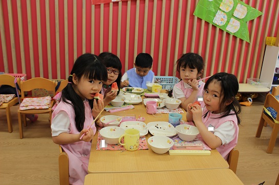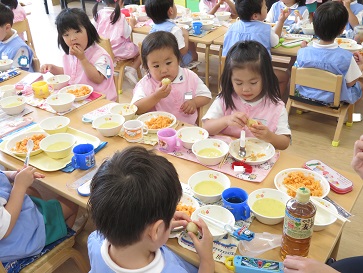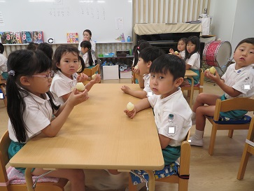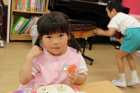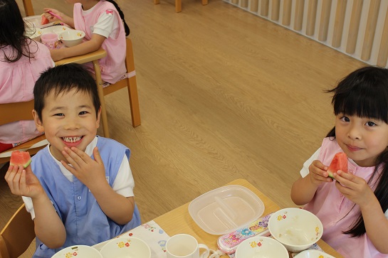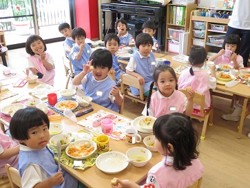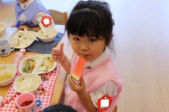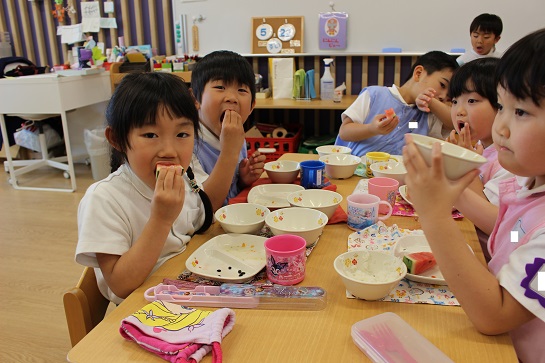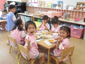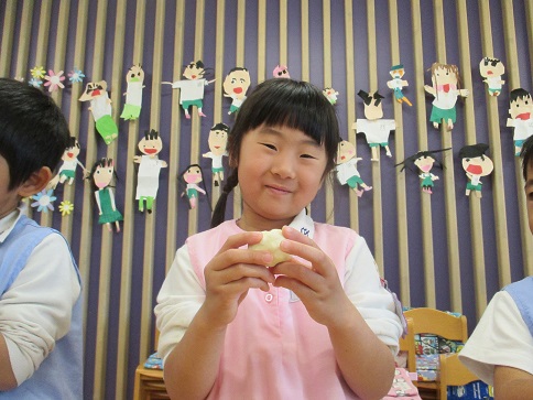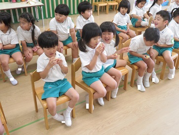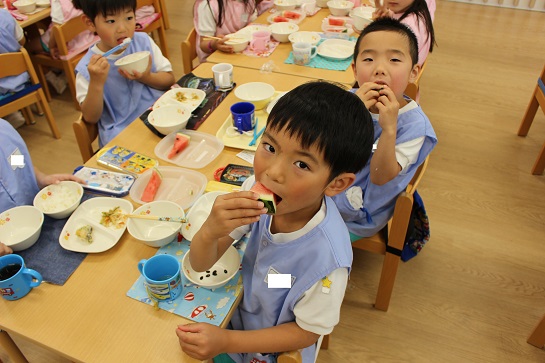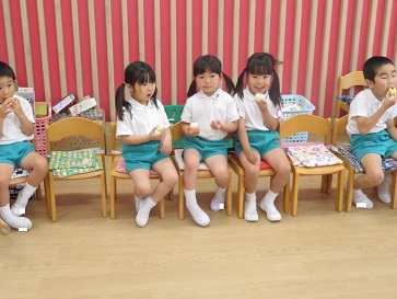 年少組・年中組・年長組の子どもたちは、給食のときに食べました♪