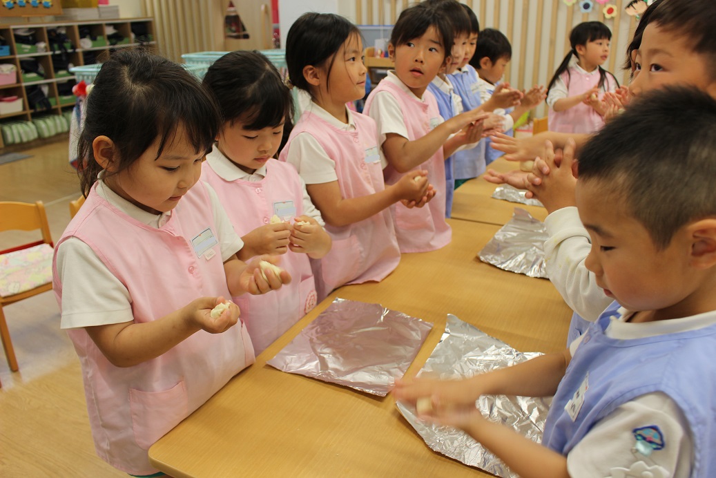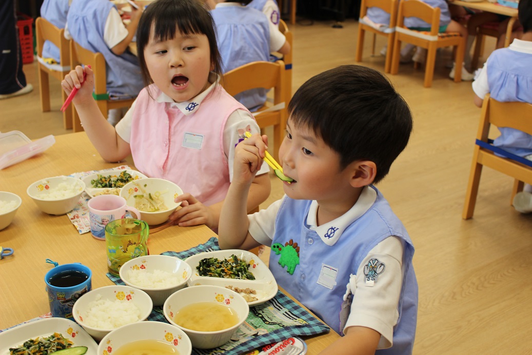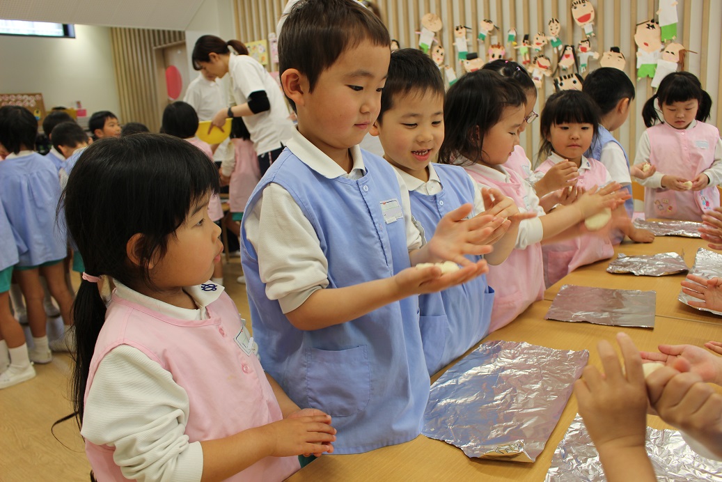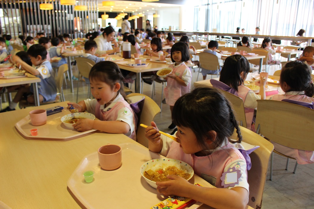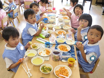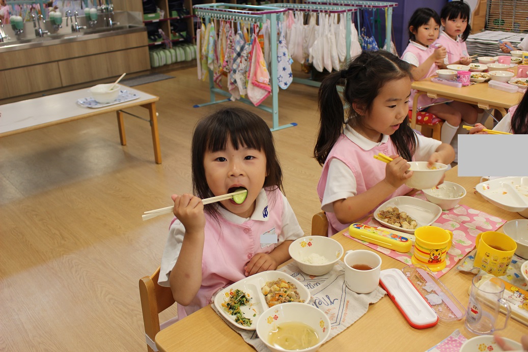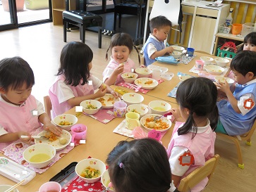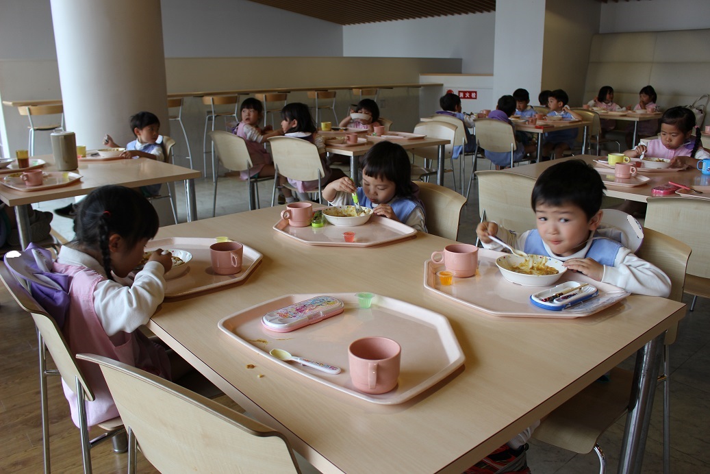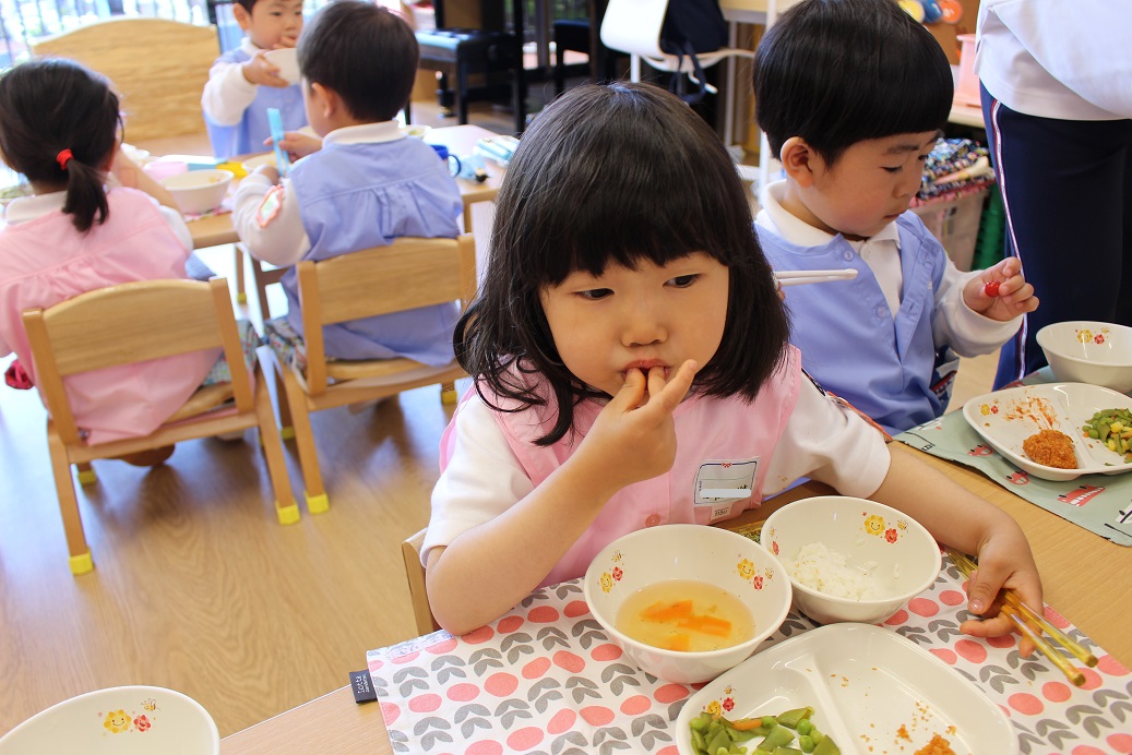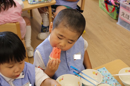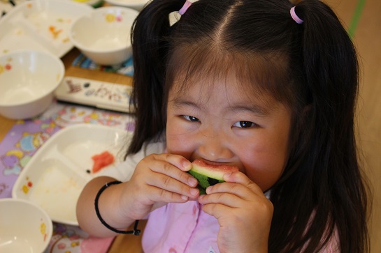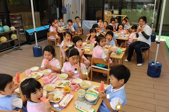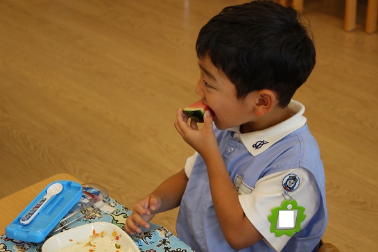年少組・年中組・年長組の子どもたちは、給食のときに食べました♪