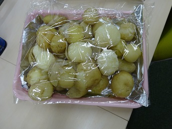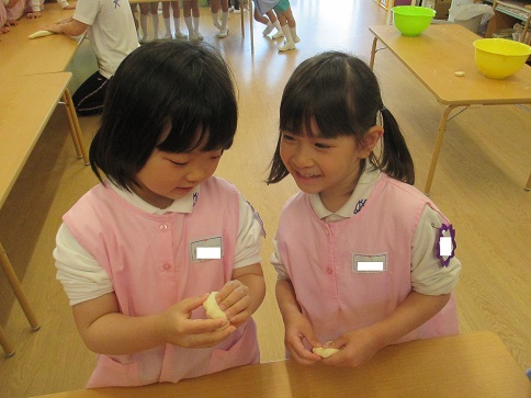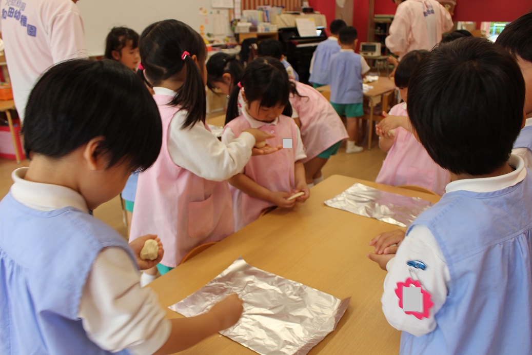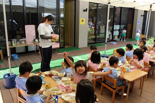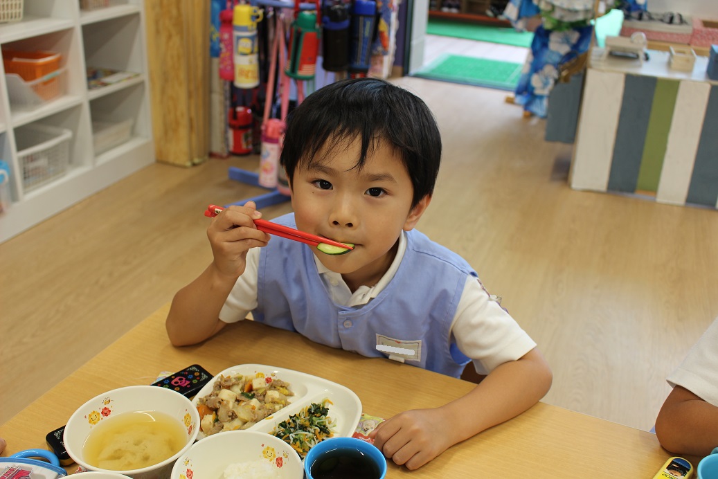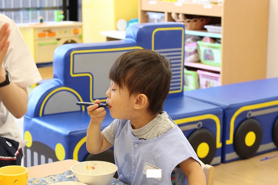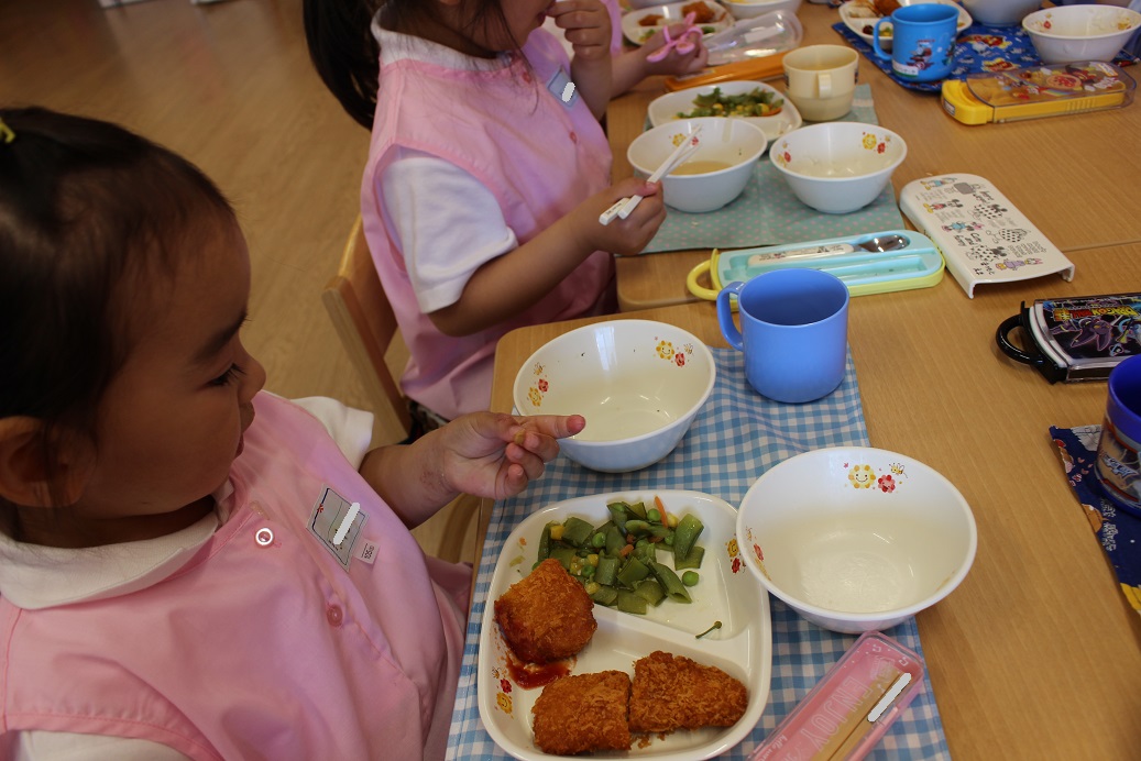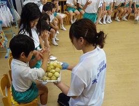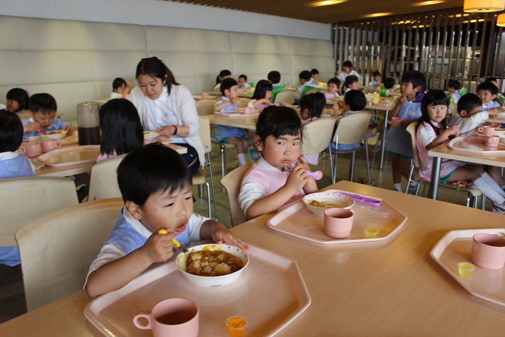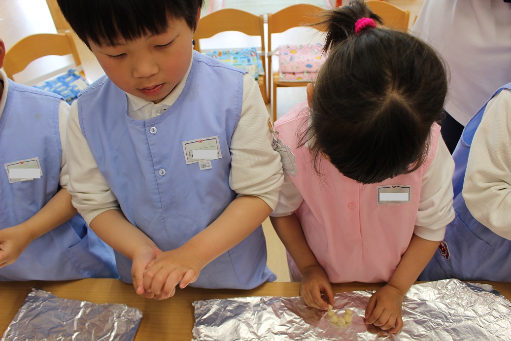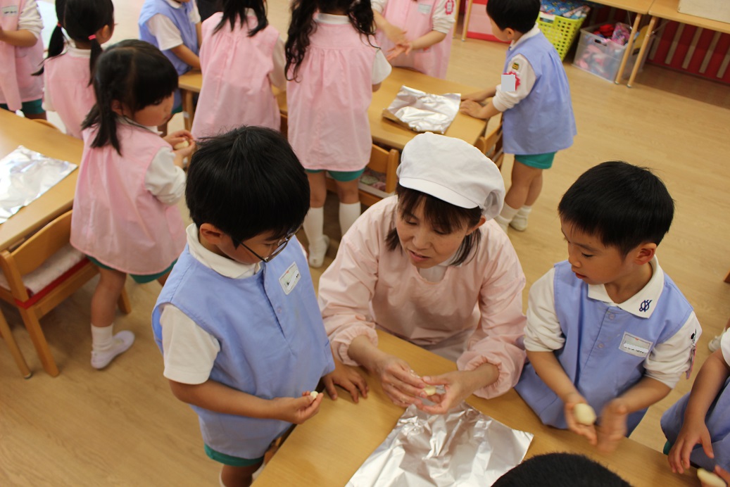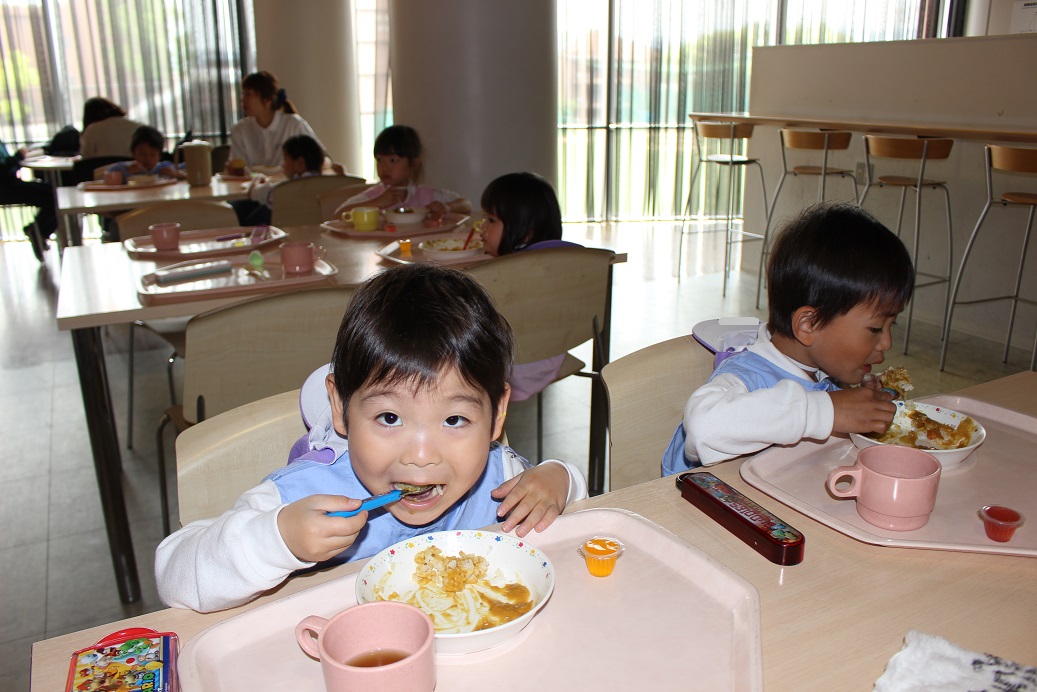 年少組・年中組・年長組の子どもたちは、給食のときに食べました♪