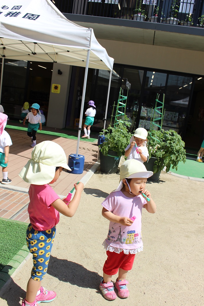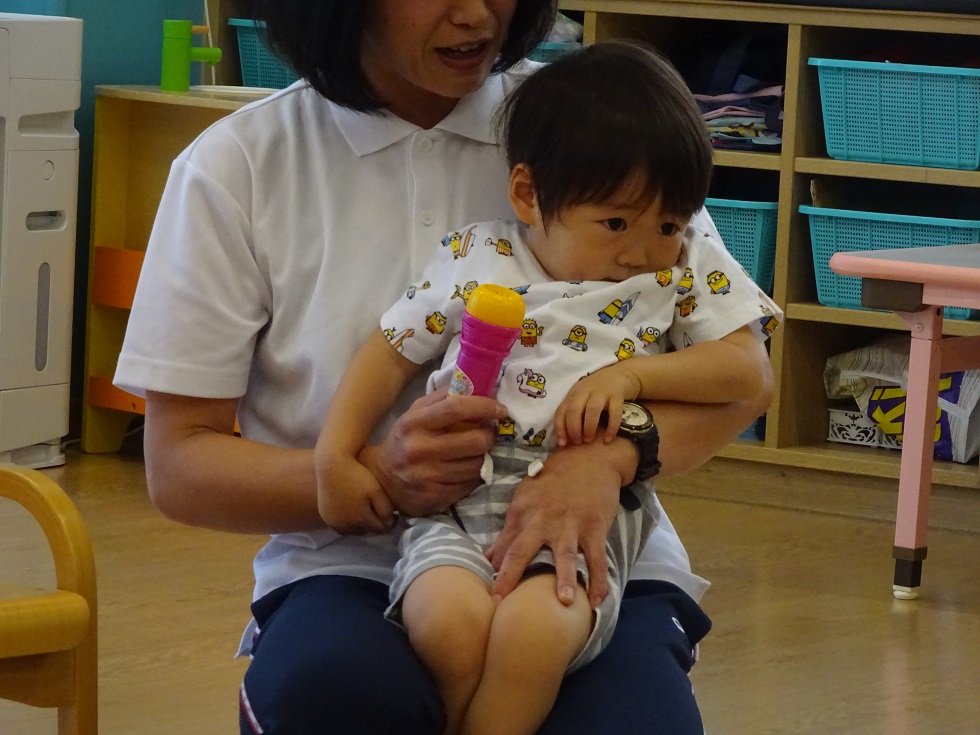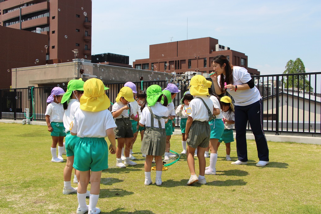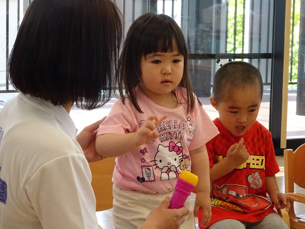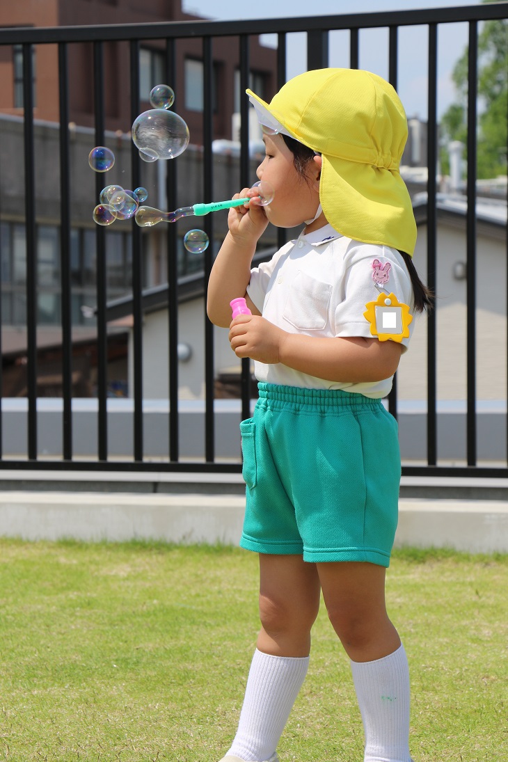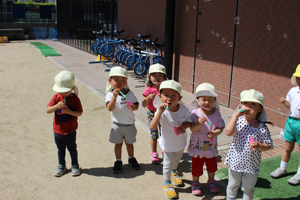 大きいしゃぼん玉、ちいさいしゃぼん玉がたくさん!楽しそうに吹いていました♪