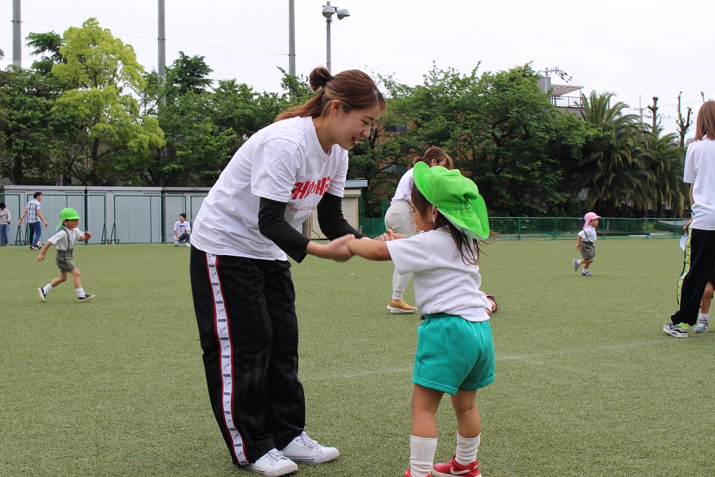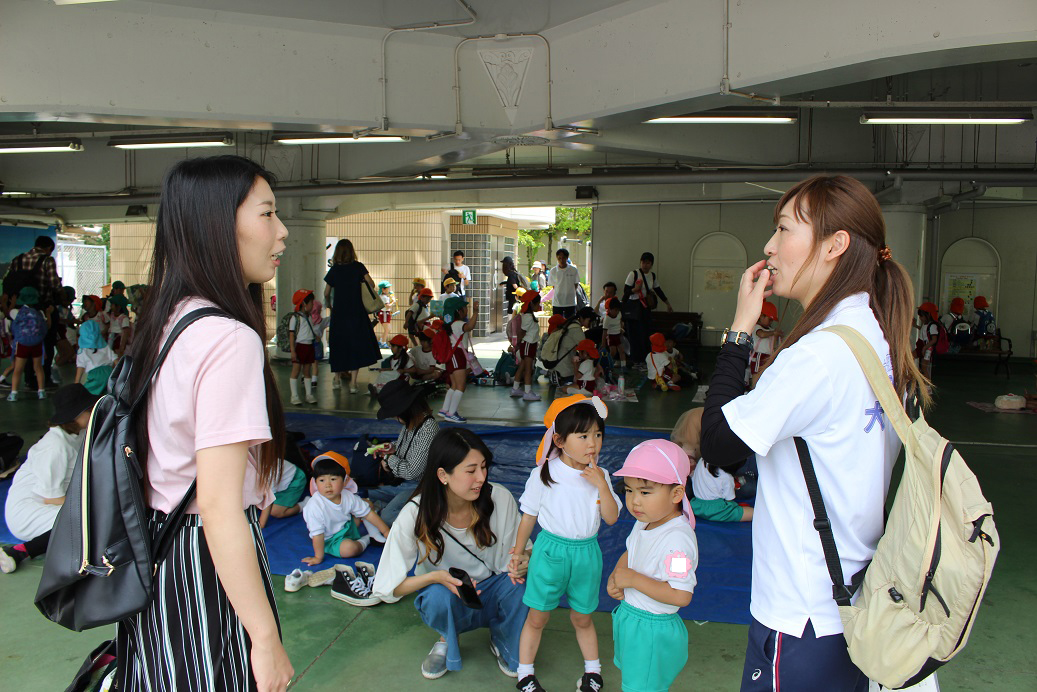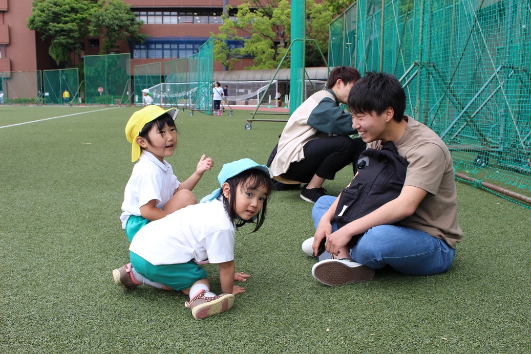 今日のぱんだ組さんは幼稚園を出て大学のお姉さんたちと