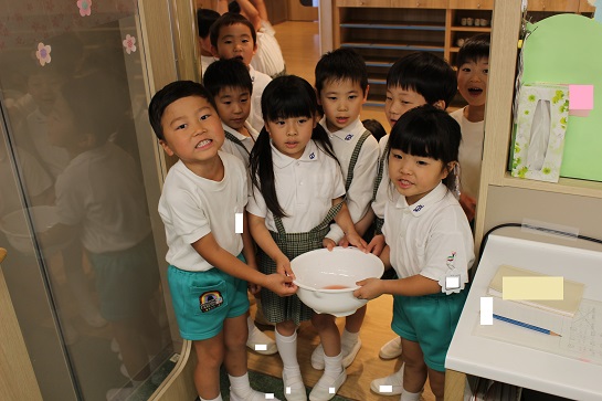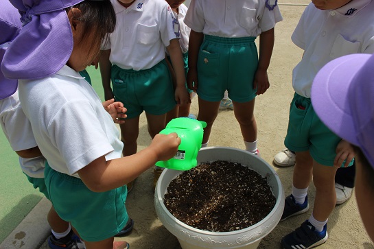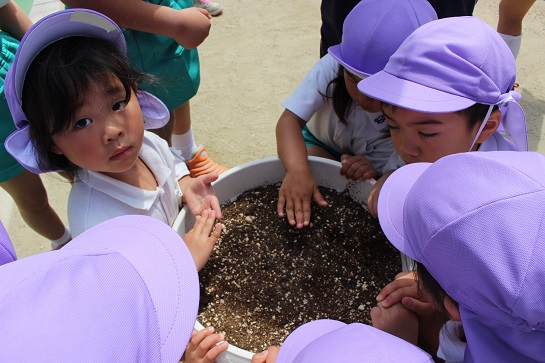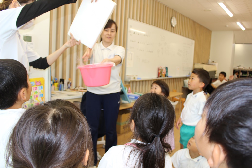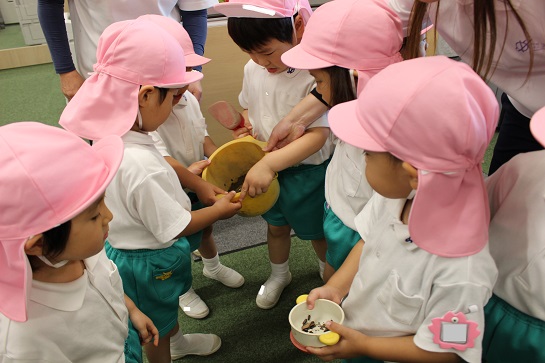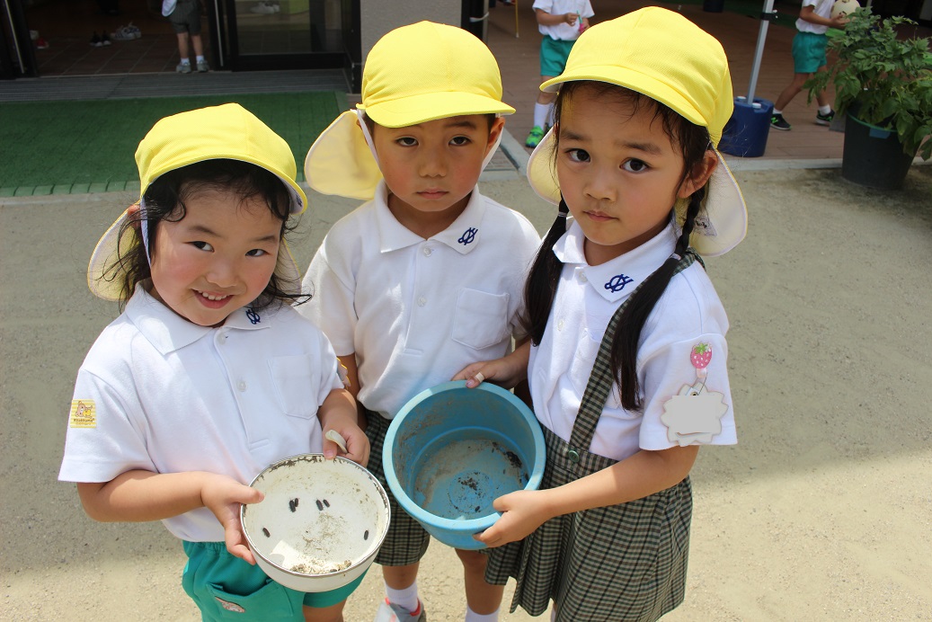 バケツの中身が興味津々の子どもたちでした!